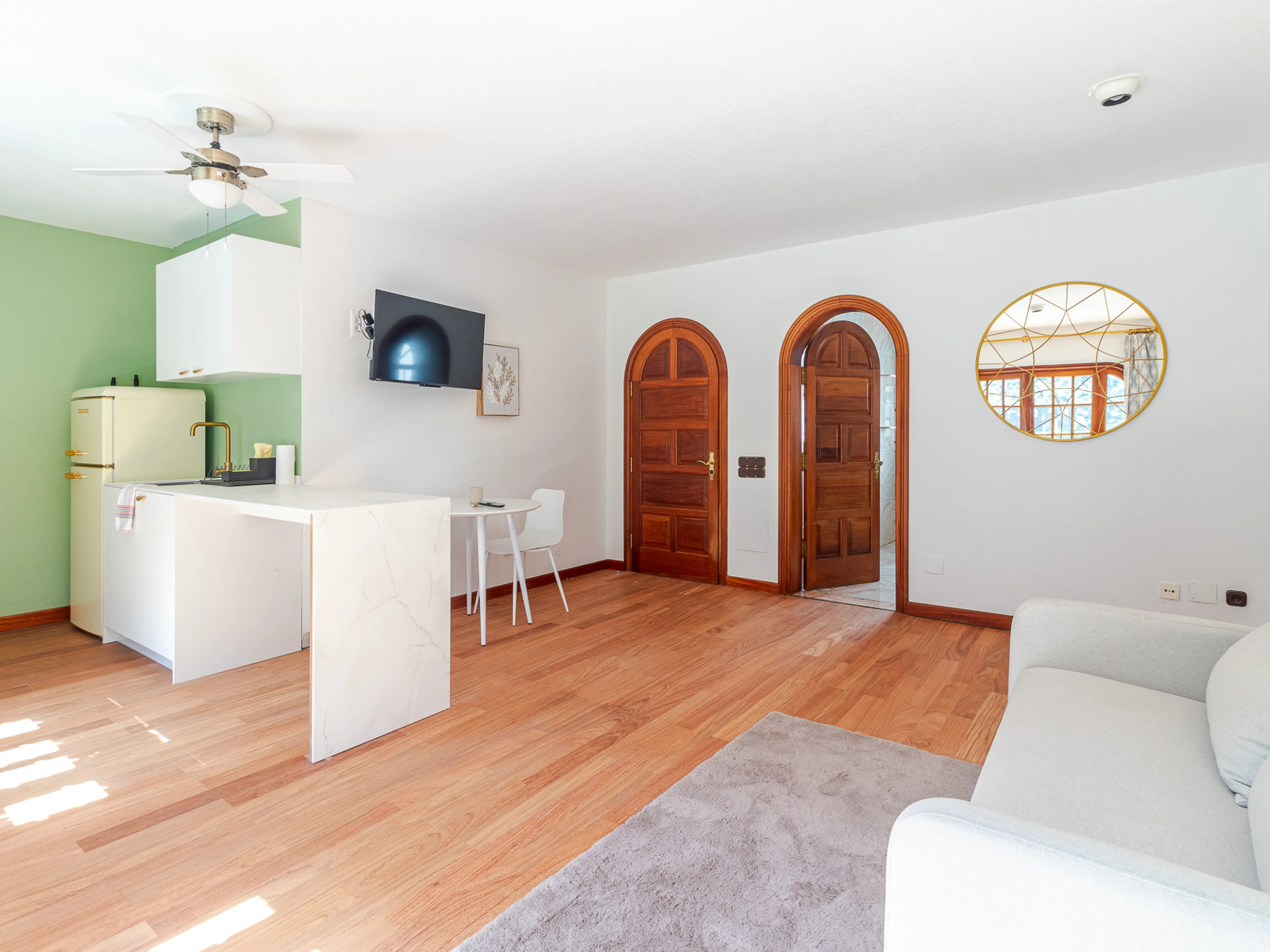Thoughtfully renovated, this suite blends natural materials with tasteful details. It features: