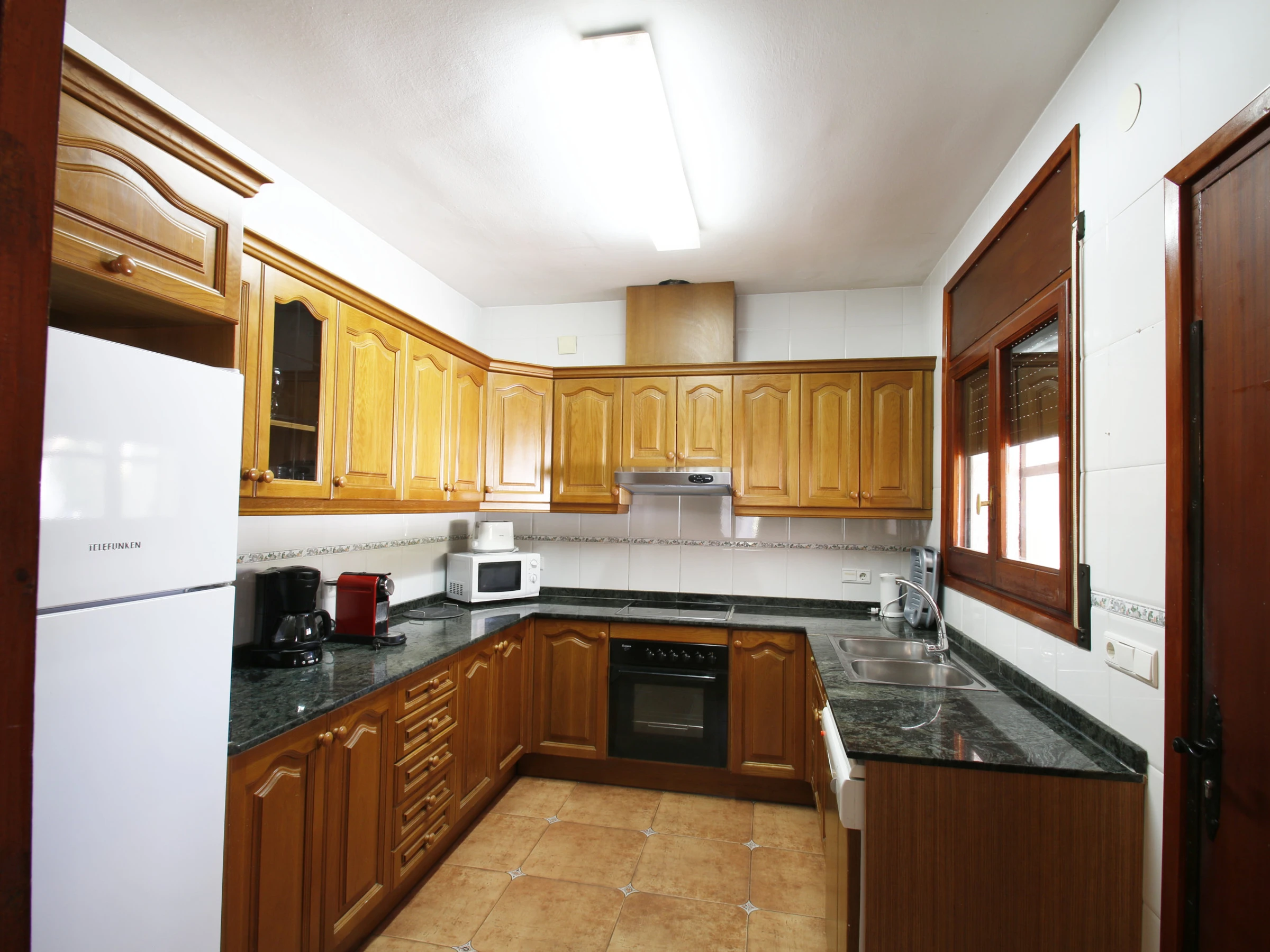 The fully equipped kitchen includes all the modern appliances necessary, such as a fridge-freezer, microwave, oven, washing machine, dishwasher, as well as crockery, kitchen utensils, and a coffee maker.