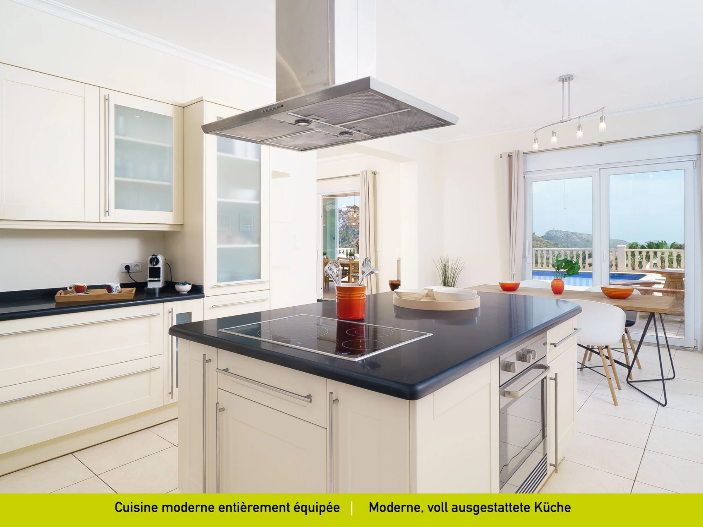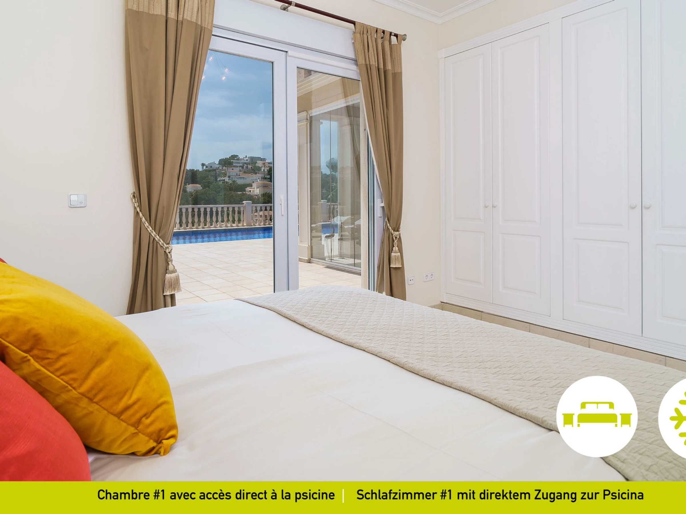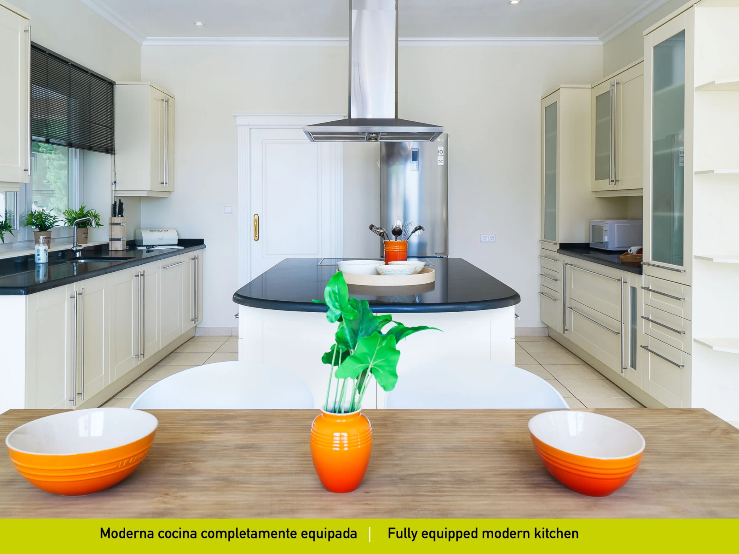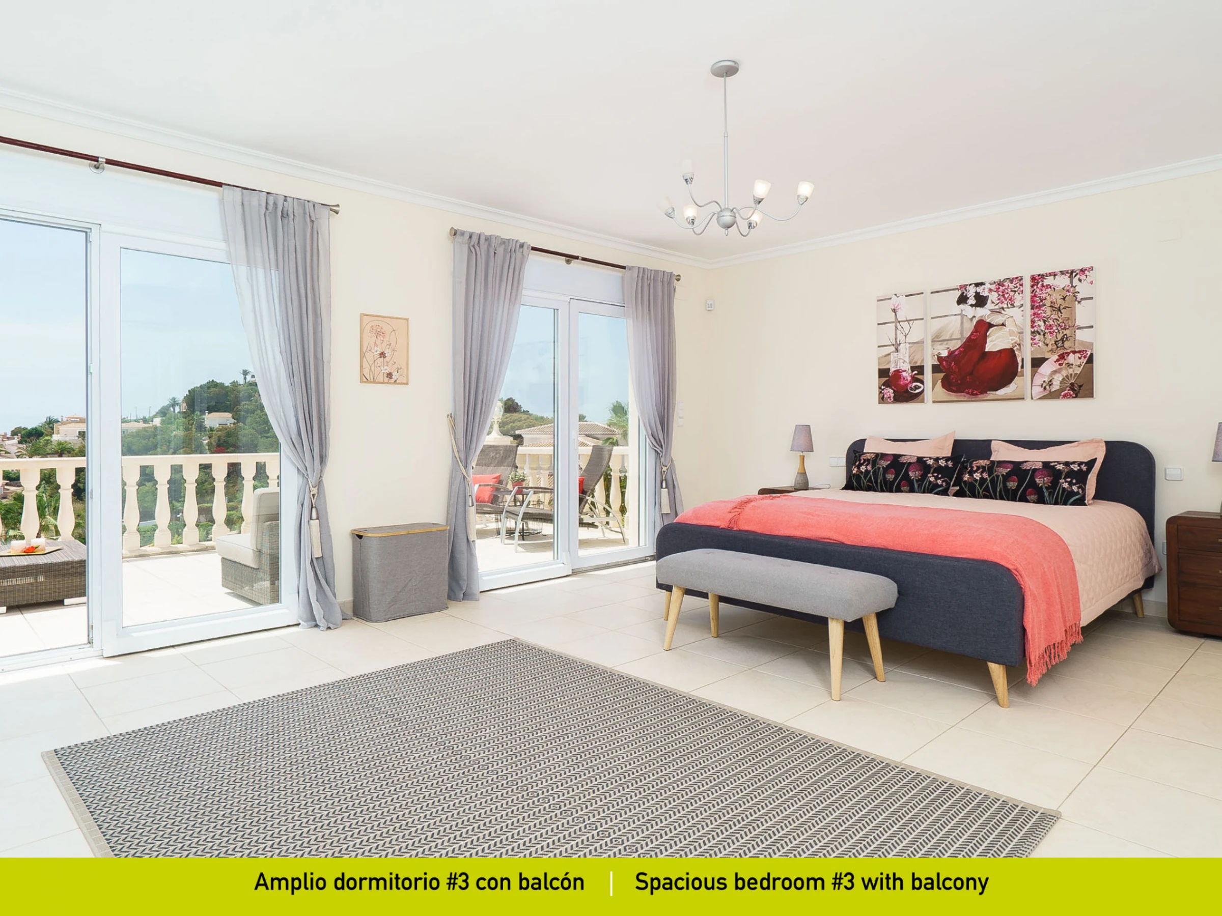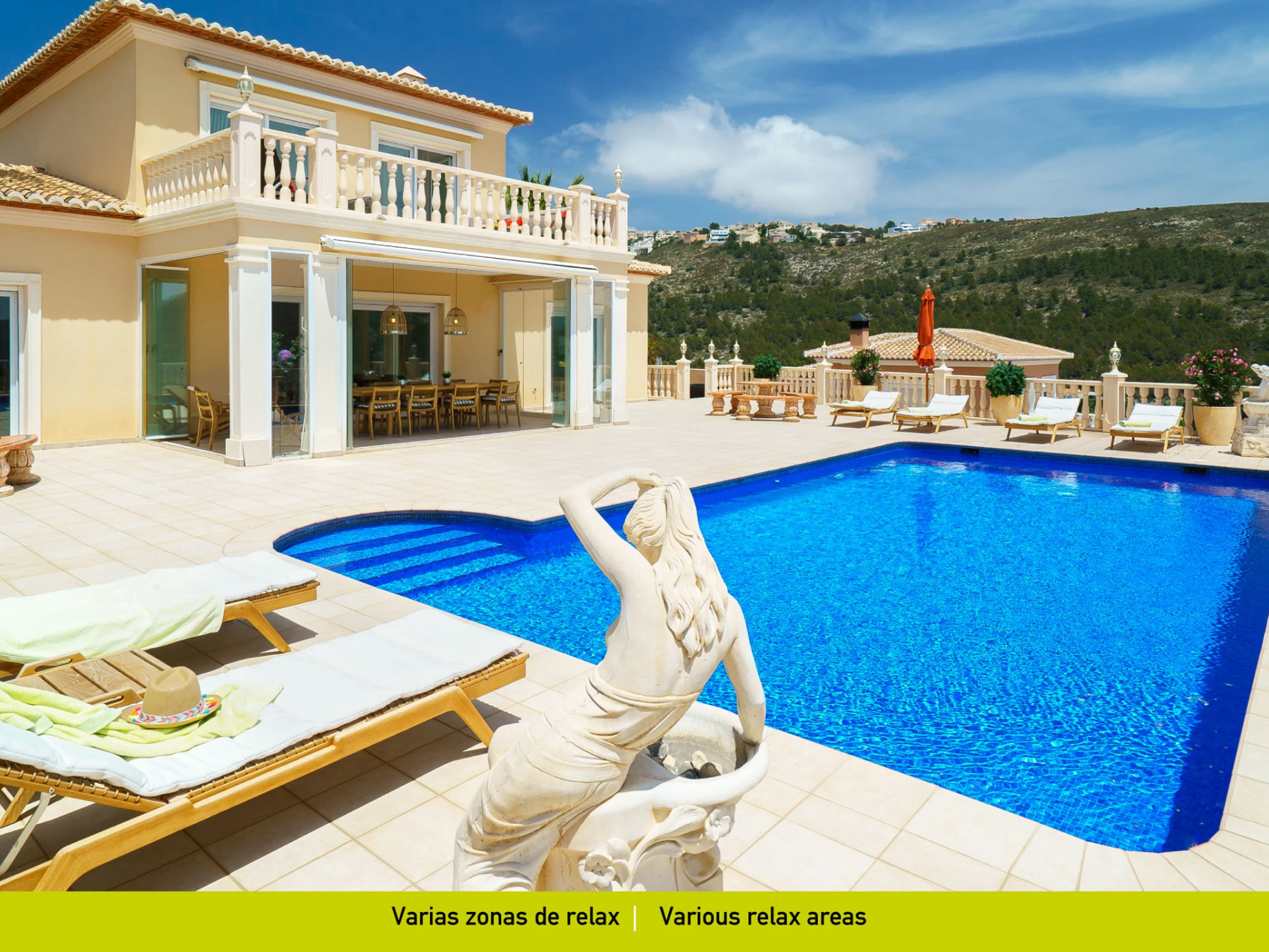 This modern villa with 4 bedrooms and a capacity for 8 people has a large terrace with private swimming pool from where you get a spectacular view of the valley of Moraira with the sea line in the background.