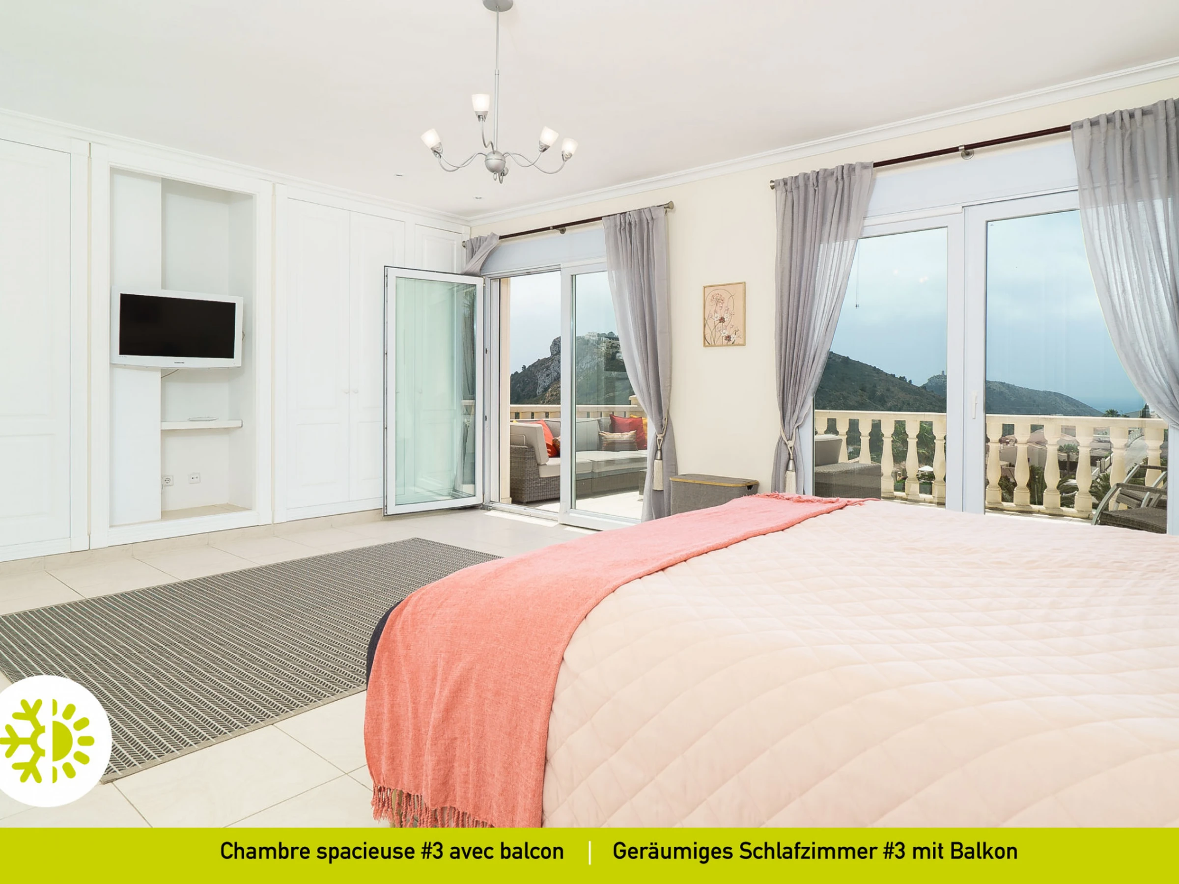 On the first floor, there is an en suite bedroom # 3 with air conditioning and its own relaxation area on the balcony. It’s a spacious bedroom with a double bed that has an equally large balcony.