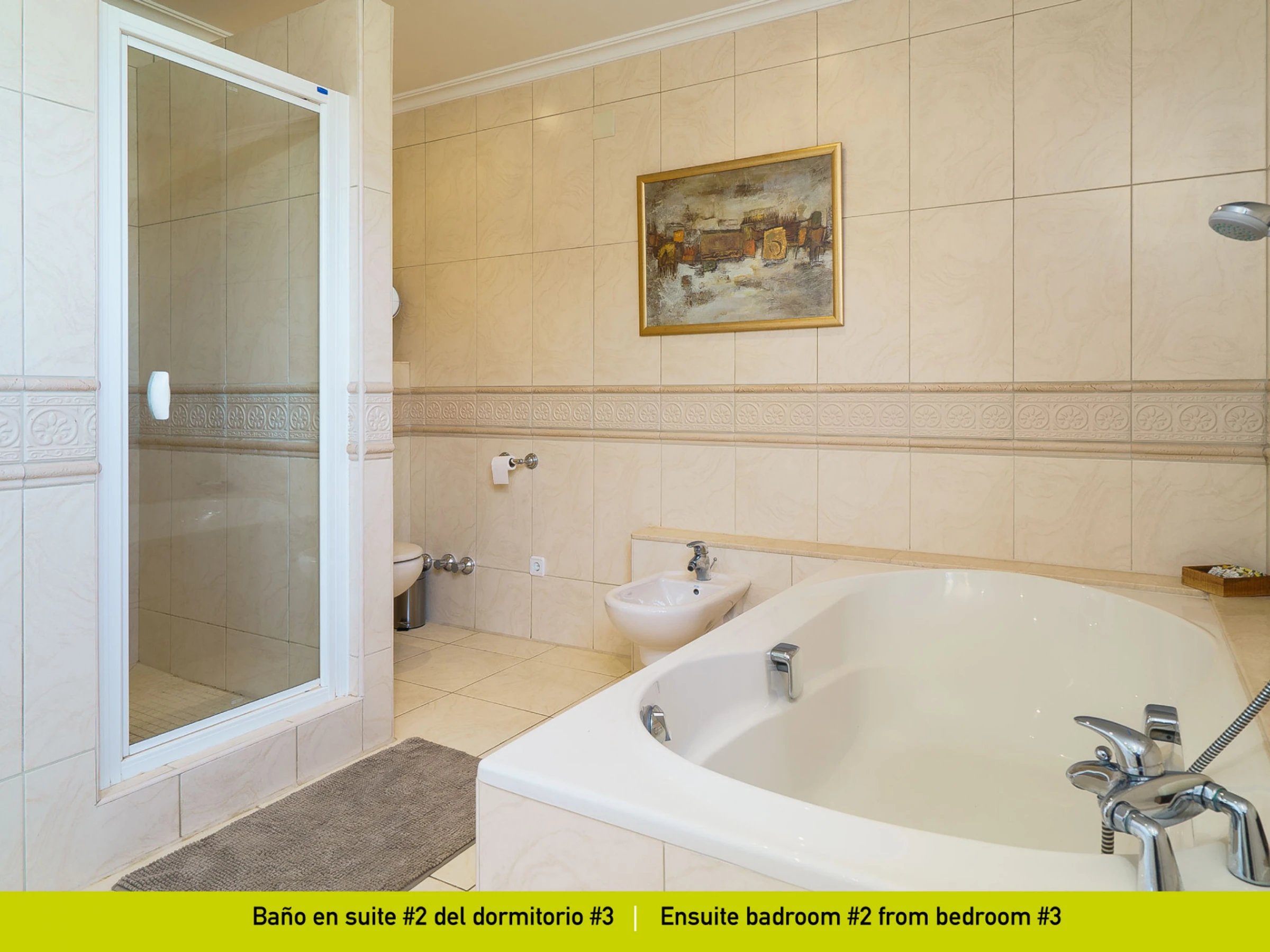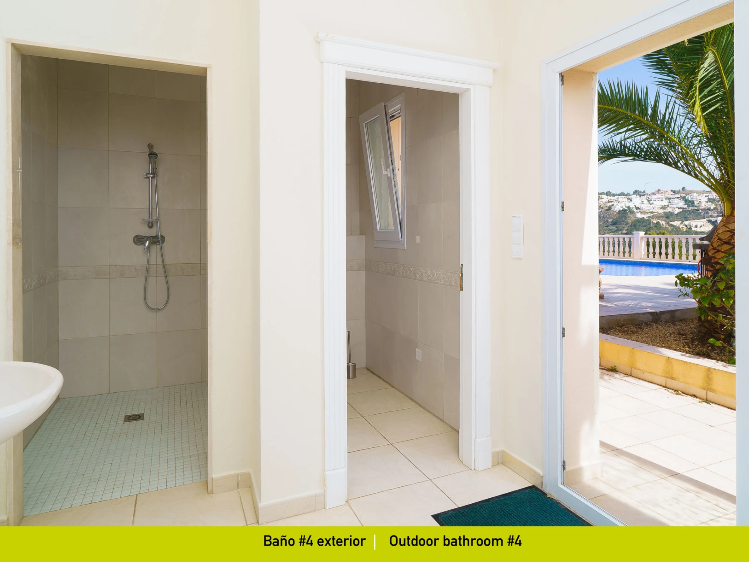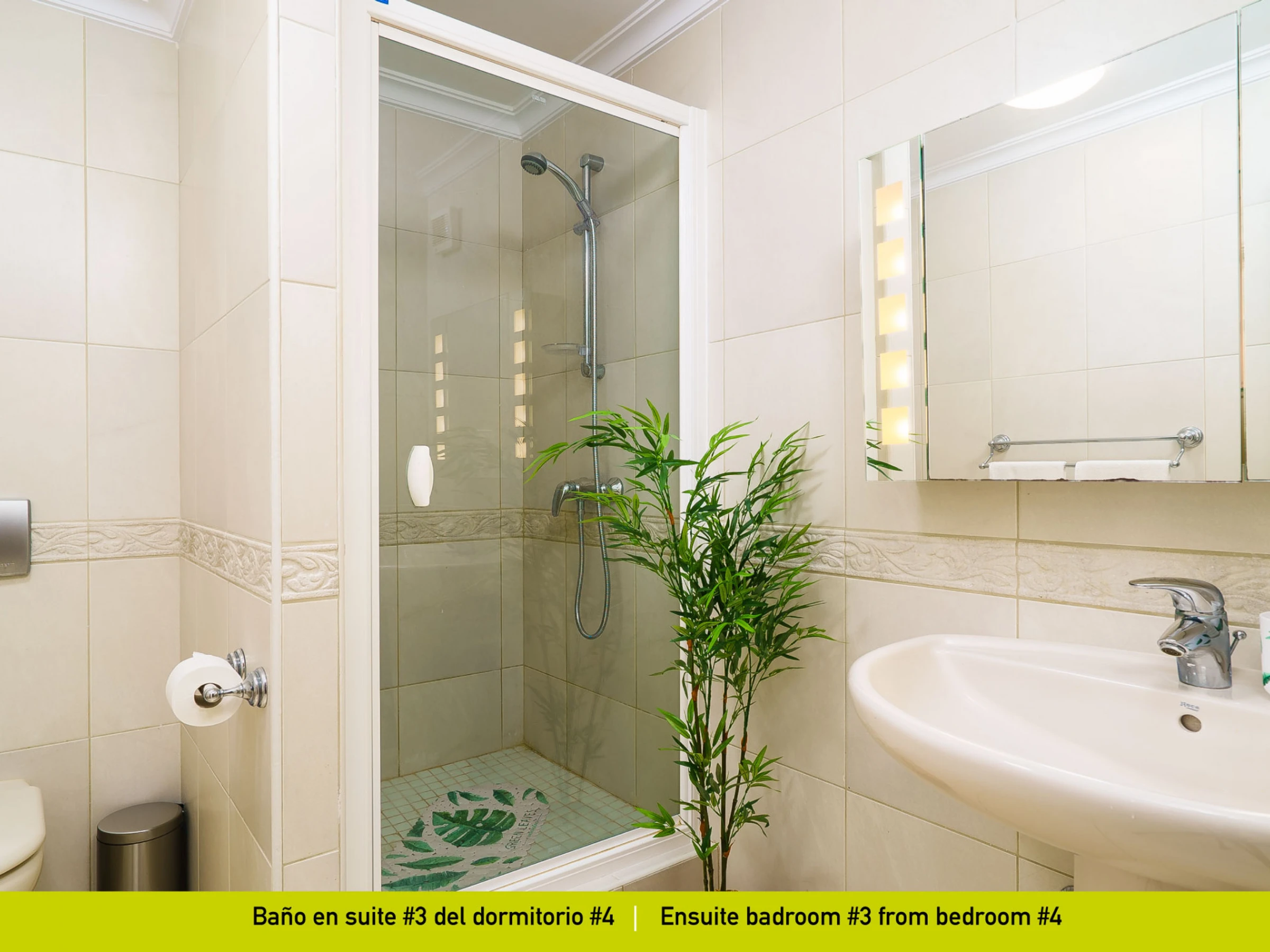 Independently, there is suite/bedroom #4 that can be accessed descending the stairs next to the pool. It’s a bedroom with a private hall and bathroom. It’s very well decorated and it also has a built-in wardrobe and air conditioning. This is the only bedroom that doesn´t offer a view.