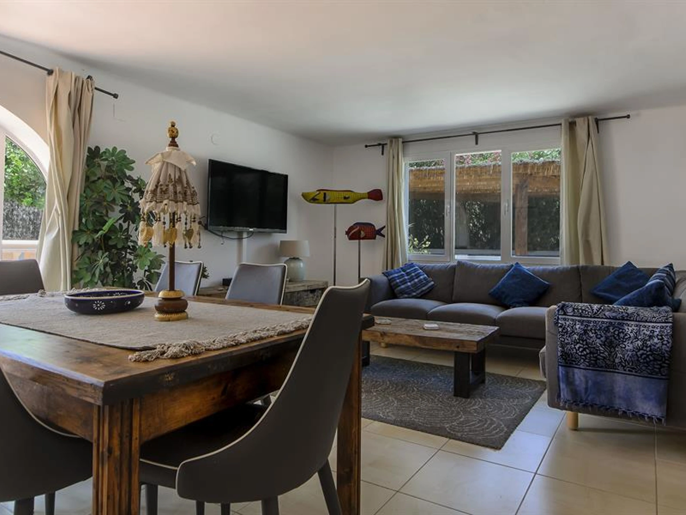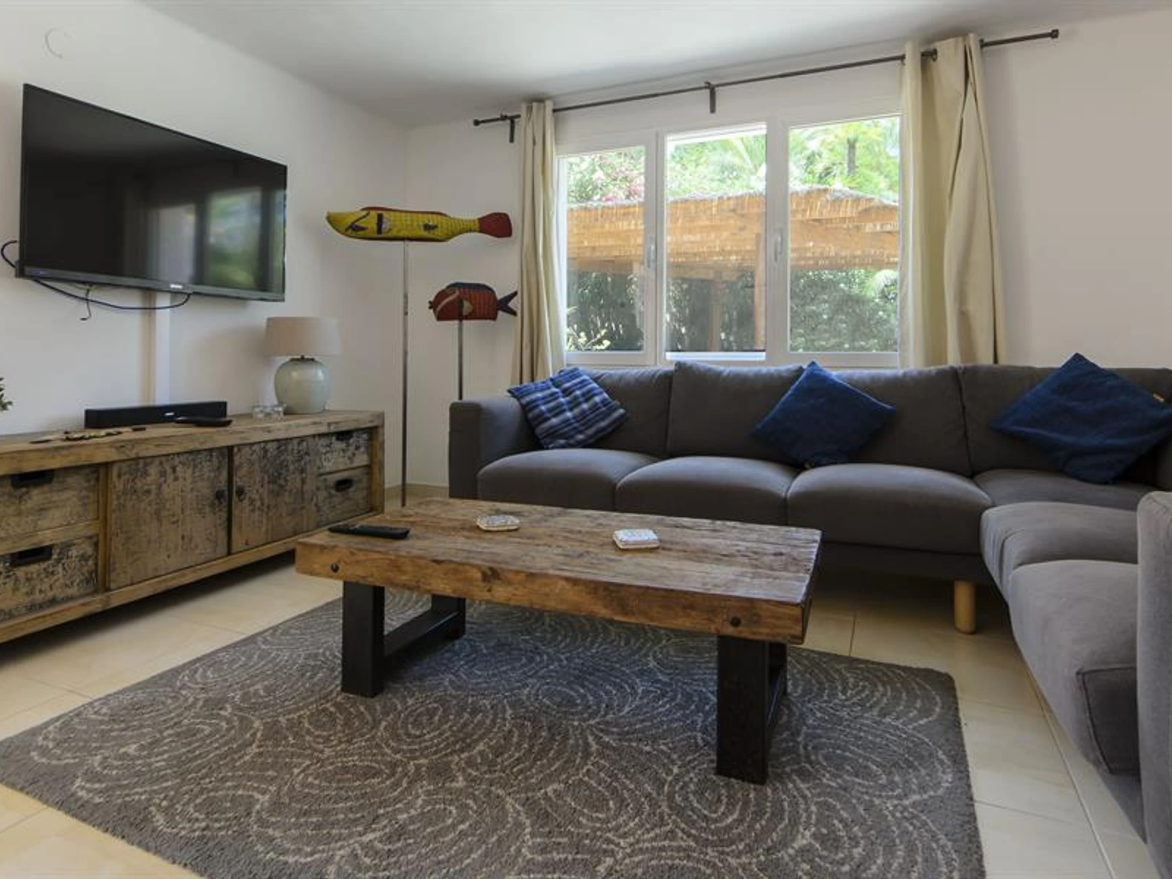 The house has 3 bedrooms and 3 bathrooms. The accommodation offers privacy, a beautiful lawned garden with gravel and trees and a wonderful heated pool. Its comfort and the vicinity of the beach, places to shop, sports activities, entertainment facilities, places to go out, sights and culture make this a fine villa to spend your holidays in Spain with family or friends.