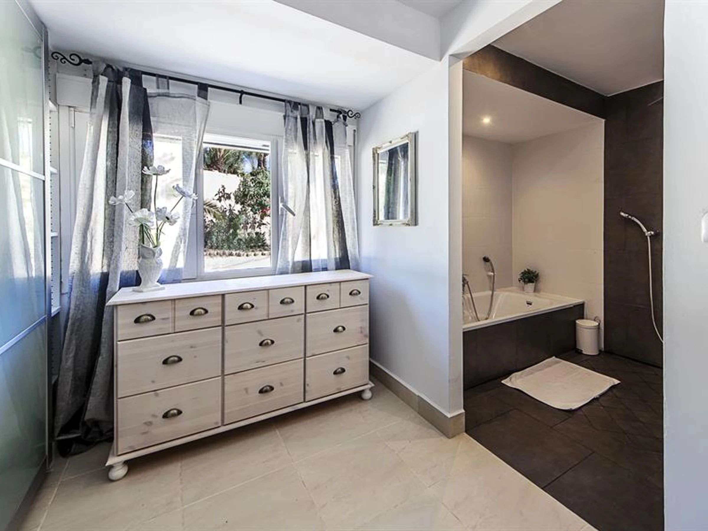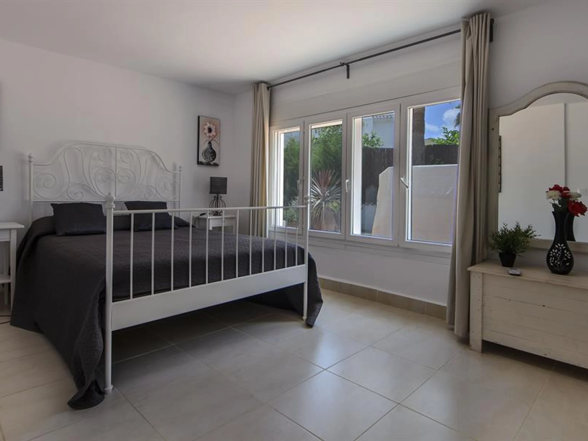 The villa has 5 bedrooms and 5 bathrooms, spread over 2 levels. The accommodation offers privacy, a beautiful lawned garden with gravel and trees and a wonderful heated pool. Its comfort and the vicinity of the beach, places to shop, sports activities, entertainment facilities, places to go out, sights and culture make this a fine villa to spend your holidays in Spain with family or friends.