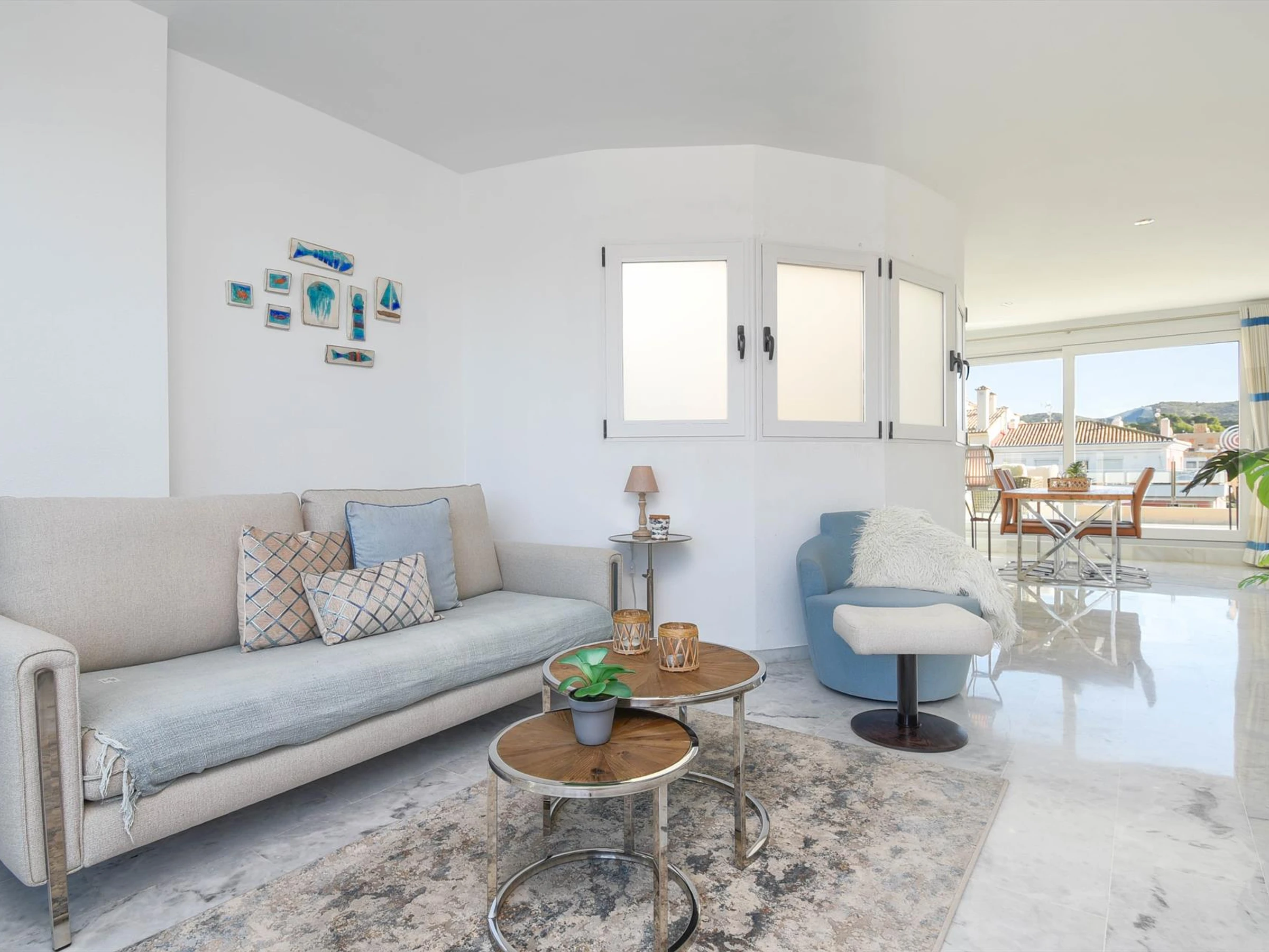 Large and nice apartment in Moraira, on the Costa Blanca, Spain for 4 persons. The apartment is situated in a residential beach area, close to restaurants and bars, shops and supermarkets, at 200 m from Playa de L'Ampolla beach and at 0,2 km from Mediterraneo.
