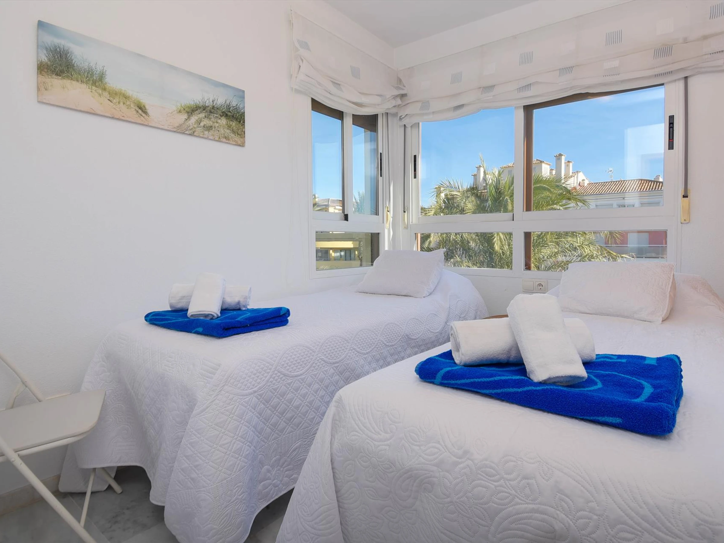 The apartment has 2 bedrooms, 1 bathroom and 1 guest toilet, spread over 2 levels. Its comfort and the vicinity of the beach, places to shop, sports activities, entertainment facilities, places to go out, sights and culture make this a fine apartment to spend your holidays in Spain with family or friends.