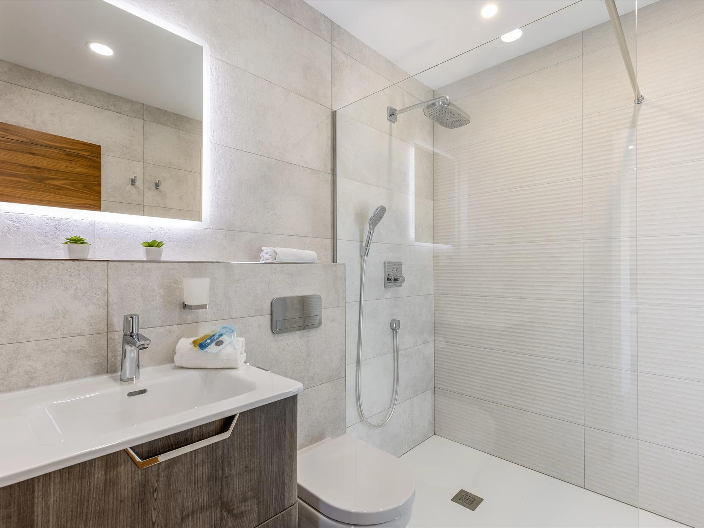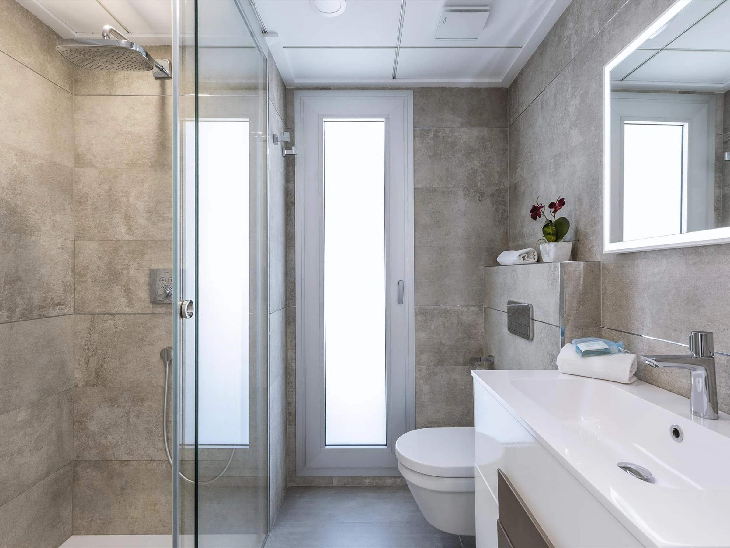 Bedrooms and bathrooms3 air-conditioned bedrooms, each with double bed and bathroom en-suiteair-conditioned bedroom with double beden-suite bathroom with double washbasin, shower, bidet and toilet2 en-suite bathrooms, each with single washbasin, shower and toiletbathroom with single washbasin, shower and toilet