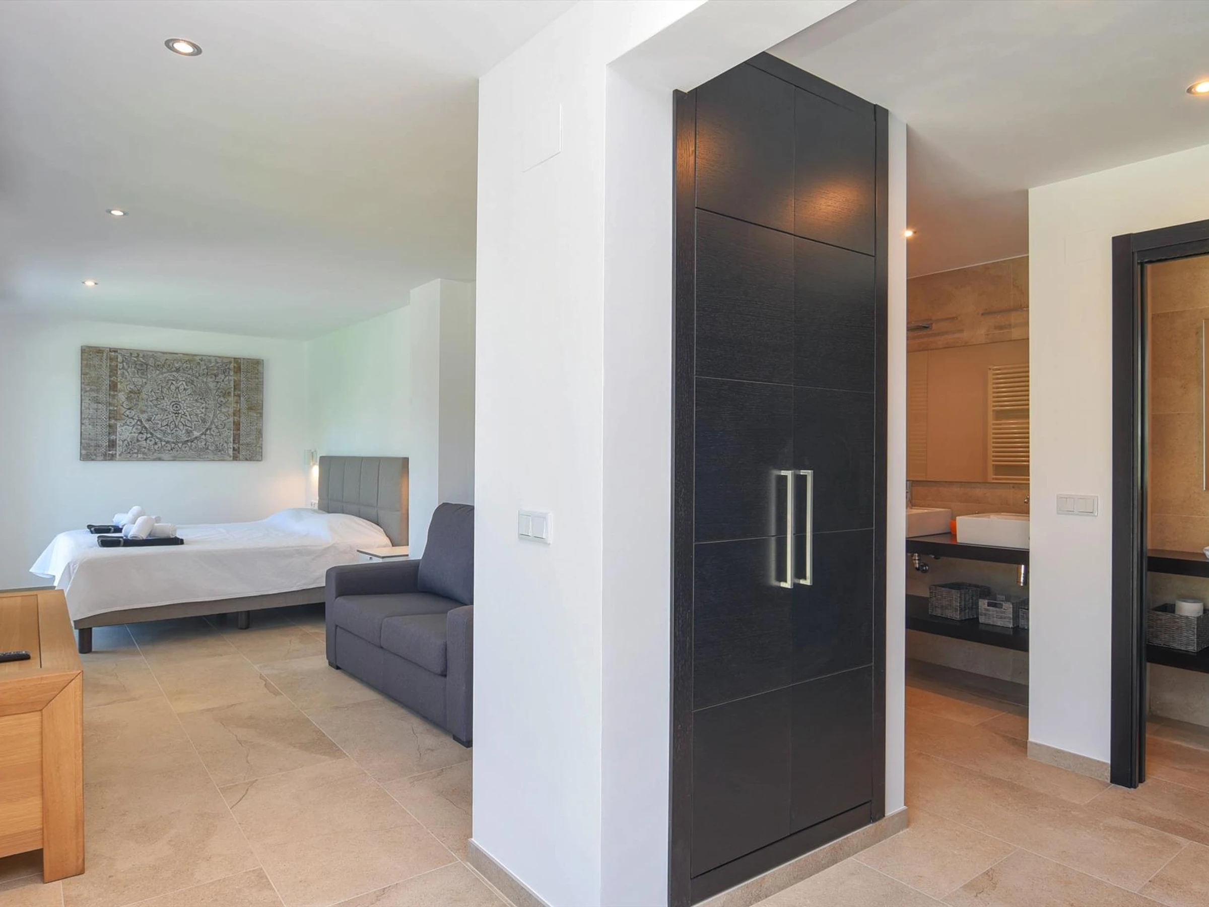 The luxury villa has 3 bedrooms, 3 bathrooms and 1 guest toilet, spread over 2 levels. The accommodation offers privacy, a wonderful lawned garden with gravel and trees, a wonderful heated pool and wonderful views of the sea. Its comfort and the vicinity of the beach, places to shop, sports activities, entertainment facilities, places to go out, sights and culture make this an ideal luxury villa to spend your holidays in Spain with family or friends.