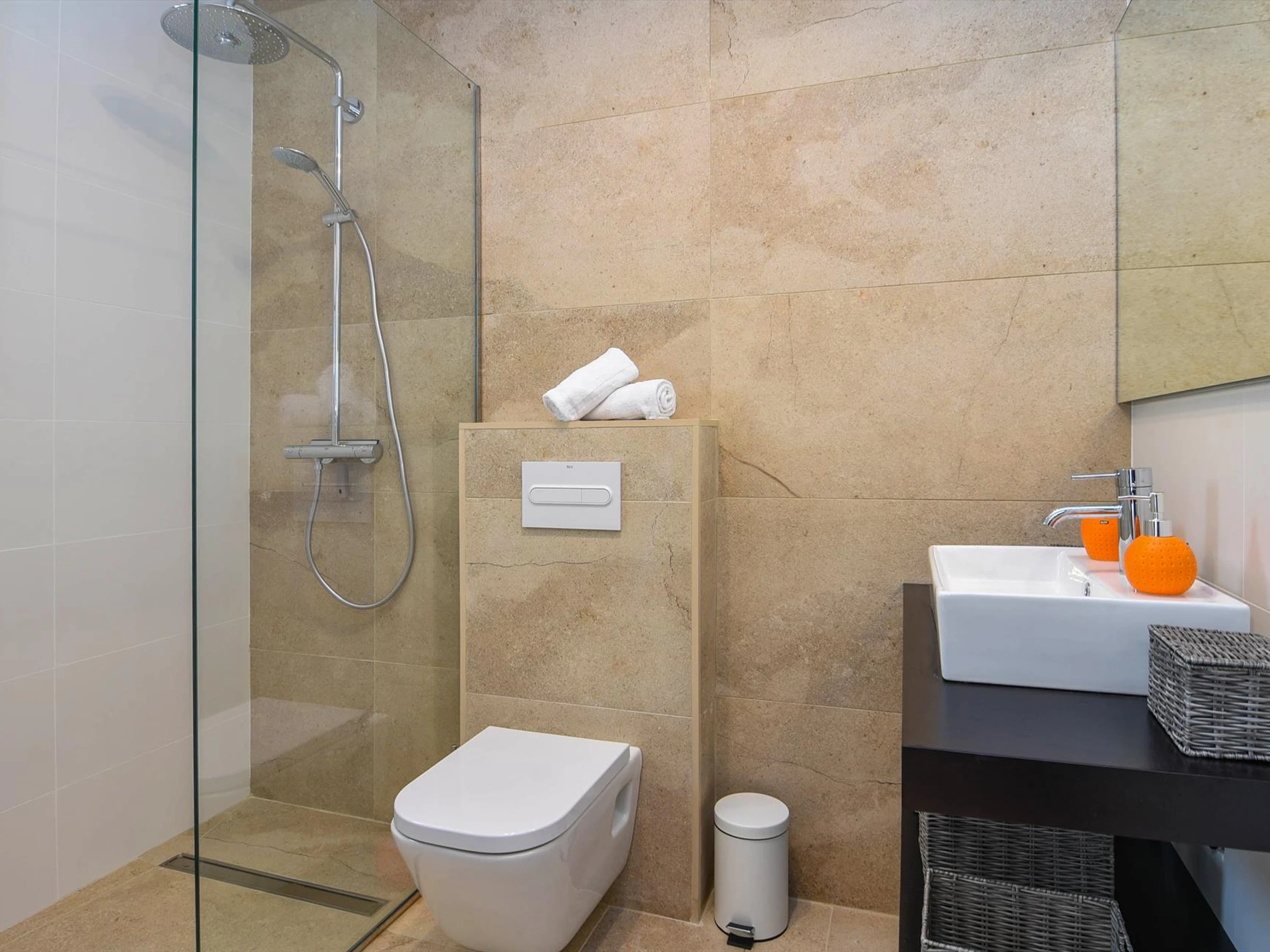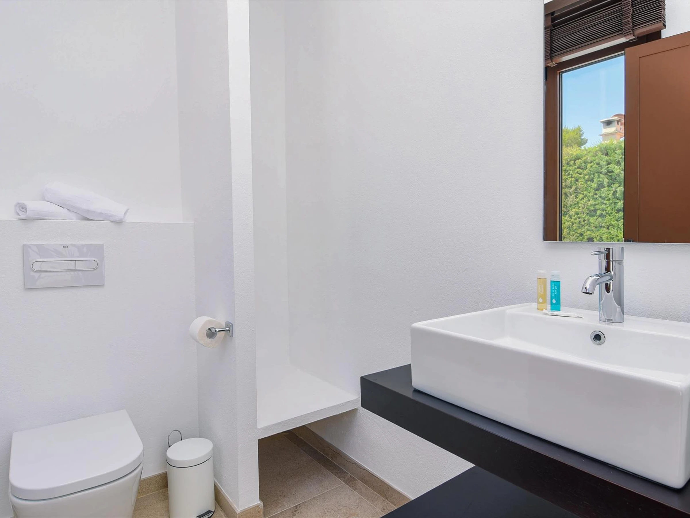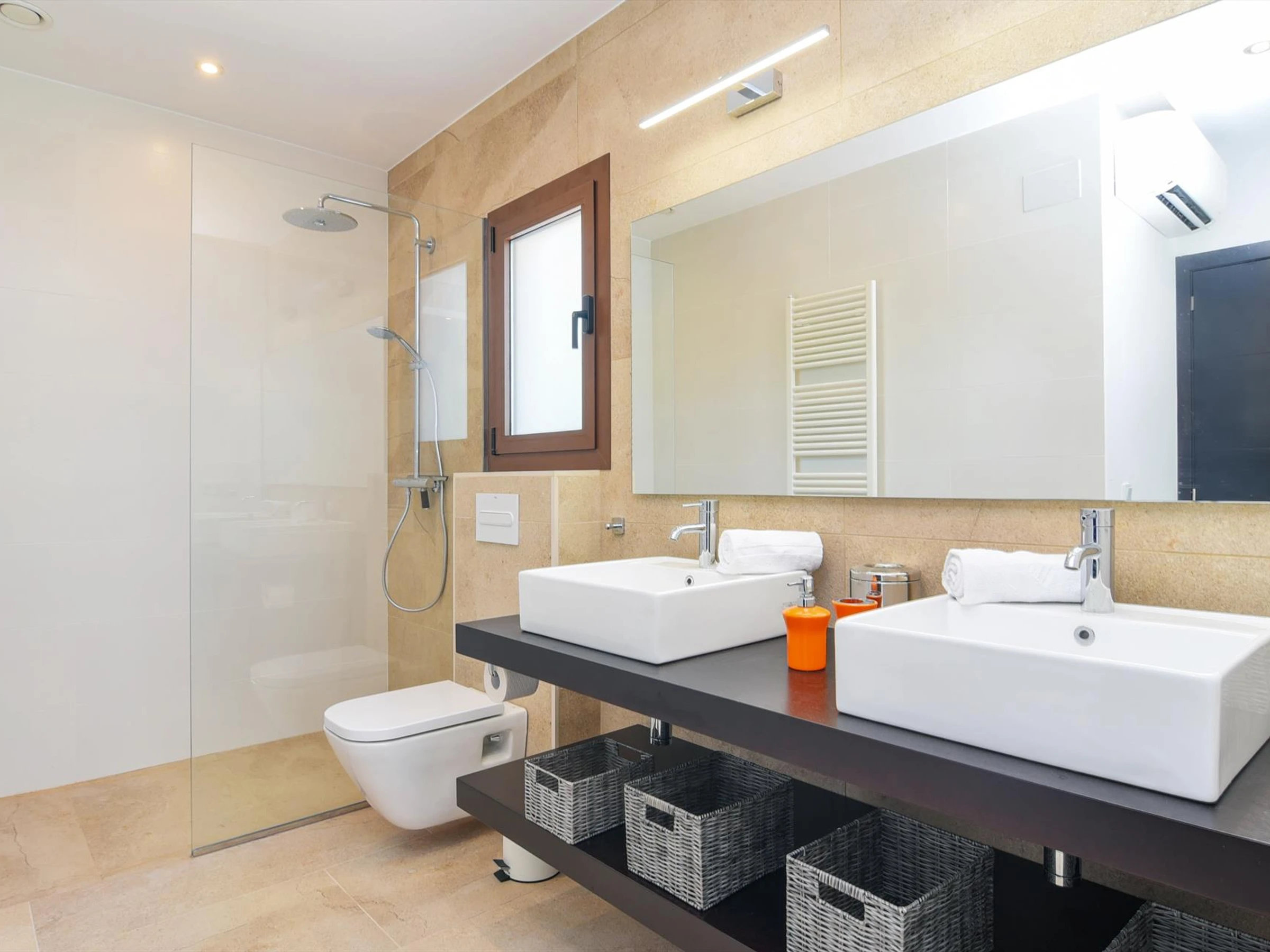 Bedrooms and bathrooms2 air-conditioned bedrooms, each with king size bed (measuring 200 by 180cm) and bathroom en-suiteair-conditioned bedroom with king size bed (measuring 200 by 180cm), television and bathroom en-suite2 en-suite bathrooms, each with double washbasin, shower and toileten-suite bathroom with single washbasin, shower and toilet