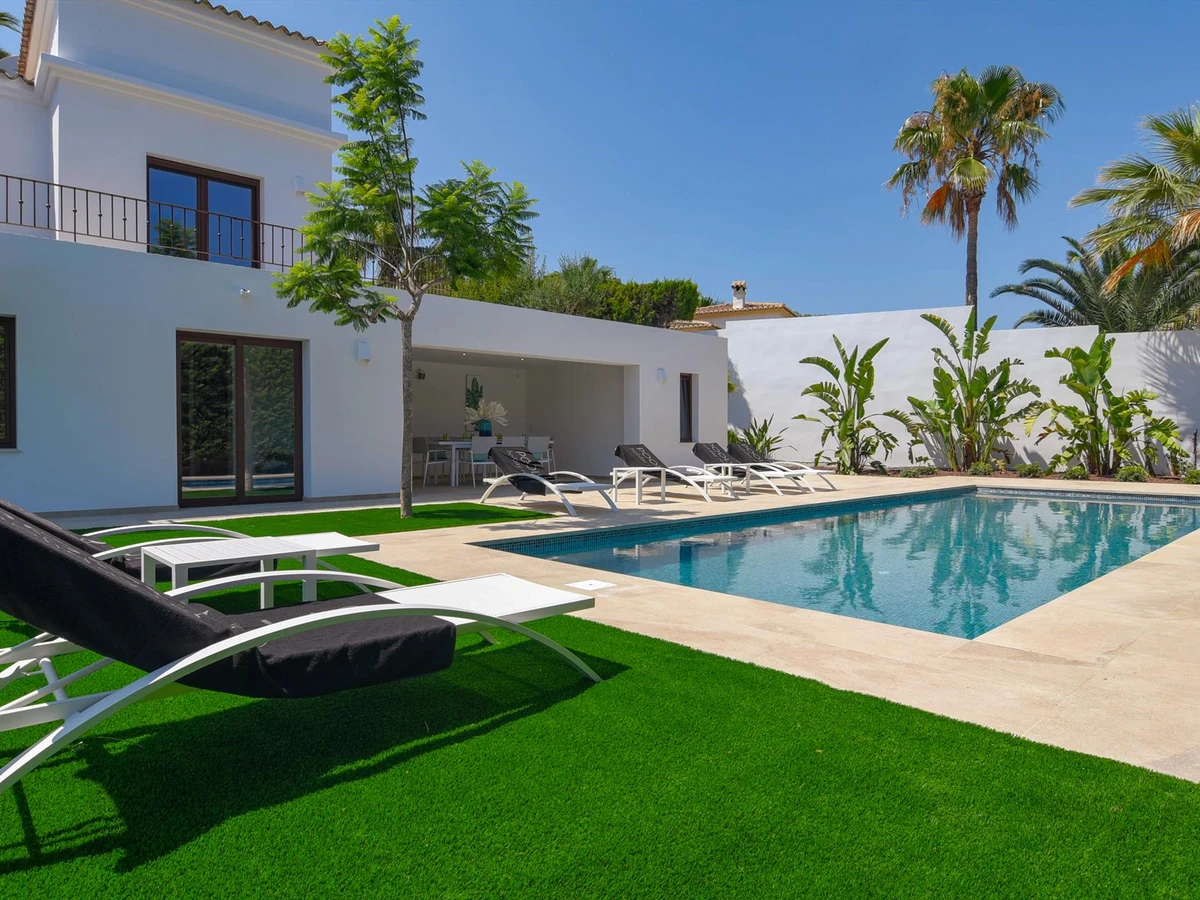 Modern and luxury villa in Moraira, Costa Blanca, Spain with heated pool for 6 persons. The villa is situated in a coastal area, close to restaurants and bars and shops and at 1 km from the beach.