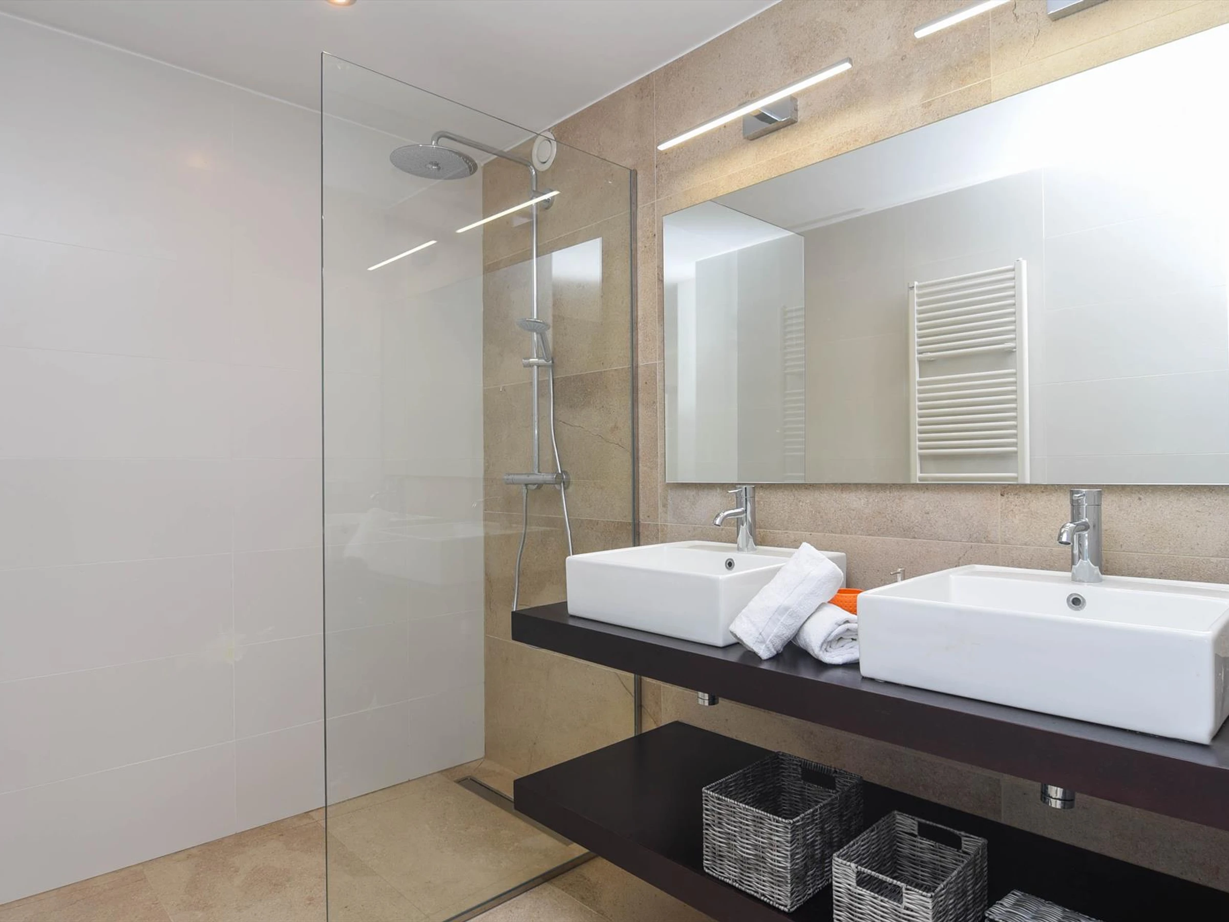 Interior of this luxury villa2 level luxury villaair conditioned living/dining room with television and hififireplace in living room (gas)covered balcony3 bedrooms, 3 bathrooms and 1 guest toiletsatellite antenna (TDT), cable television (TV Vlaanderen, Canal Digital and International)laundry room with washing machine and tumble dryerThe lower floor and the main floor are only accessible from the outside.