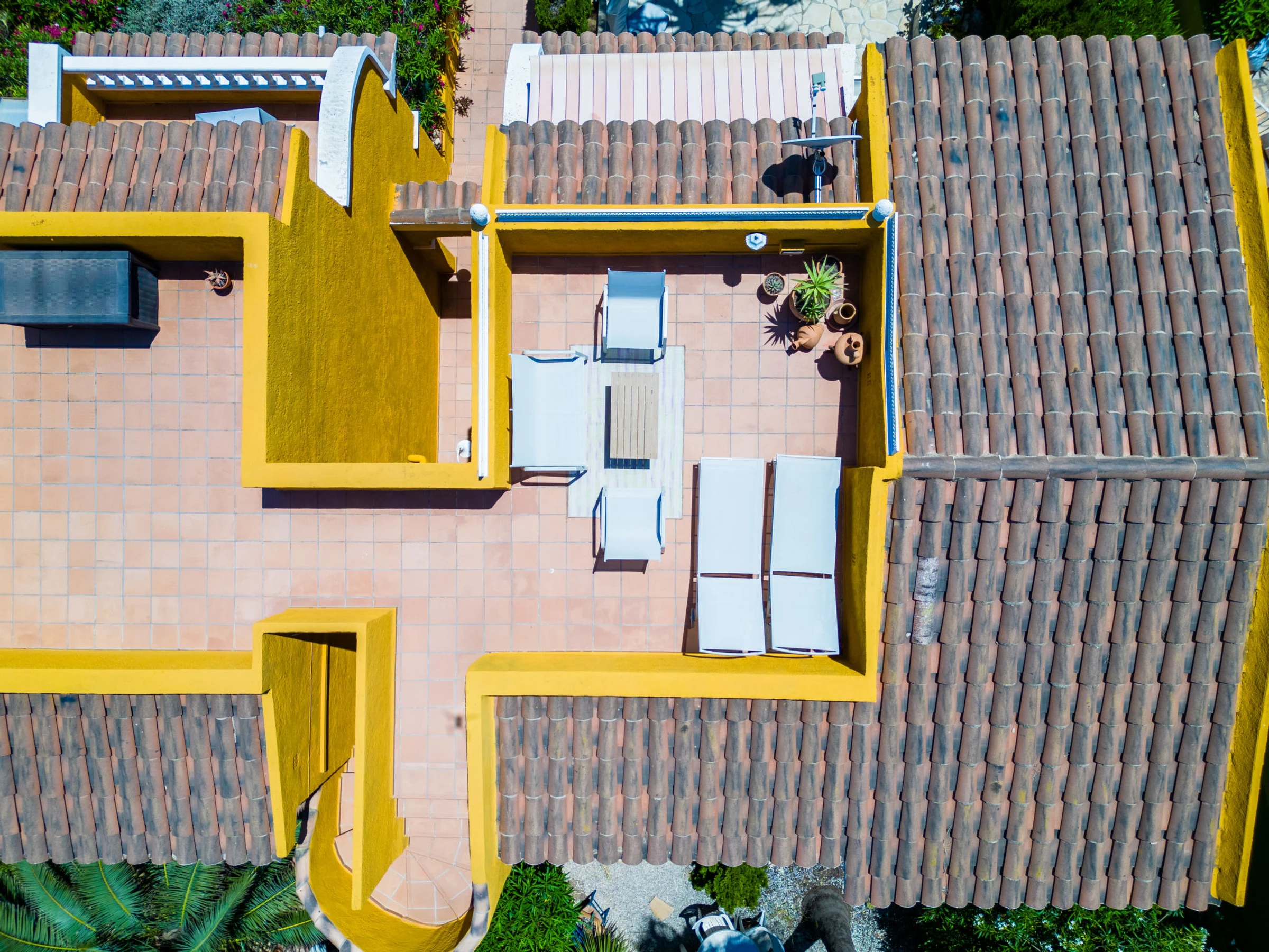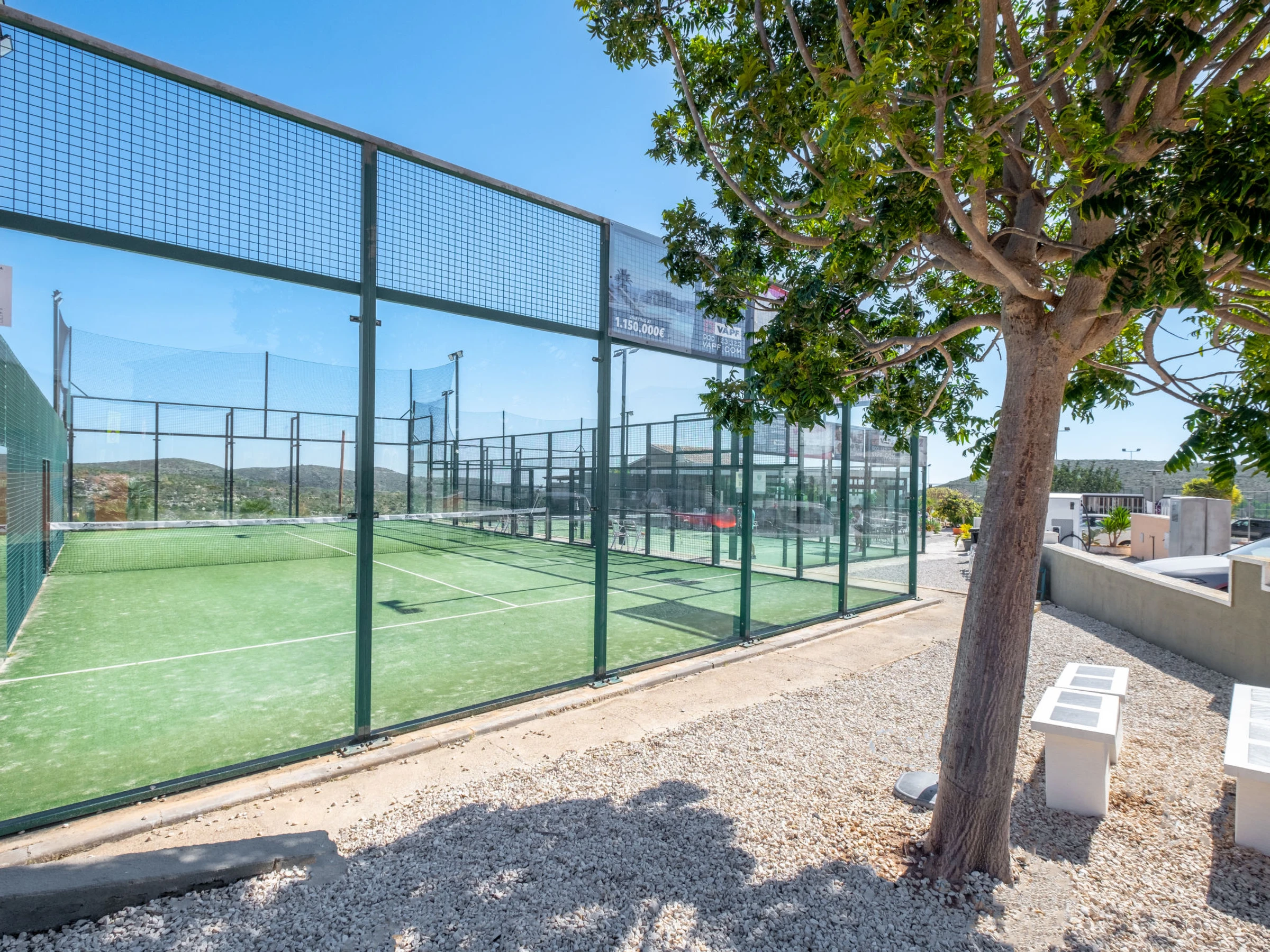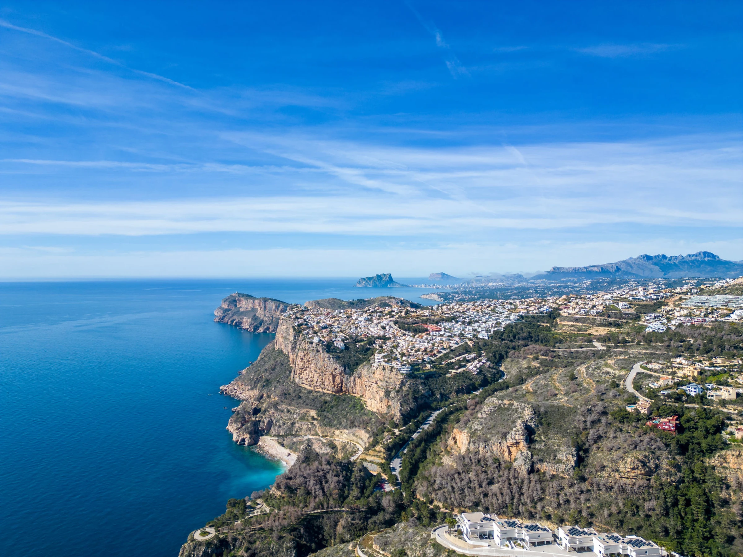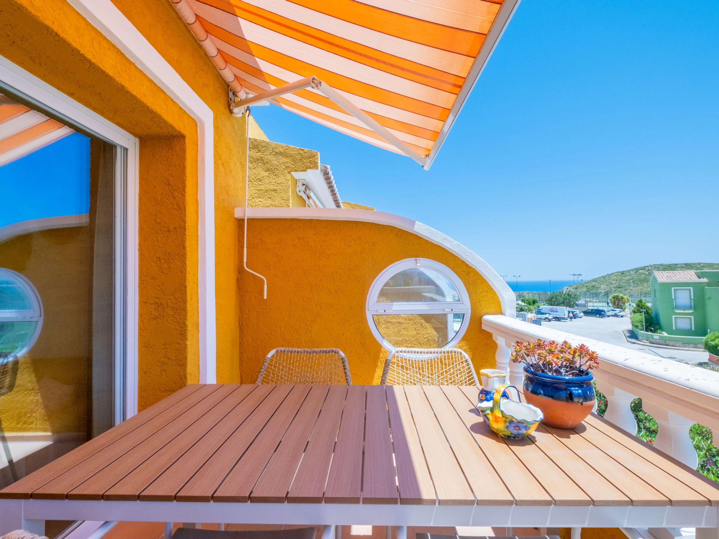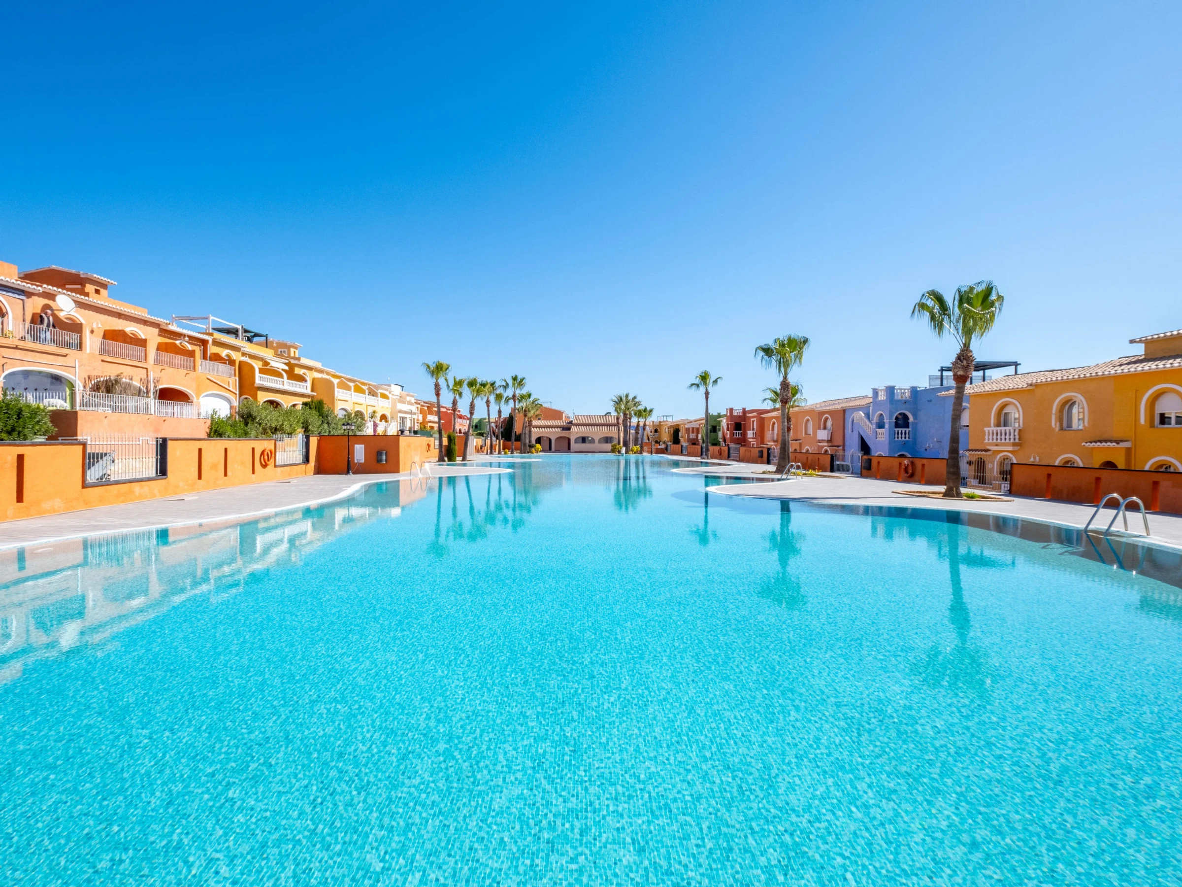 Cumbre del Sol: Large, beautiful holiday development "Pueblo de la Paz". 8 km from the centre of Moraira, in the district Cumbre del Sol, in a quiet, sunny position in the residential district, traffic calmed area, 1.8 km from the sea, 1.8 km from the beach. For shared use: beautiful, well-kept garden, swimming pool (60 x 16 m, seasonal availability: [hidden] - [hidden] with internal staircase. Children's pool, outdoor shower, terrace. Grocery, supermarket 500 m, restaurant 600 m, bus stop 4 km, sandy beach "Playa Arenal" 8 km, rocky beach "Cala Moraig" 1.8 km. Sports harbour 9 km, marina 9 km, golf course 11 km. Nearby attractions: Aqualandia, Mundomar, Terra Mítica, Terra Natura, Benidorm Palace (Benidorm), Les Fonts de l'Algar, Castillo de Guadalest. The owner does not accept any youth groups.