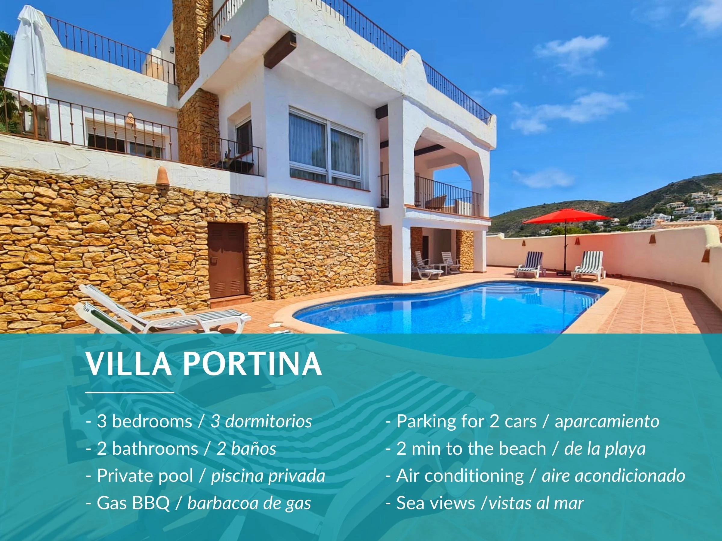This delightful holiday villa in the popular El Portet area of Moraira is close to the beach and within easy walking distance of the town centre.