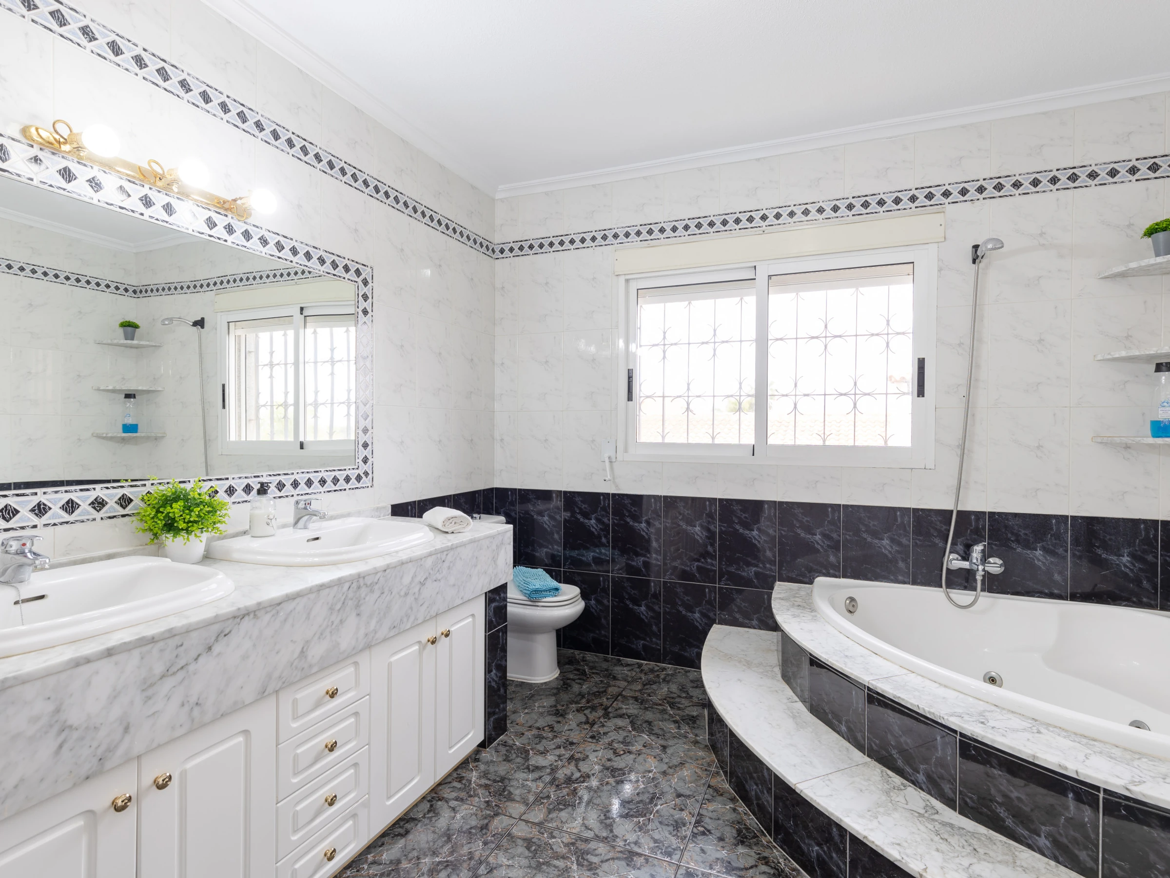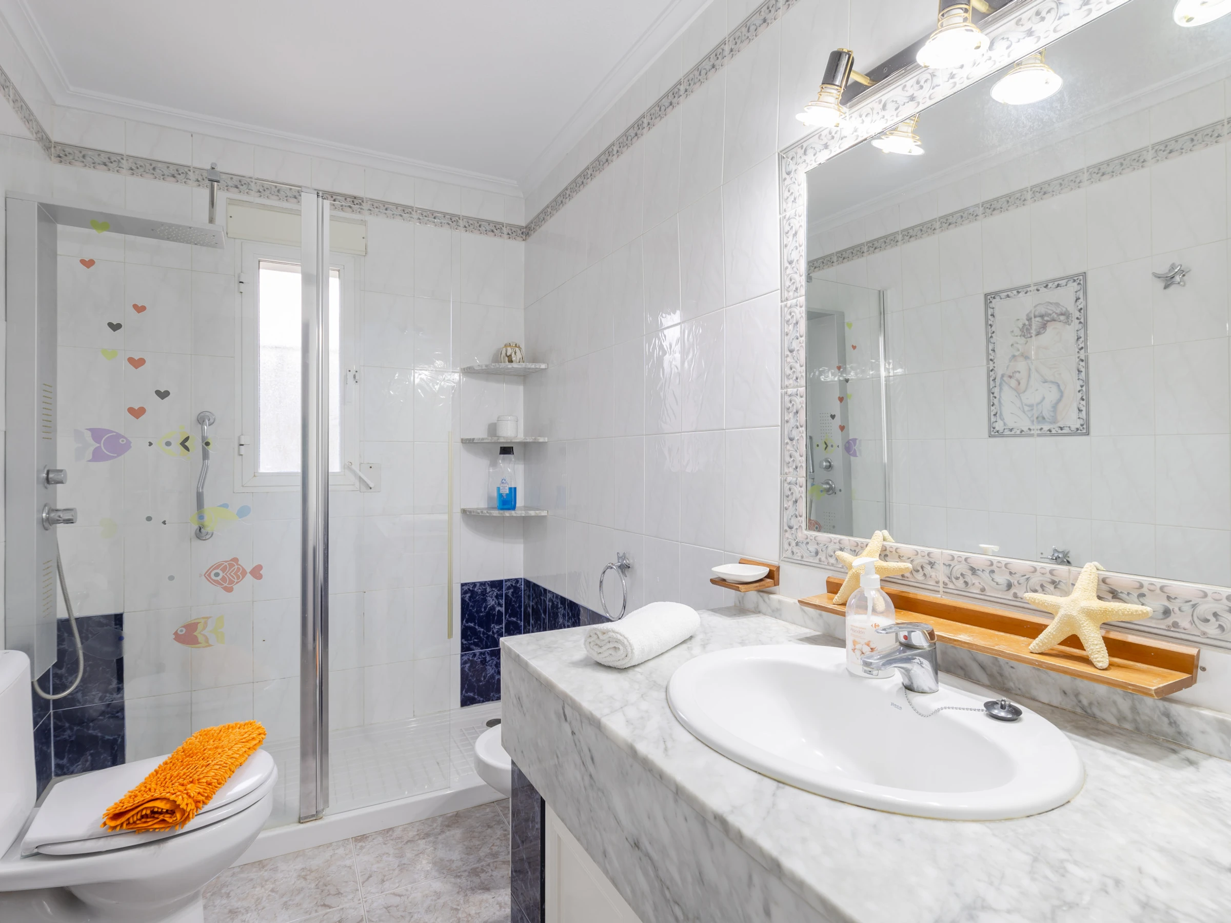 The property offers 4 fully equipped bathrooms, including options with shower and bathtub, as well as an additional toilet. The open-plan kitchen is fully equipped with state-of-the-art appliances such as dishwasher, oven, microwave, coffee maker and juicer, making it easy to prepare delicious meals.