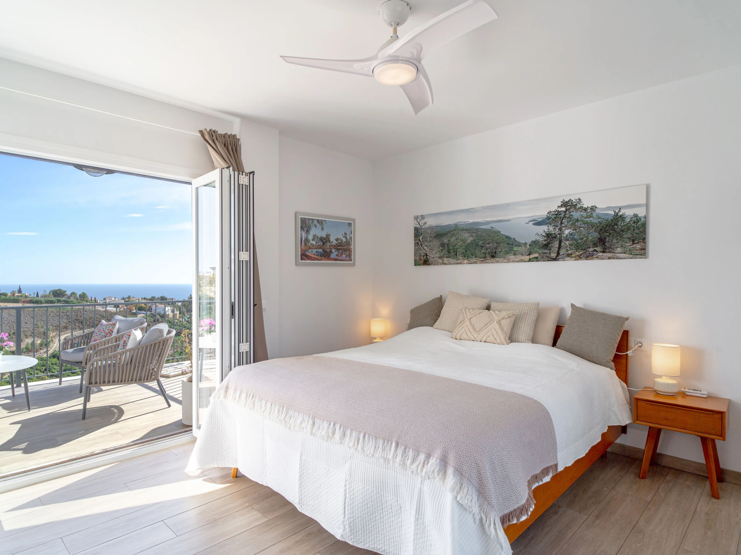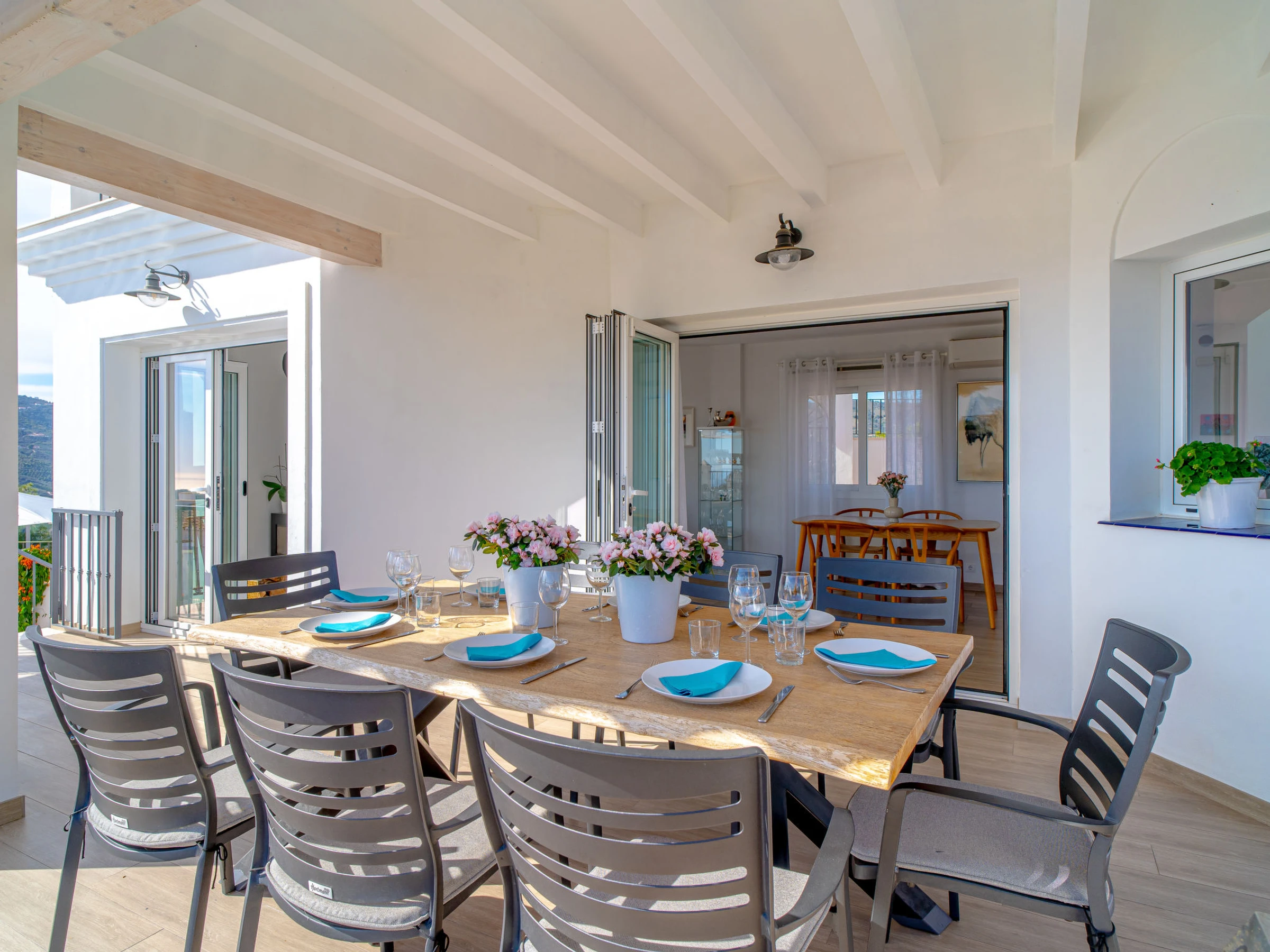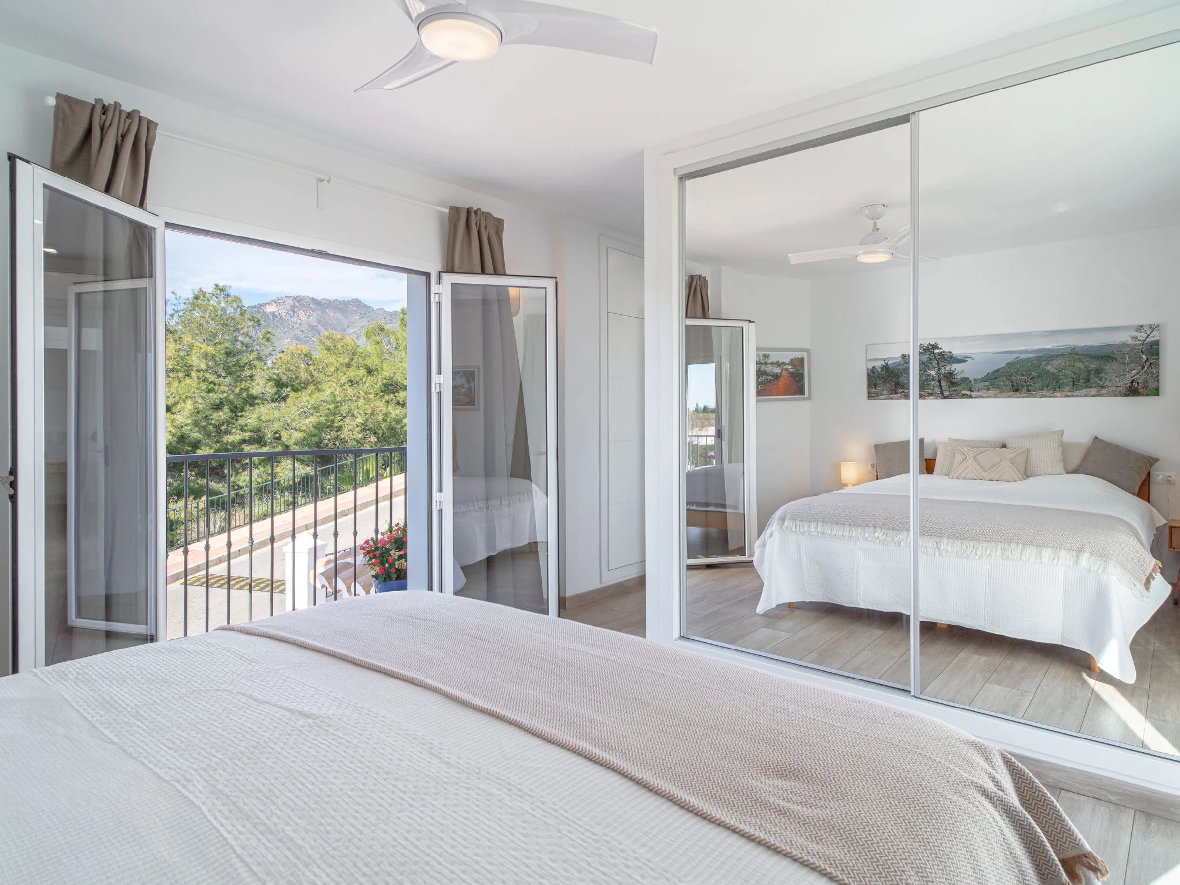 "Kinkuna", 6-room villa 240 m2, south facing position. Spacious and bright, comfortable and modern furnishings: living/dining room with dining table, TV, international TV channels, wood-burning stove and air conditioning. Exit to the terrace, to the swimming pool, south facing position and east facing position. 1 room with 1 french bed (160 cm, length 200 cm), shower/WC and air conditioning. Exit to the balcony. Open kitchen (oven, dishwasher, 6 ceramic glass hob hotplates, toaster, kettle, microwave, freezer, electric coffee machine, Capsules for coffee machine (Nespresso extra) extra). On the lower ground floor: 1 large room with 1 sofabed (140 cm, length 190 cm), 1 french bed (180 cm, length 200 cm), shower/WC and air conditioning. Lounge with TV and international TV channels (flat screen), air conditioning. Upper floor: 1 room with 1 french bed (180 cm, length 200 cm), bath/shower/WC, air conditioning and fan. Exit to the balcony, to the terrace. 1 room with 1 french bed (160 cm, length 200 cm), shower/WC and air conditioning. Exit to the balcony, to the patio. 3 large terraces. Terrace furniture, barbecue, deck chairs. Panoramic view of the sea, the mountains, the swimming pool and the resort. Facilities: iron, mosquito net, children's high chair, baby cot, hair dryer. Internet (WiFi, free). Scandinavian style interior decoration and wood effect tiled floor, Games room with standard size pool table. [hidden] // Reg. Nr.: ESFCTU0000290130006641910000000000000000[hidden]9