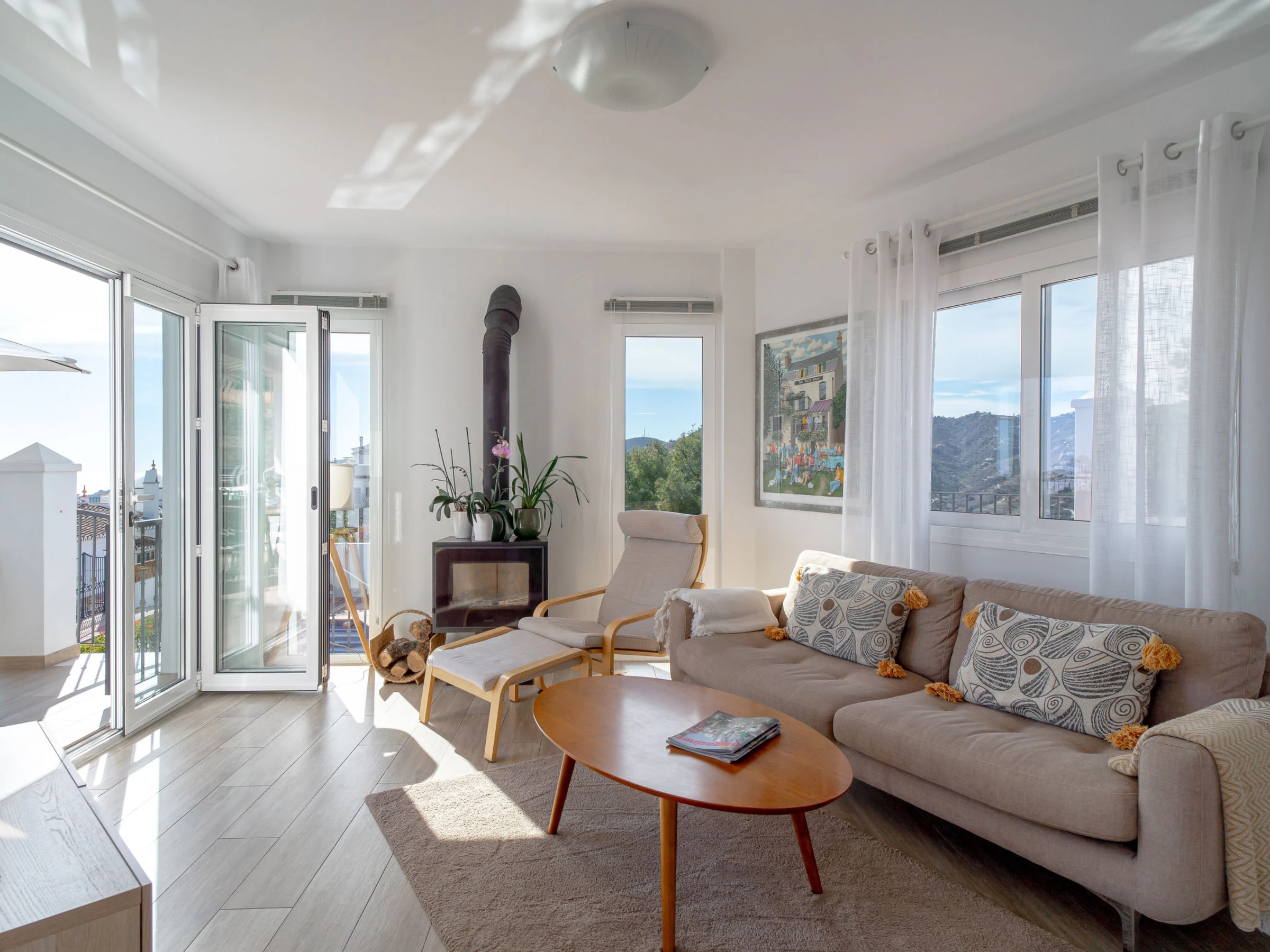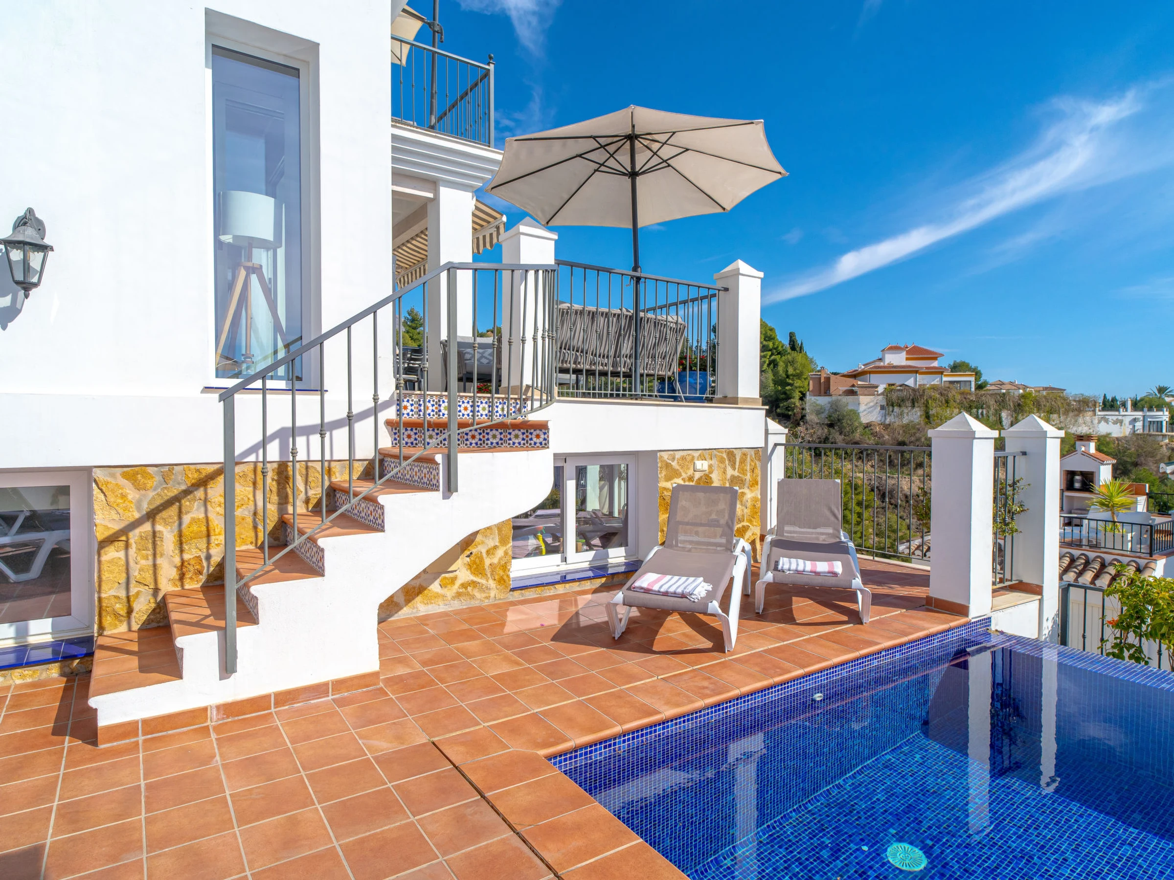 Frigilia 4 km from Nerja: Large, modern, beautiful villa "Kinkuna", 3 storeys. Outside the resort, 2 km from the centre of Frgiliana, in a sunny position residential area (villas), 4 km from the sea, 4 km from the beach, south facing position. Private: swimming pool angular (4 x 5 m, depth 140 - 180 cm, seasonal availability: [hidden] - [hidden] Outdoor shower. In the house: sun terrace. Shop 2 km, supermarket 2.5 km, shopping centre 23 km, restaurant 1 km, bakery 2 km, pedestrian zone 2 km, bicycle rental 4 km, bus stop "Bus Frigiliana y Nerja" 300 m, sandy beach "Burriana" 4 km, diving center 4 km. Sports harbour 17 km, marina 17 km, golf course (18 hole) 30 km, surf school 40 km, sailing school 17 km. Nearby attractions: Golf: Baviera, Los Moriscos, Añoreta. 30 km, Competa, Torre del Mar, Almuñecar, Málaga, Granada. Well-known ski regions can easily be reached: Sierra Nevada. Hiking paths: Sierra Almijara, Sierra Tejeda, Las Alpujarras. Please note: car recommended. Baby equipment. The owner does not accept any youth groups. Loading and unloading of baggage is possible at the holiday house. Neighbourhood highly sensitive to noise. Quietness and good behaviour expected.