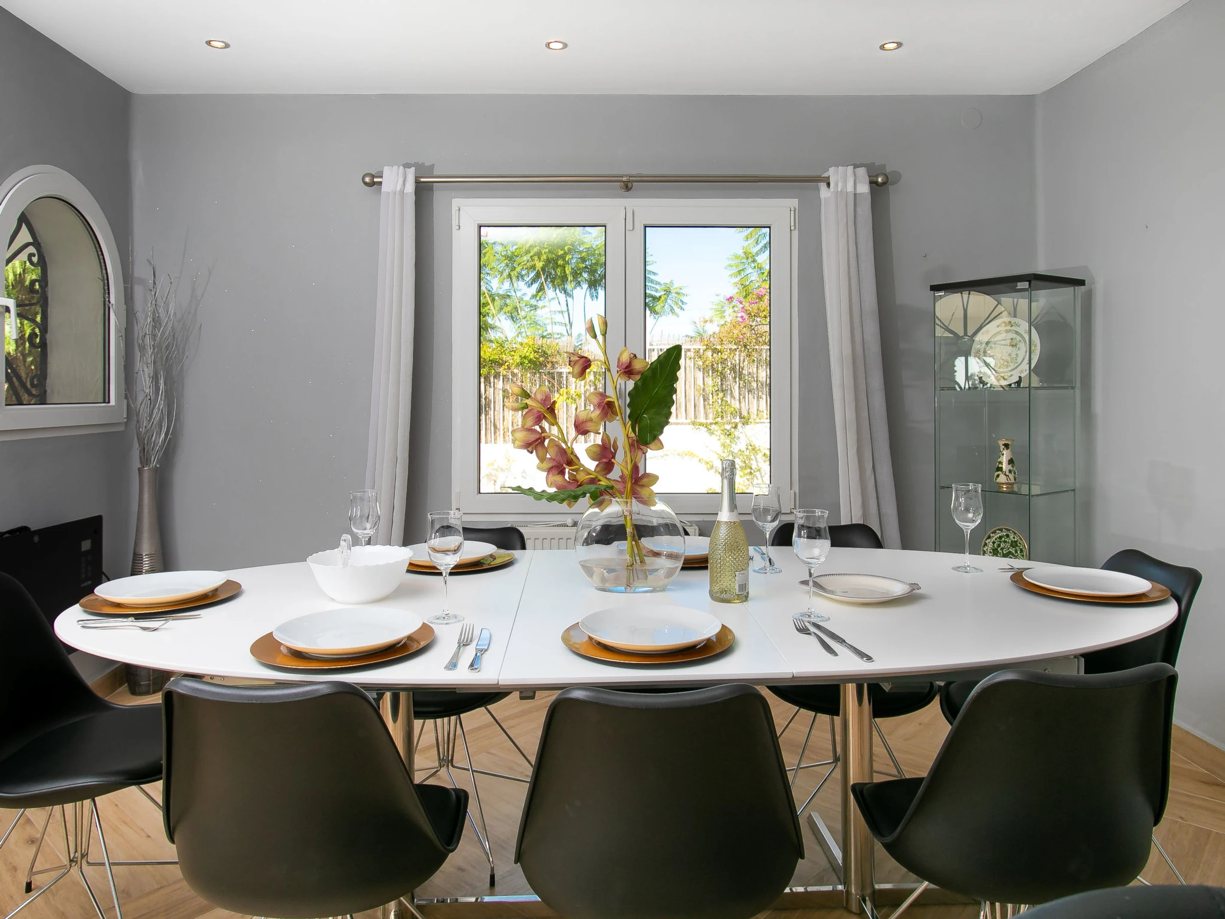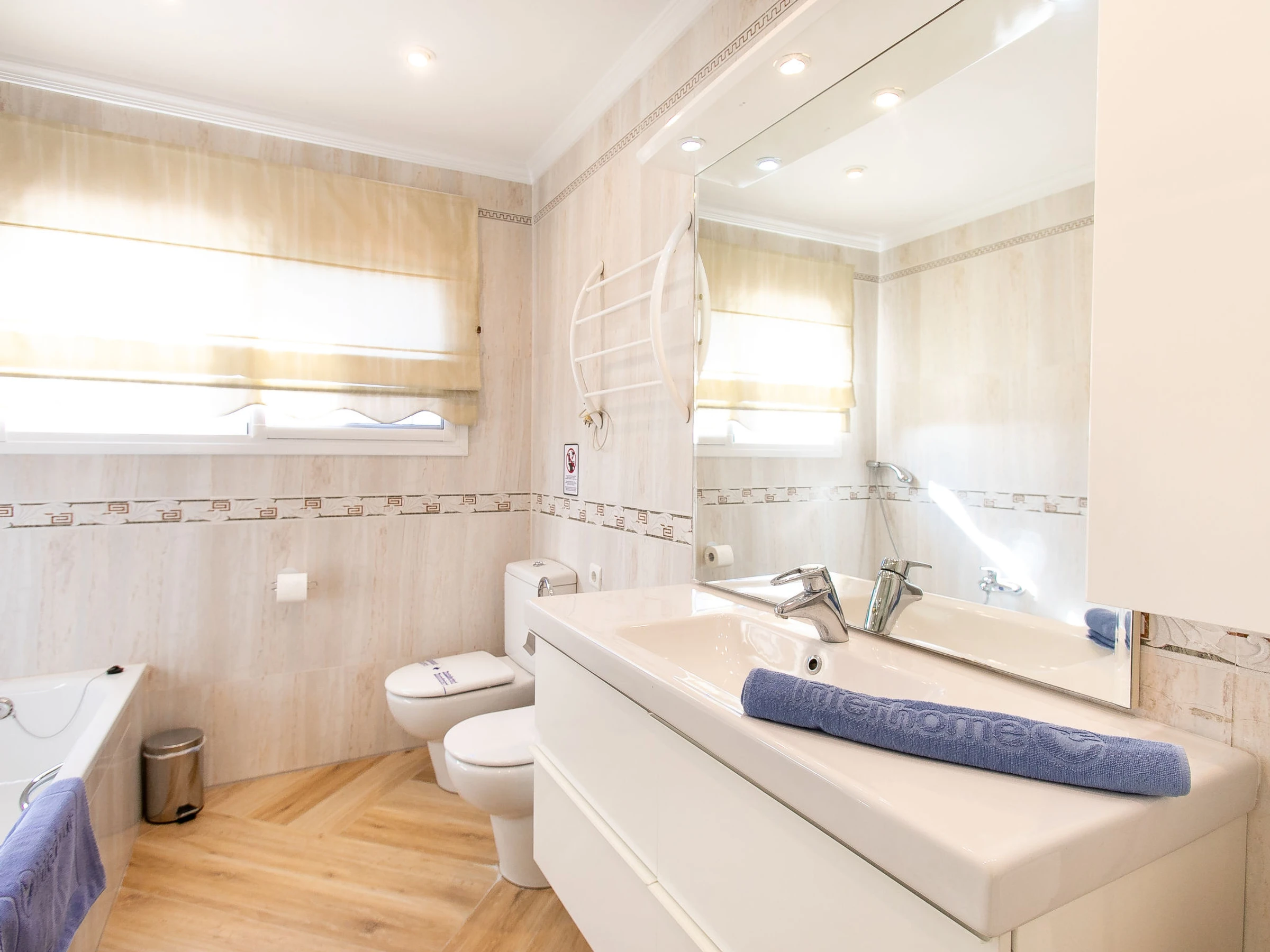 "Aries", 6-room villa 200 m2 on 2 levels, south facing position. Object suitable for 8 adults + 1 child. Spacious and bright, practical and comfortable furnishings: living room with digital TV, international TV channels, wood-burning stove, air conditioning and forced-air heating. Exit to the patio, to the swimming pool, south facing position. 1 room with 1 french bed (160 cm, length 200 cm), bath/shower/bidet/WC (private) air conditioning, fan and forced-air heating. Exit to the patio, to the swimming pool. Large kitchen (1 hot plate, oven, dishwasher, 2 ceramic glass hob hotplates, 2 induction hot plates, toaster, kettle, microwave, freezer, electric coffee machine) with bar, dining table, digital TV. Sep. WC. On the lower ground floor: living/dining room with dining table, digital TV, air conditioning, fan and forced-air heating. Exit to the patio, to the swimming pool. 1 room with 1 french bed (160 cm, length 200 cm), bath/WC, air conditioning, fan and forced-air heating. 1 large room with 1 sofabed (90 cm, length 190 cm), 1 french bed (160 cm, length 200 cm), bath/bidet/WC, air conditioning, fan and forced-air heating. Exit to the patio, to the swimming pool. 1 room with 2 beds (90 cm, length 190 cm), fan. Open kitchen (4 hot plates, oven, dishwasher, toaster, kettle, microwave, freezer, electric coffee machine) with dining table, air conditioning and forced-air heating. Exit to the patio, to the swimming pool. Shower/WC. Large terrace, large patio, large garden, lawn. Terrace furniture, barbecue, deck chairs (6), sitting area. Very beautiful panoramic view of the sea and the mountains. Facilities: washing machine, iron, mosquito net, children's high chair, baby cot for up to 2 year olds, hair dryer. Internet (WiFi, free). Garage on the property (2 cars). Please note: suitable for families. Private entrance, smoke alarm, fire extinguisher. The pool mentioned in the description is for private use. Completely private and isolated pool. [hidden]