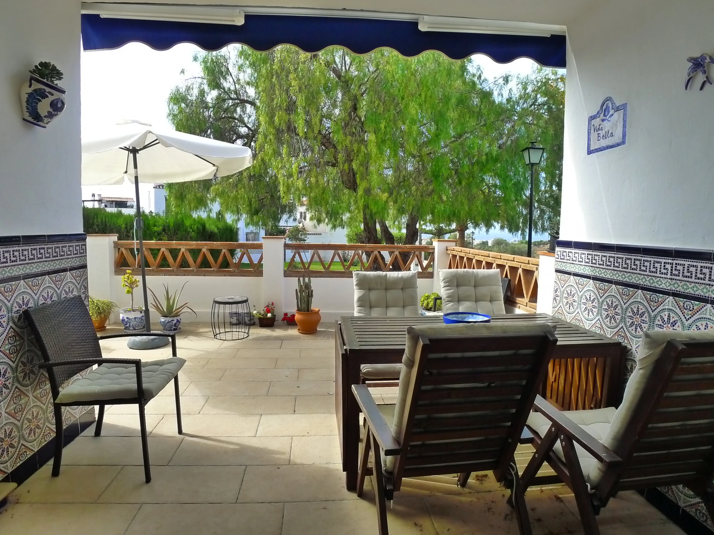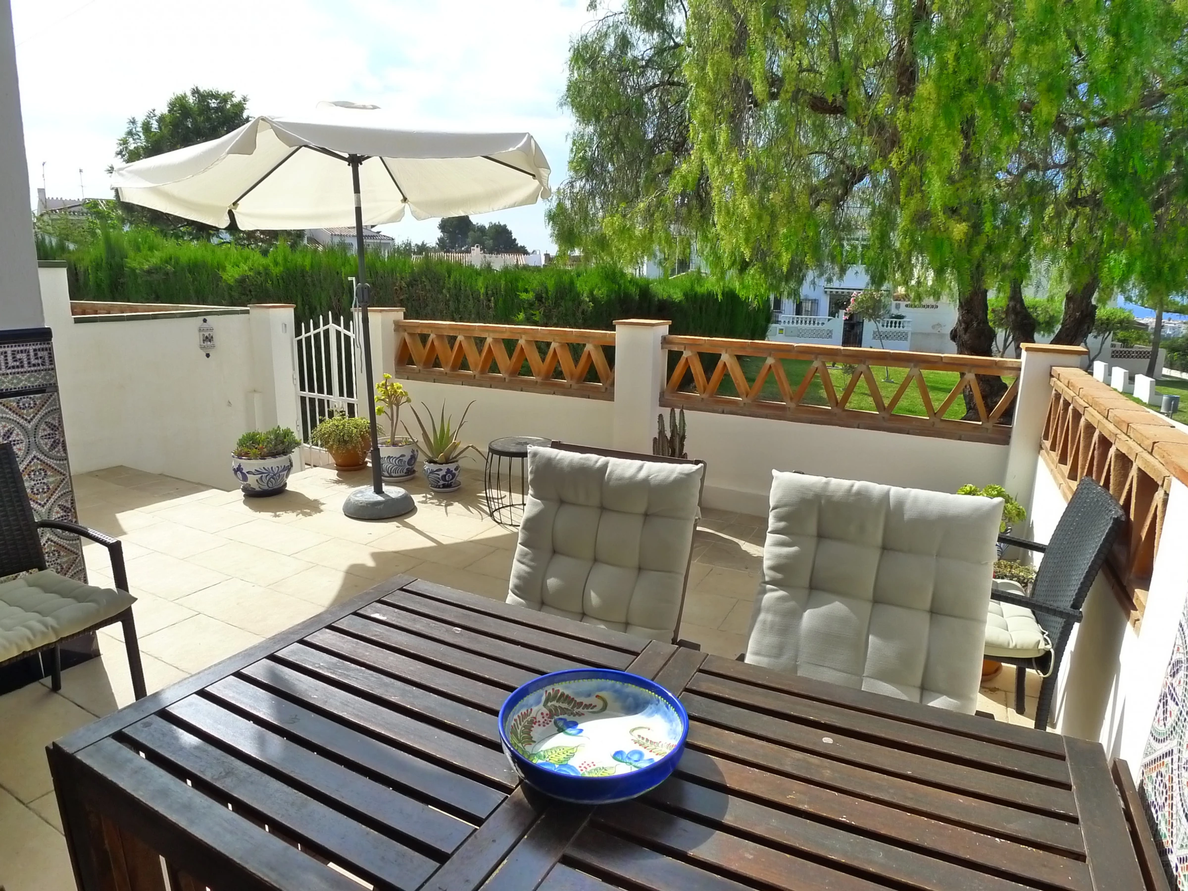 The front terrace is furnished with a large extendable dining table for al fresco dining!