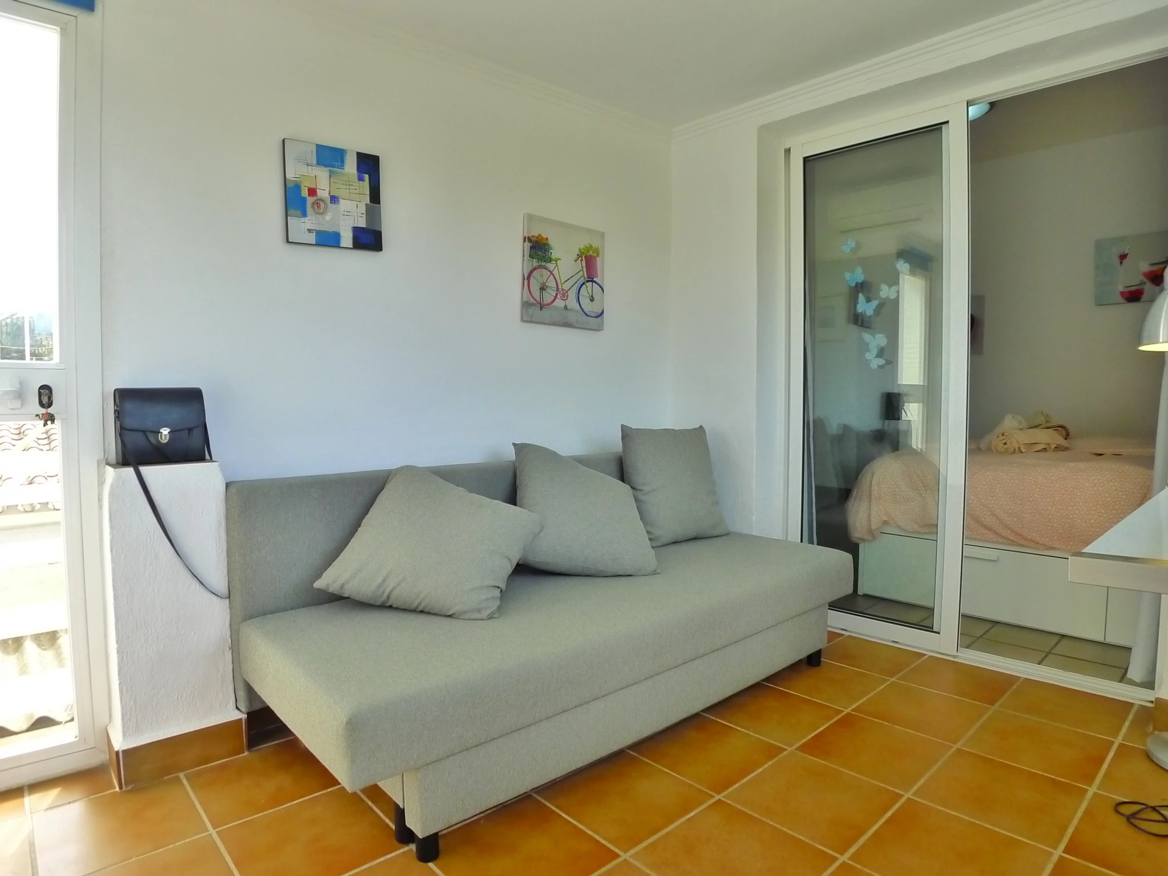 The fourth bedroom area is accessed through the third bedroom or from steps outside & has a double sofa bed. Also a small private balcony terrace.