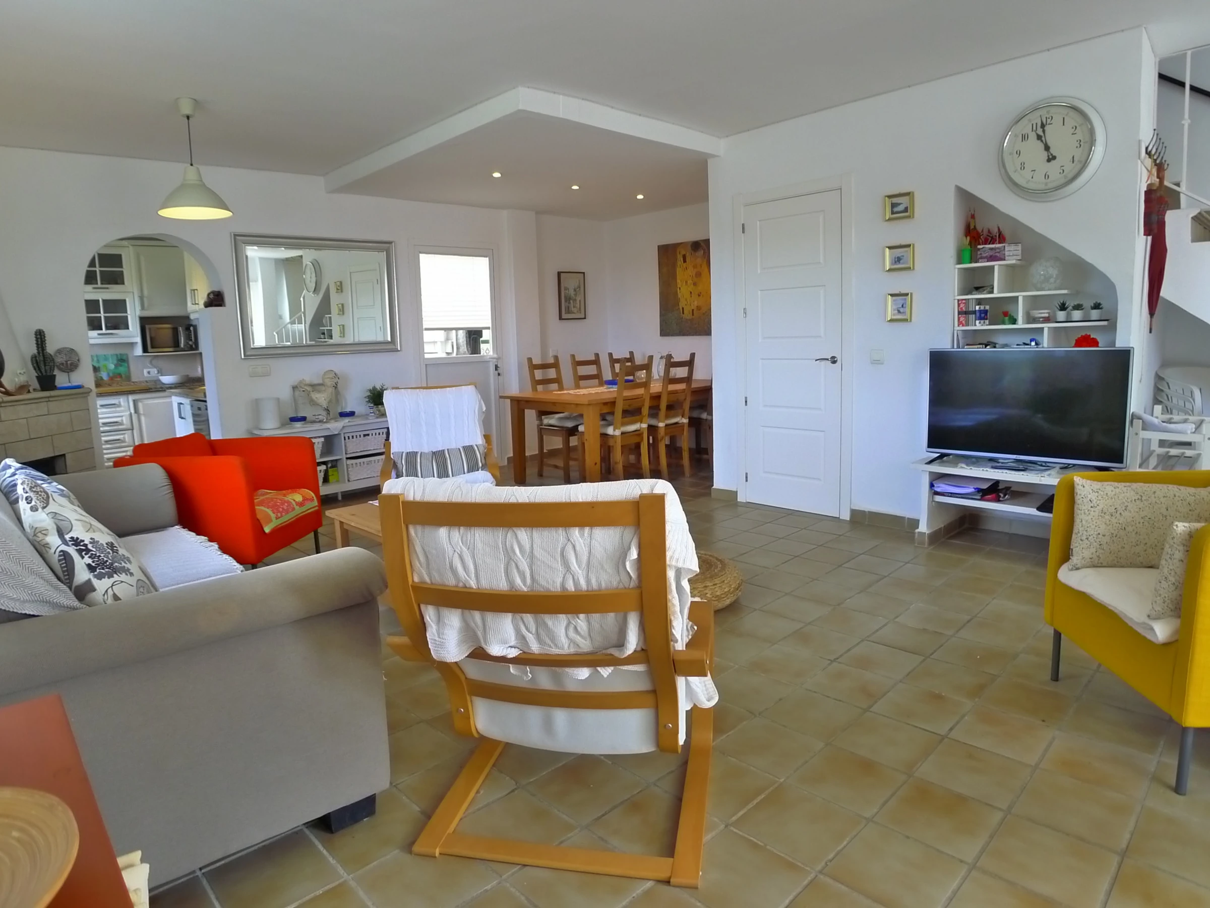 The lounge/dining area is comfortably furnished with Sat TV, Free wifi & a large dining table.