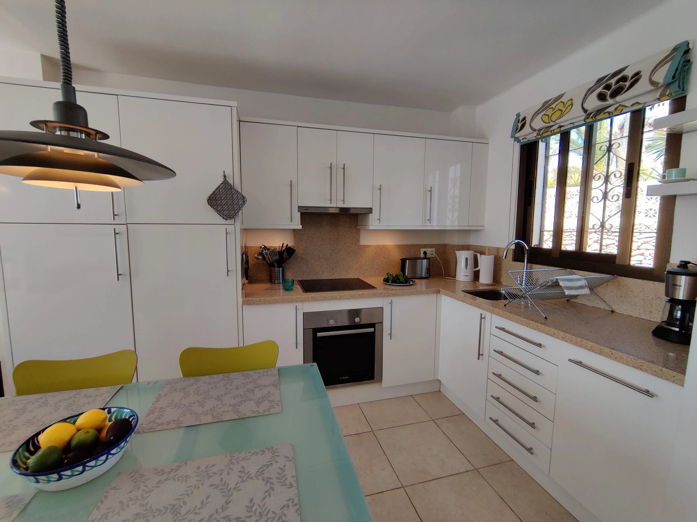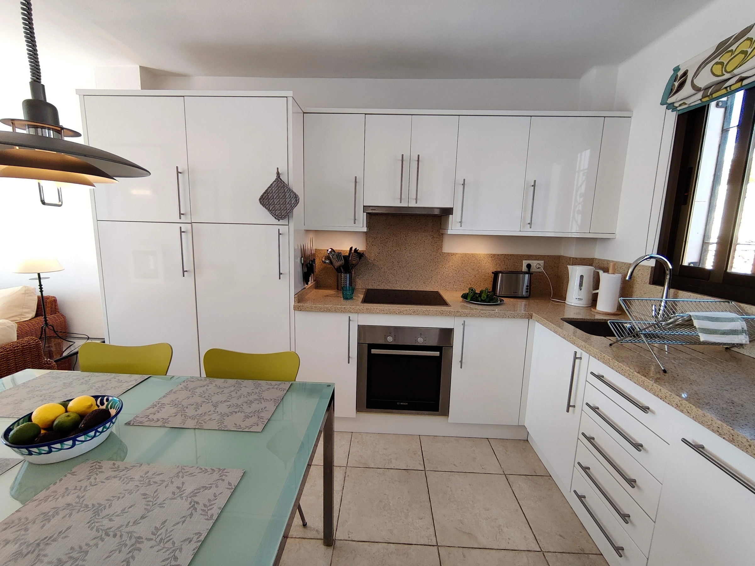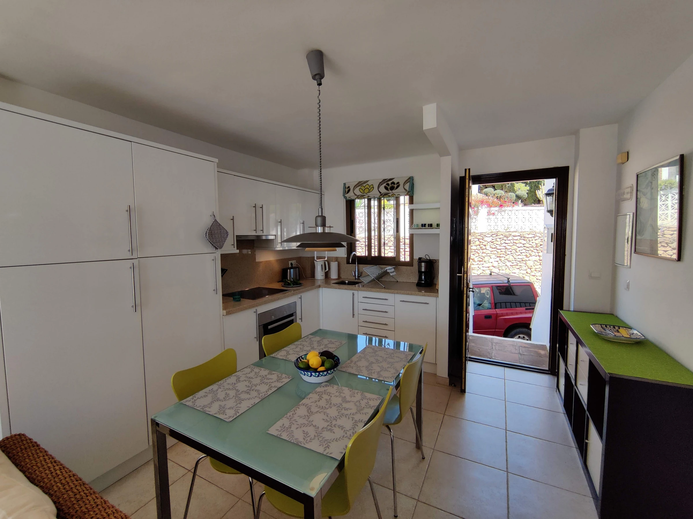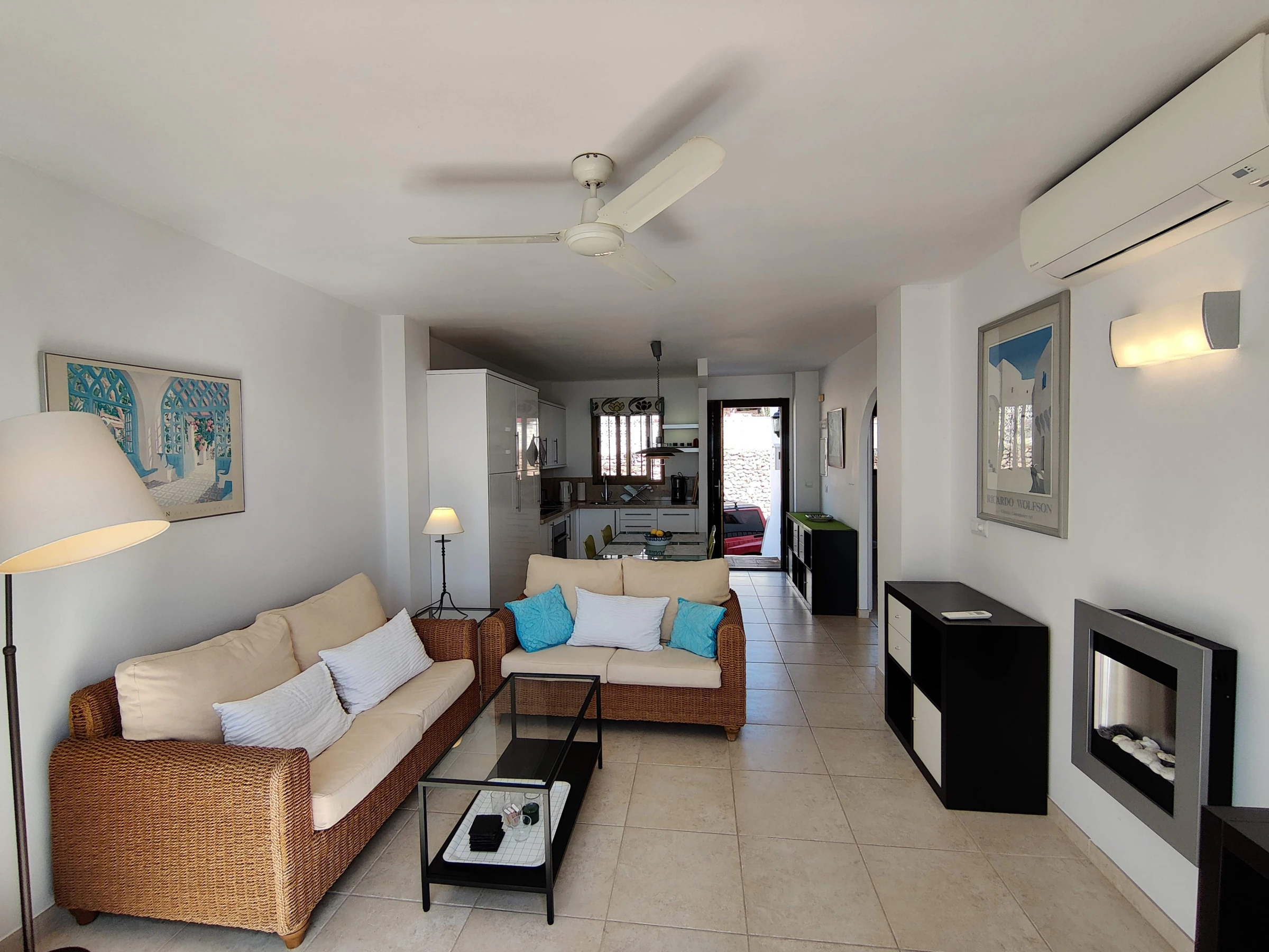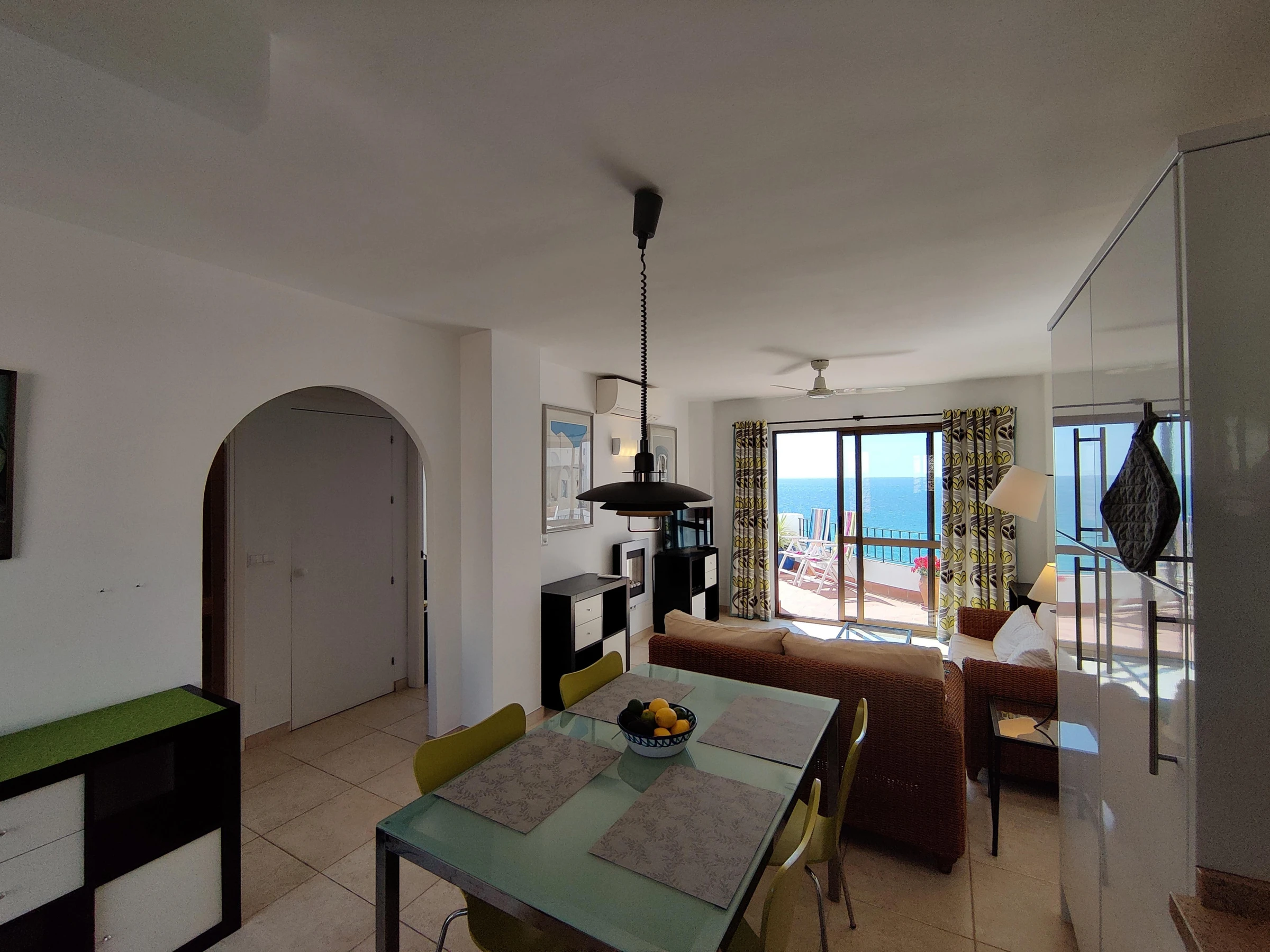 Spacious accommodation, tastefully furnished, with 2 bedrooms, 1 double and 1 twin, both with fitted wardrobes. Bathroom with bath & shower over, lounge/dining room & open plan fitted kitchen. Smart TV with HDMI connection. No Cable TV. The delightful terrace is accessed via the lounge or the double bedroom & is equipped with 2 sun loungers & a dining table with 4 chairs.