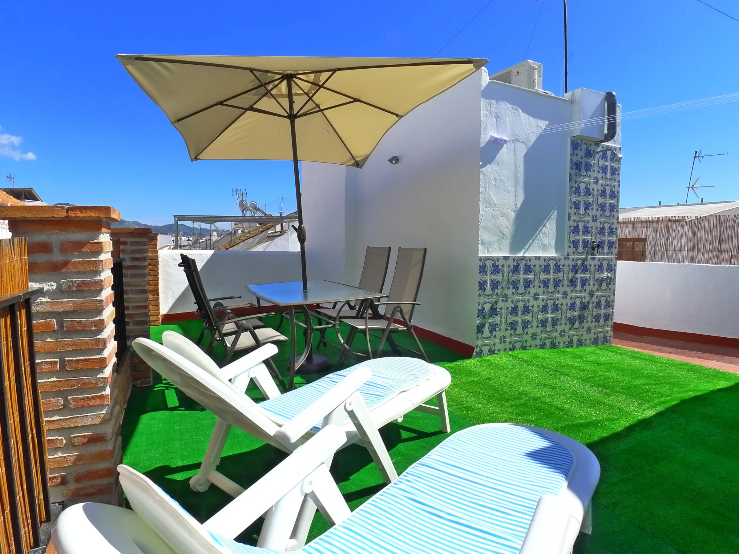 Charming holiday apartment located in a quiet pedestrian street, just off Calle Pintada, in the centre of town. Recently refurbished with superb private roof terrace.