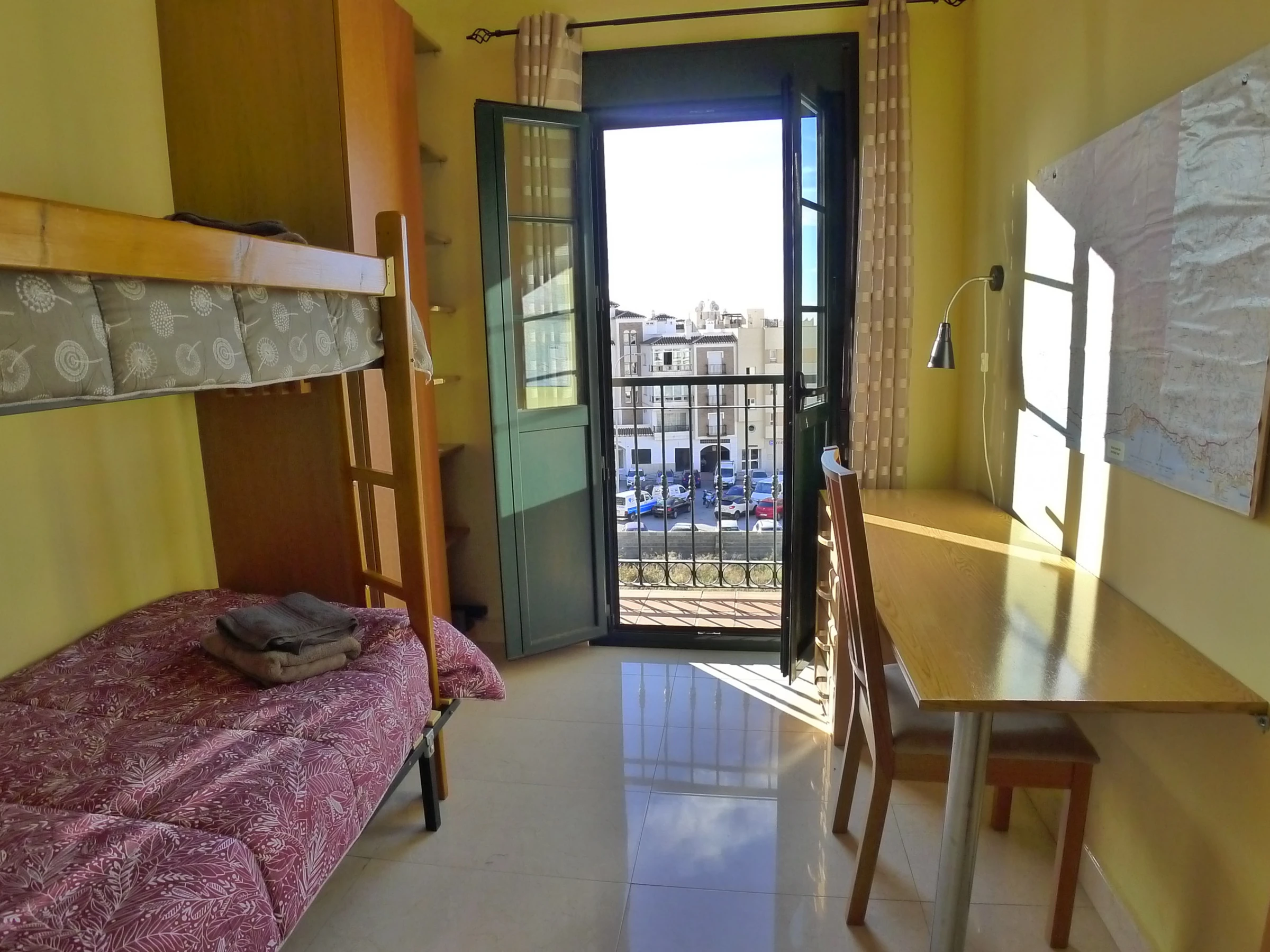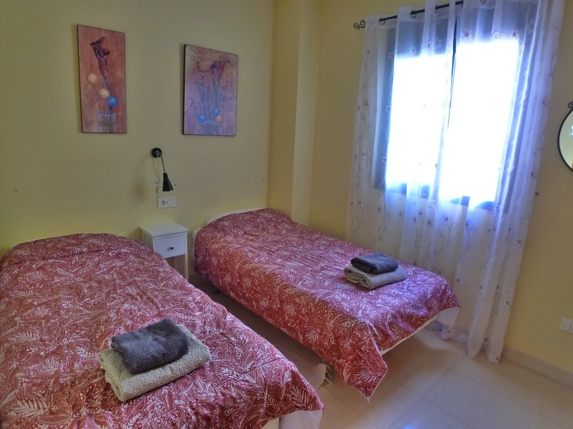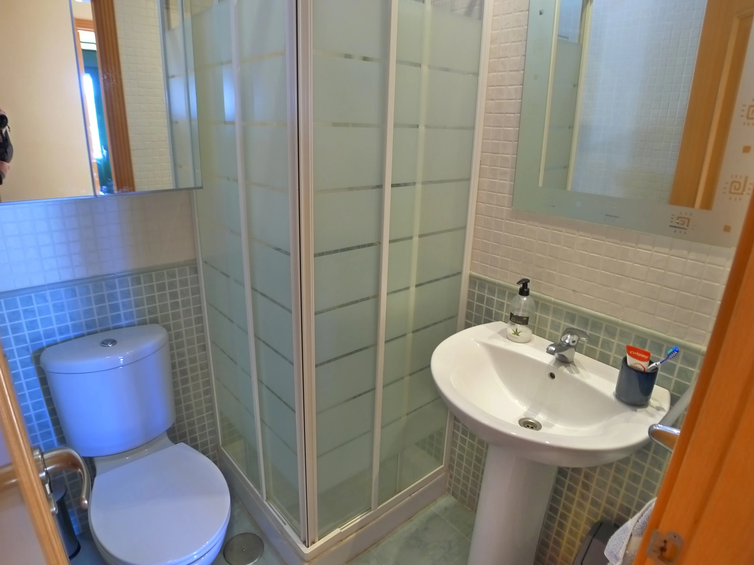 The master bedroom is a double, with A/C & fitted wardrobes. The main bathroom has a bath with shower over. The second bedroom has 2 single beds, A/C & fitted wardrobes. The third bedroom has bunk beds & a desk, wardrobe & a ceiling fan. The second bathroom has a shower.