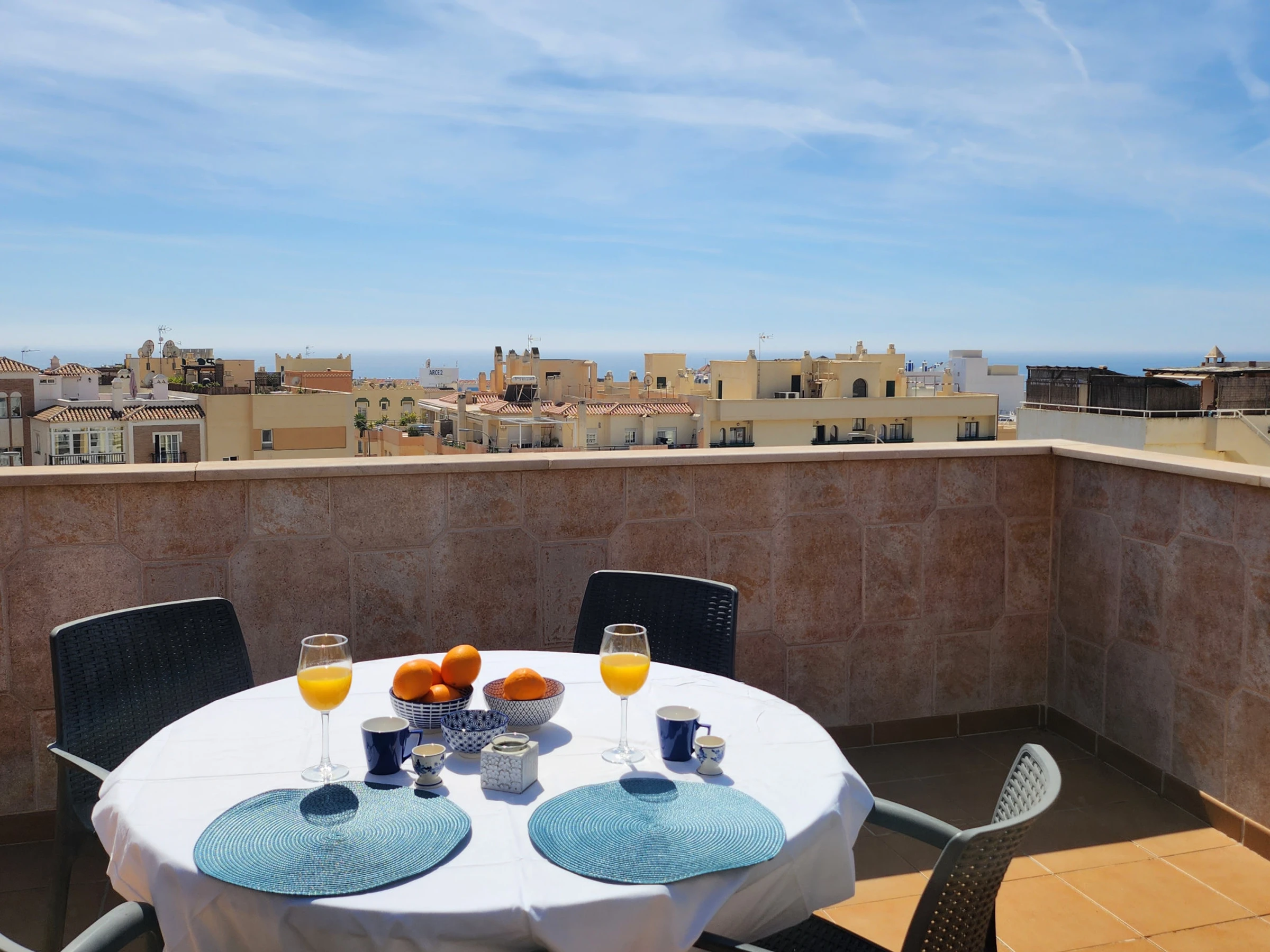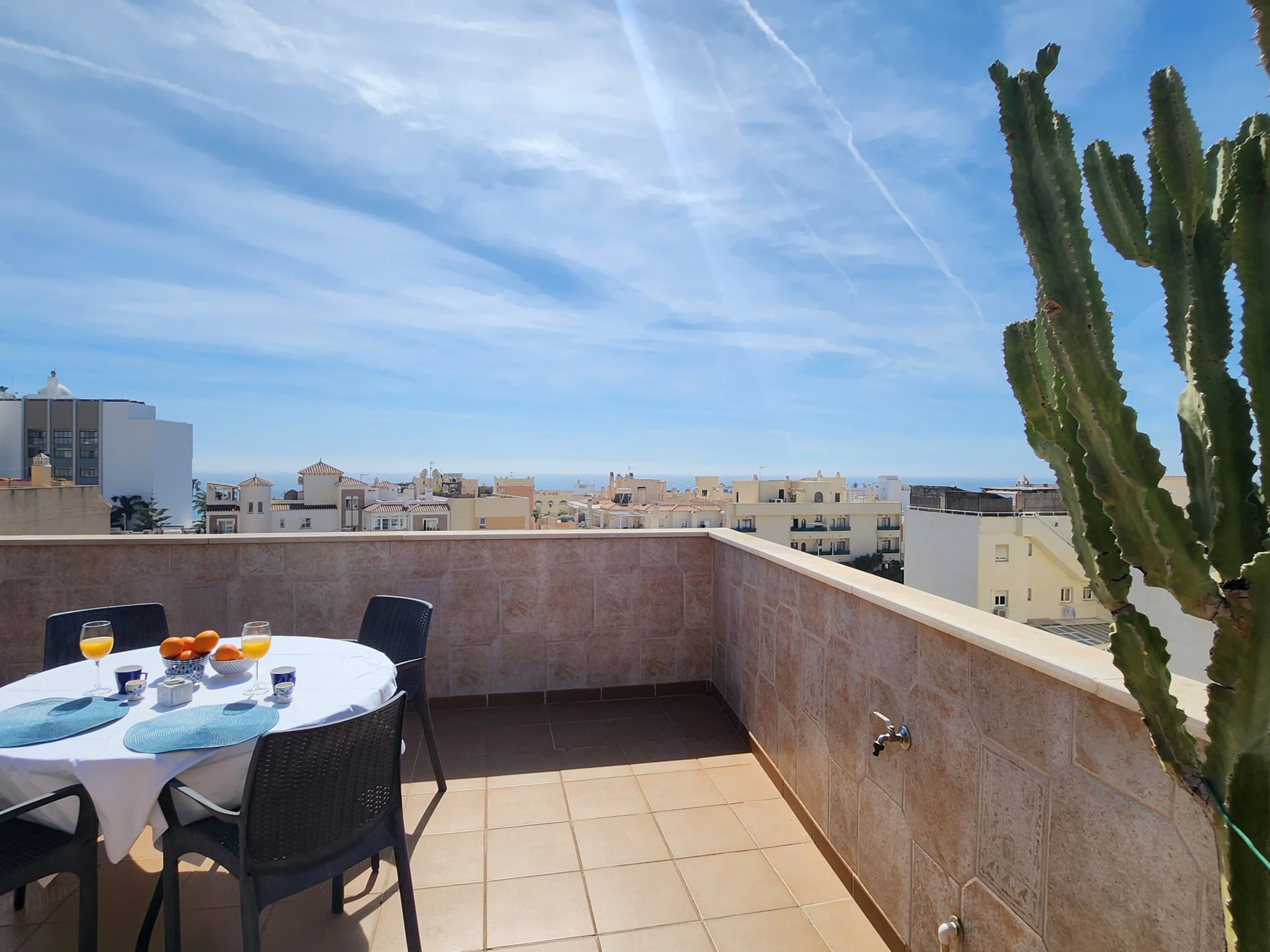 Modern holiday penthouse apartment in the centre of Nerja - Private roof terrace with spectacular views - A/C - WIFI - Private underground parking - Community swimming pool.