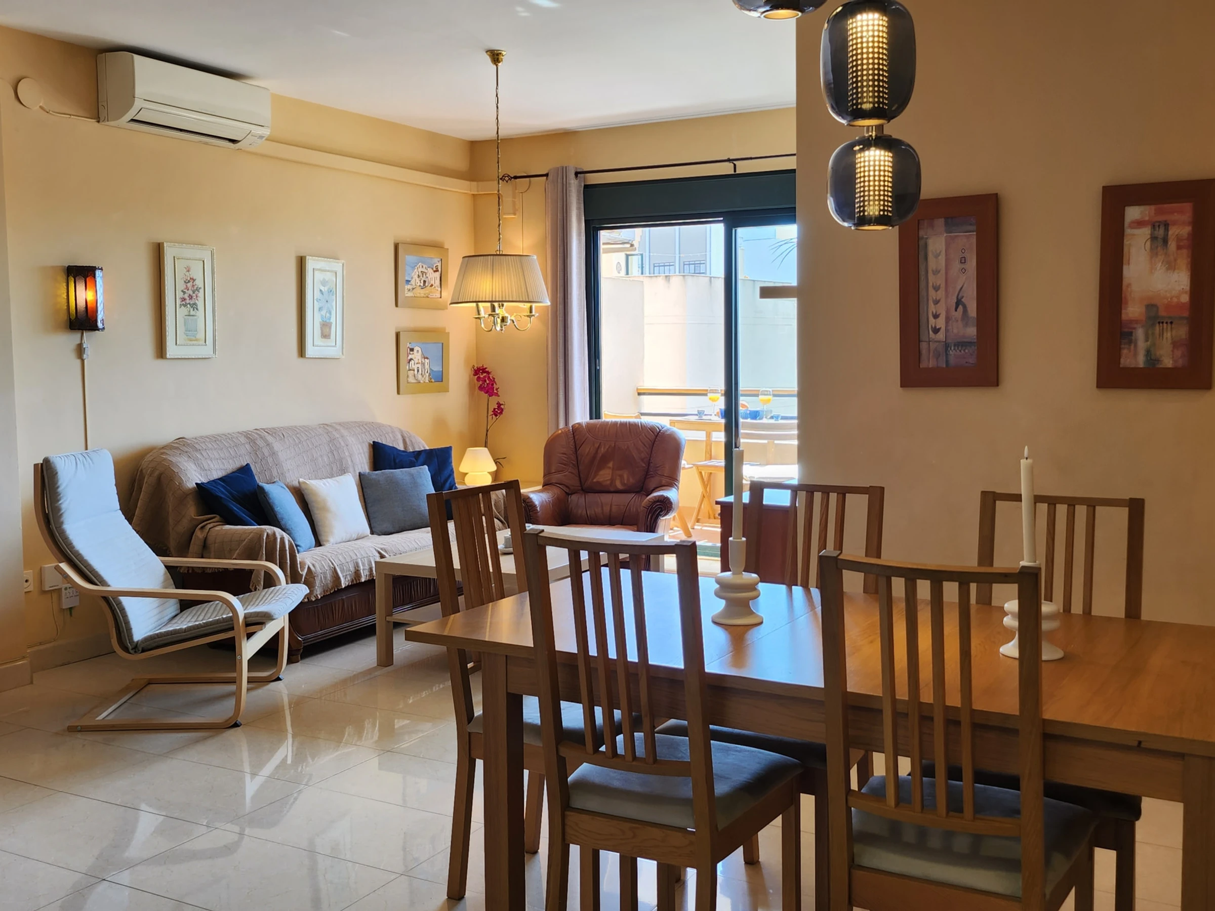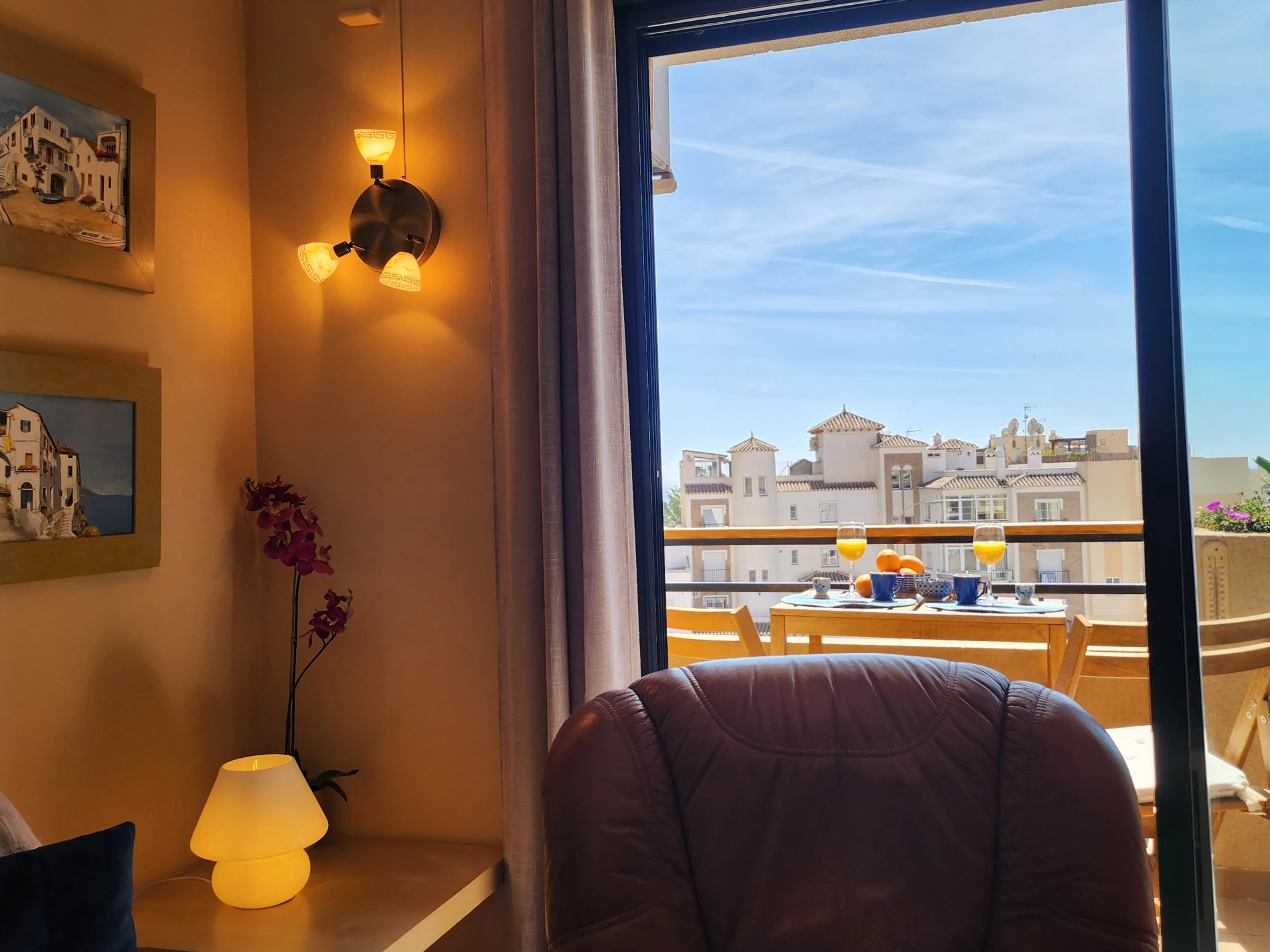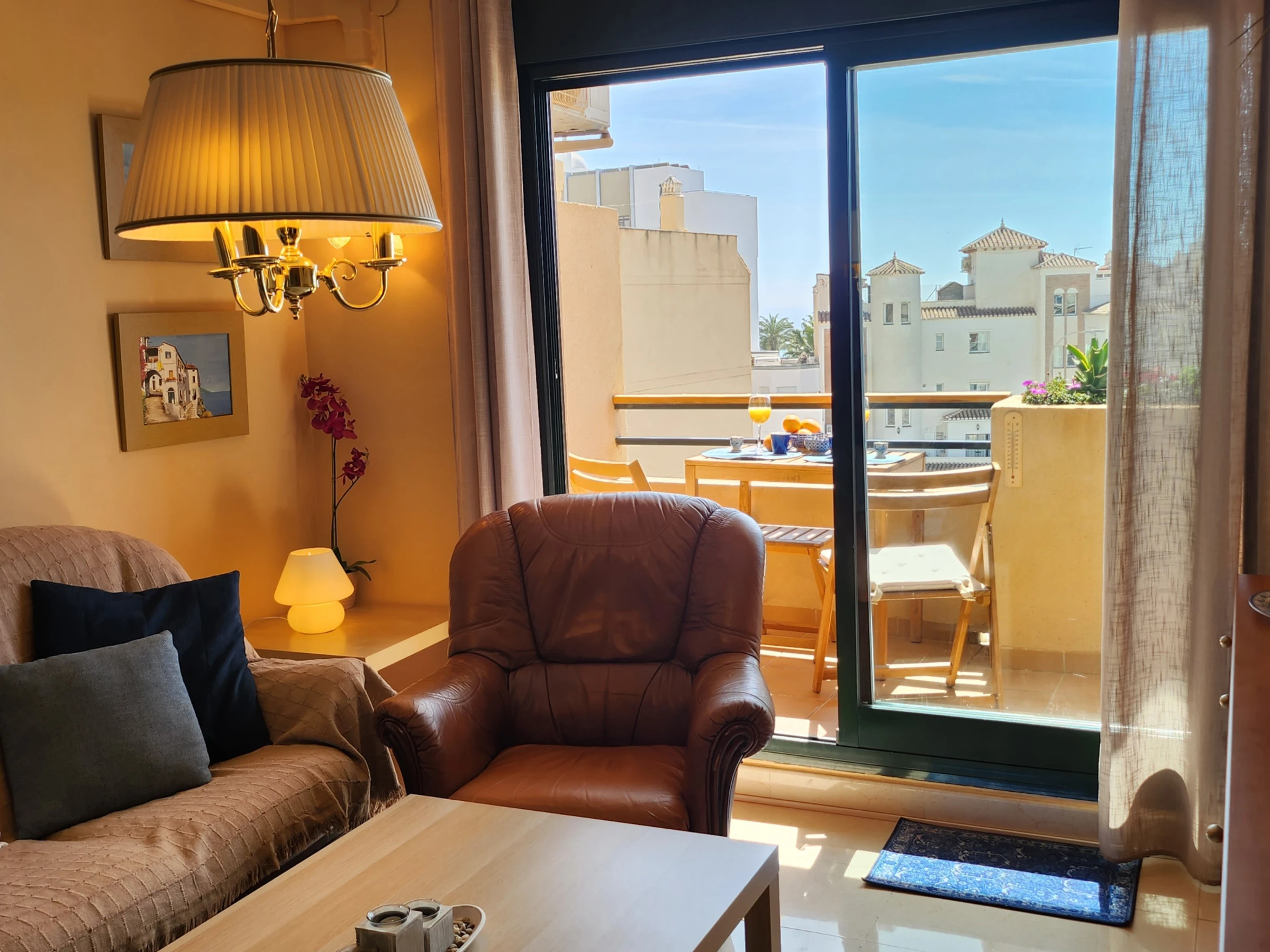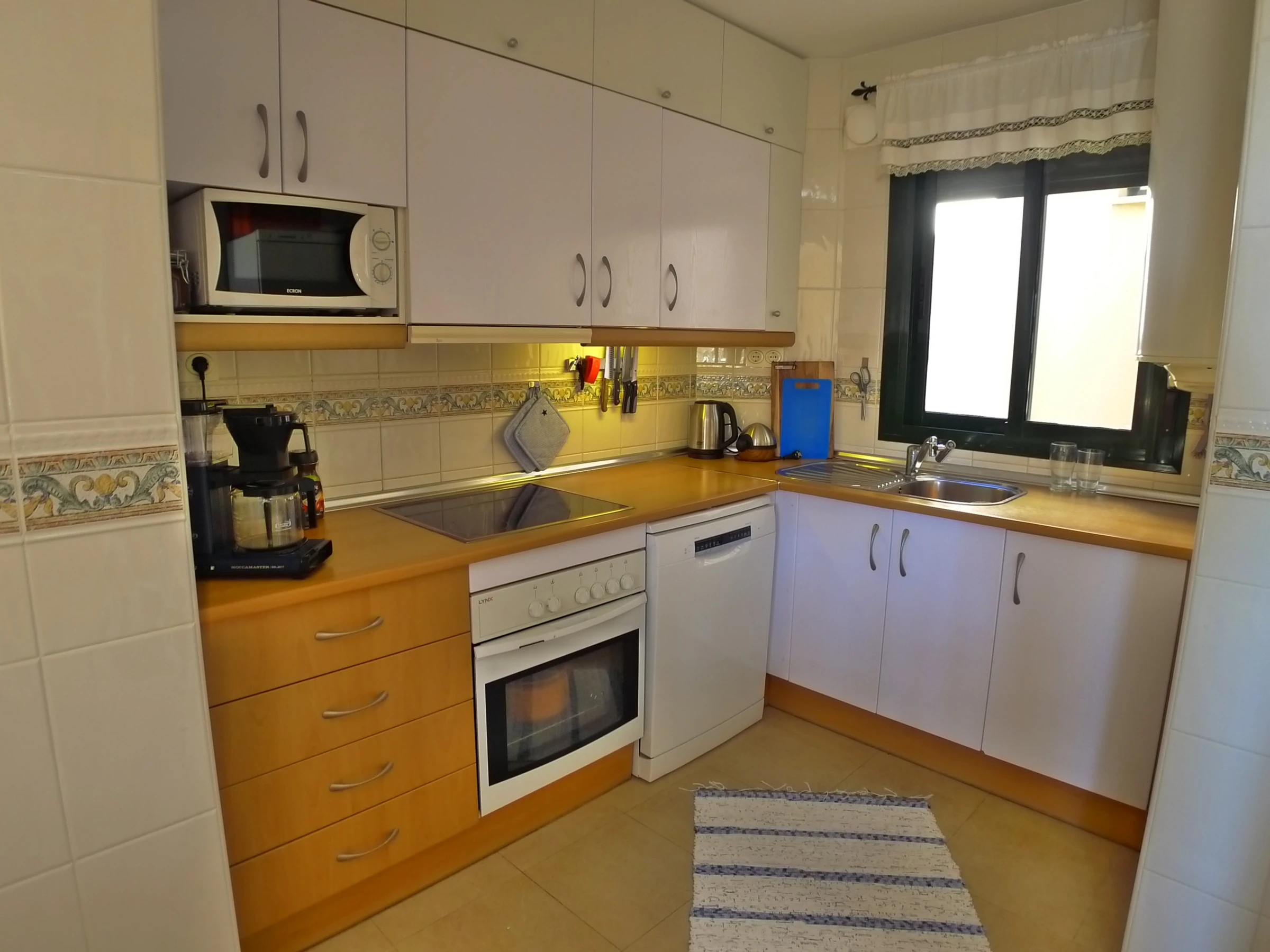 Accommodation is all on one level with lift access & comprises well-equipped fitted kitchen with ceramic hob, oven, microwave etc. The open plan lounge/dining room has sofas & dining furniture for 6 people. Flat screen TV with international channels. Sliding door access to the South facing balcony terrace & delightful views towards the sea. The spiral staircase to the private roof terrace is also located in the lounge.