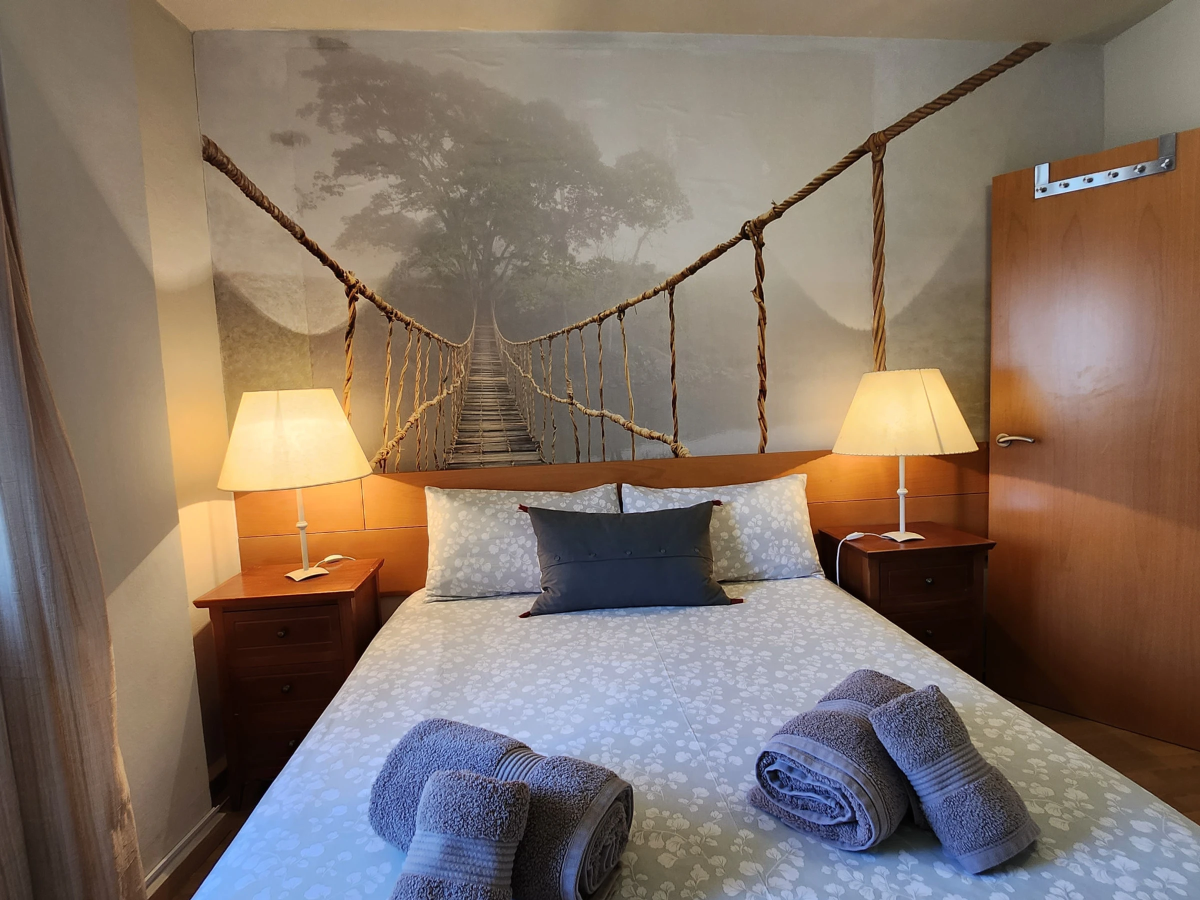 Features include air conditioning in the lounge (which has capacity for the entire apartment), flat screen TV with international channels & free wifi. The apartment is on the 2nd floor with lift access. There are steps to access the building.