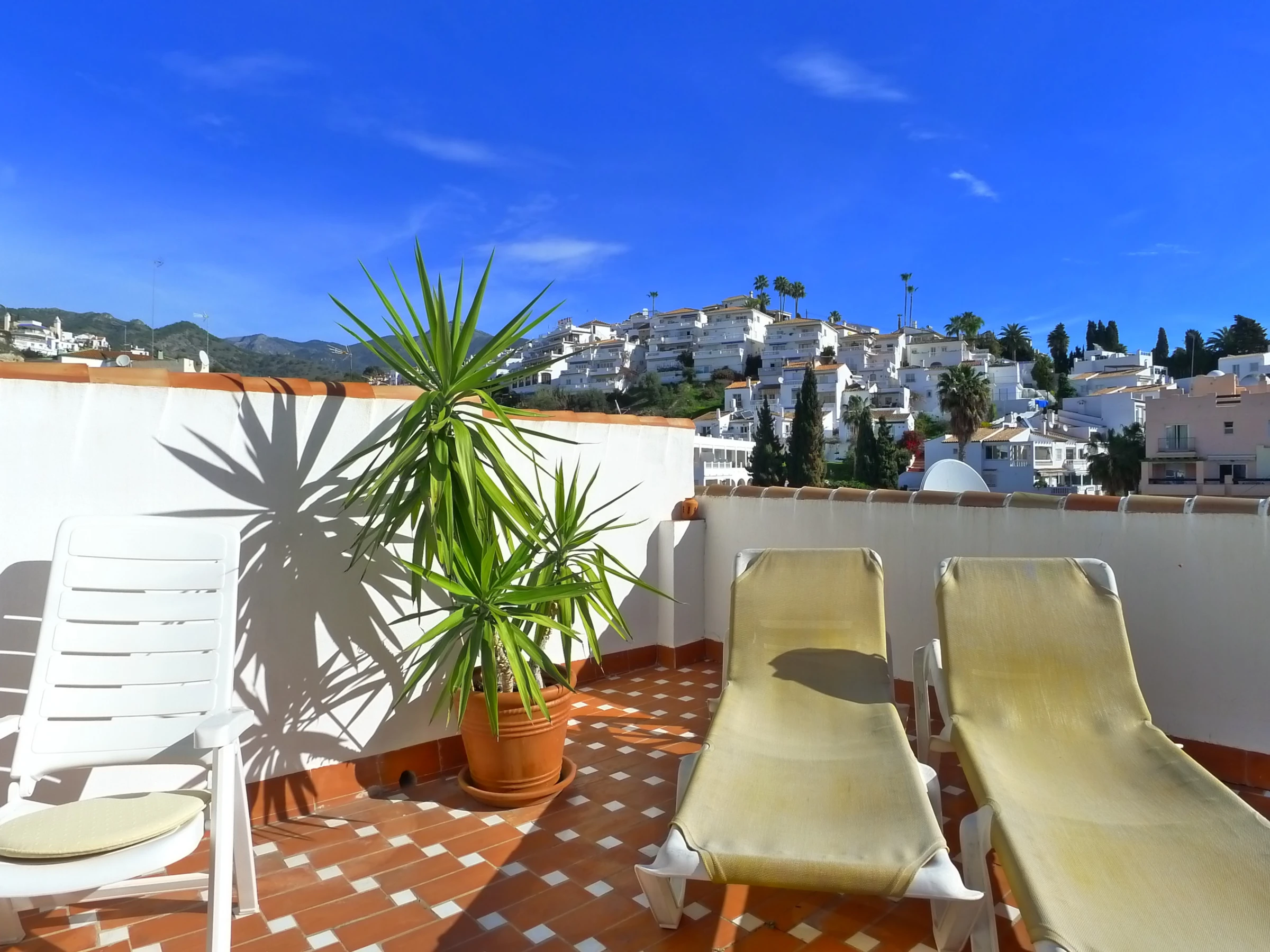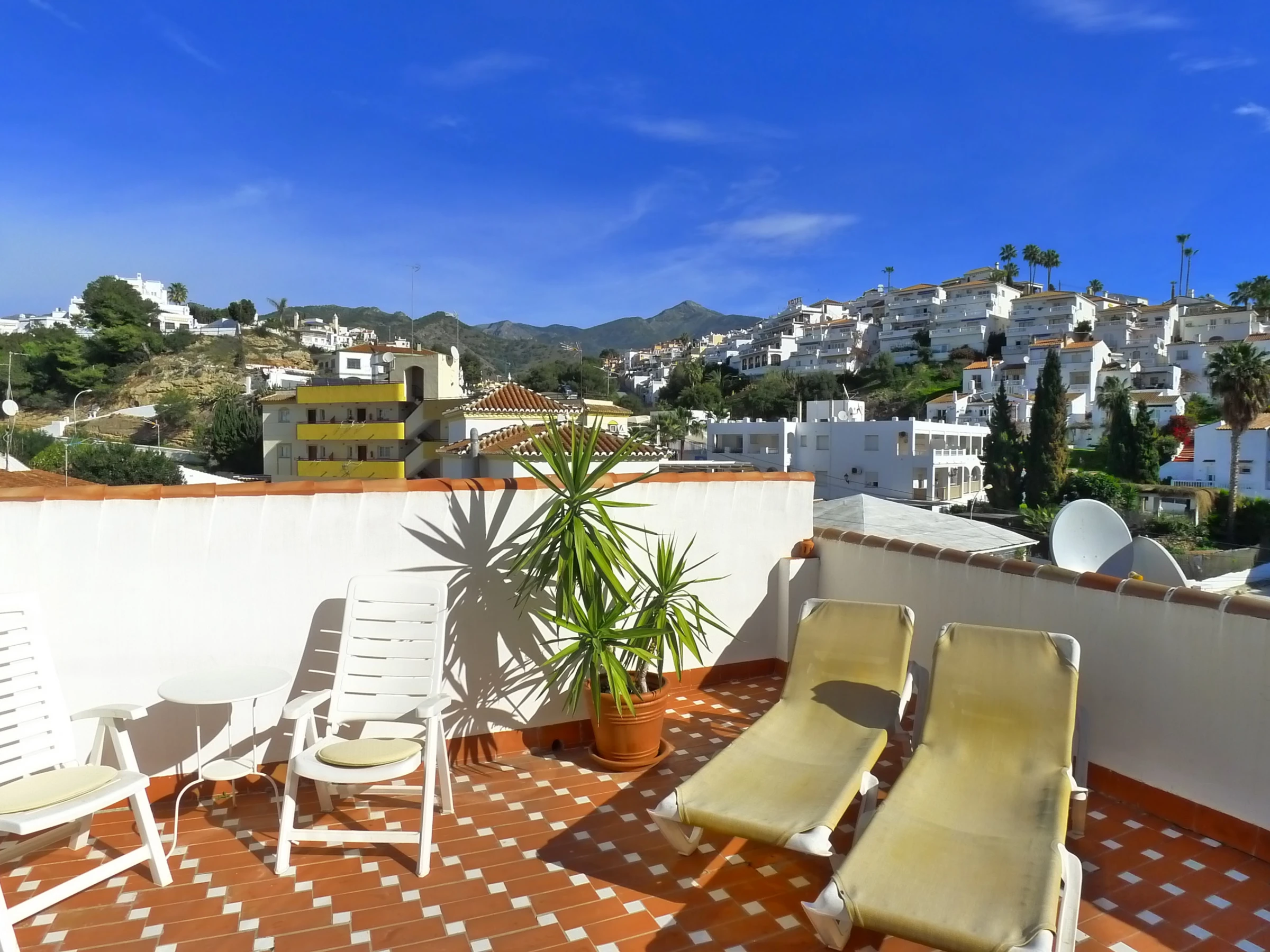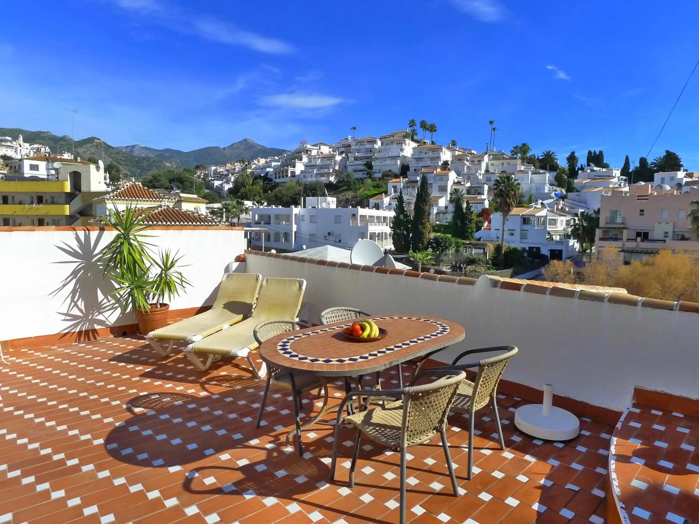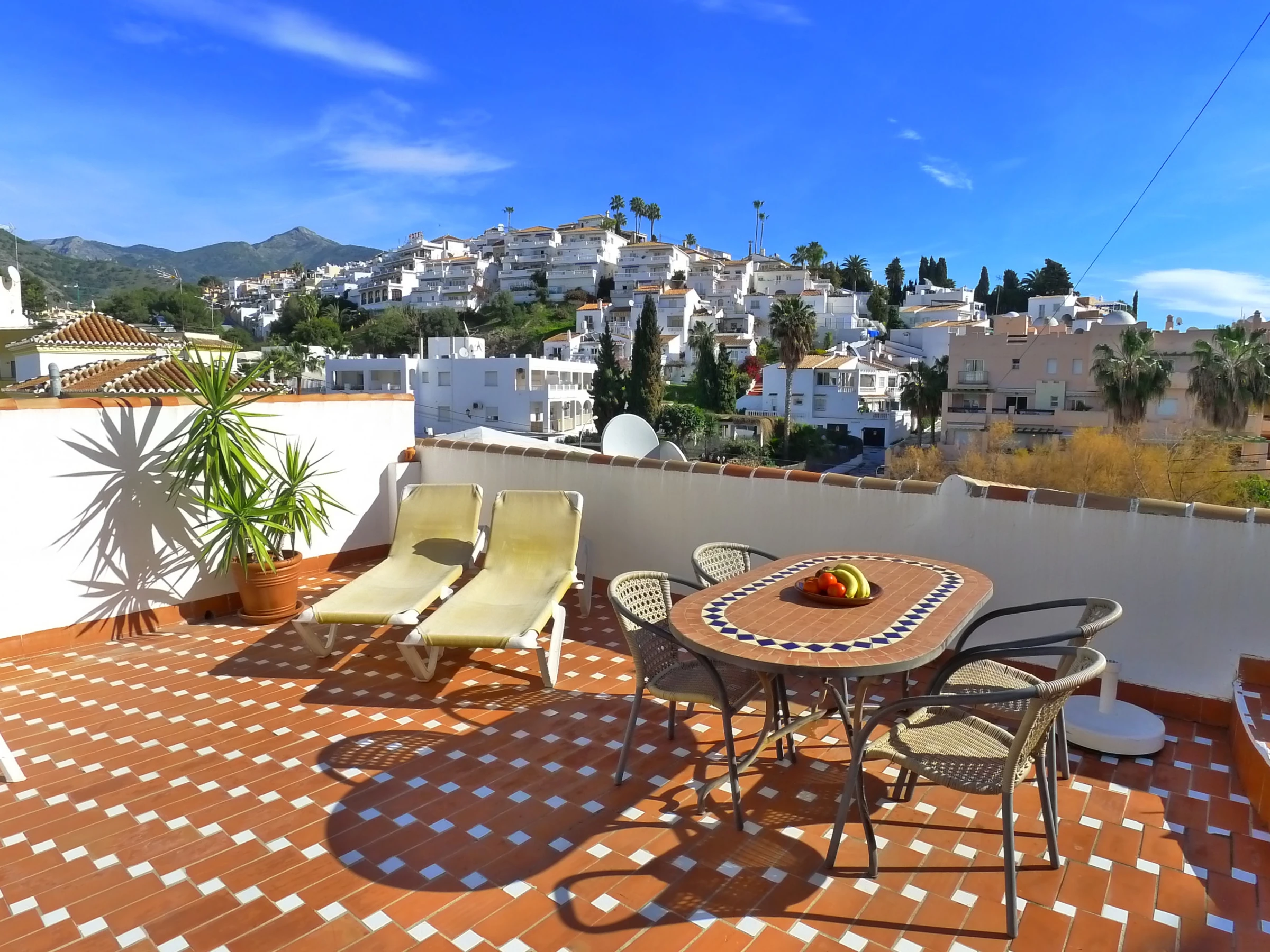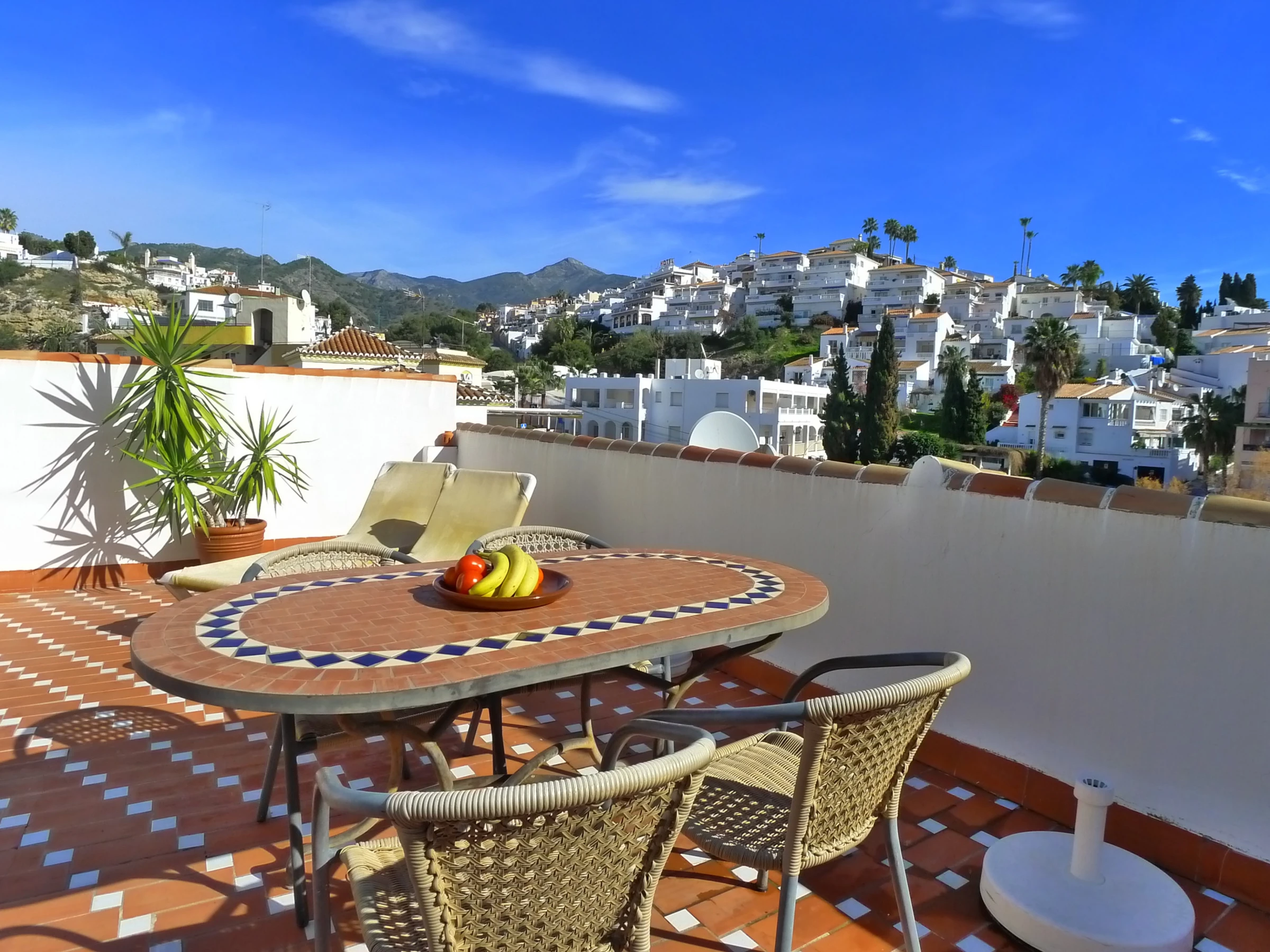 You will experience the Wow! when you walk on to the sun terrace. Spectacular views over Burriana beach to the Mediterranean sea & up towards the peak of 'Cielo' in the Sierra de Almijara. Truly stunning views.