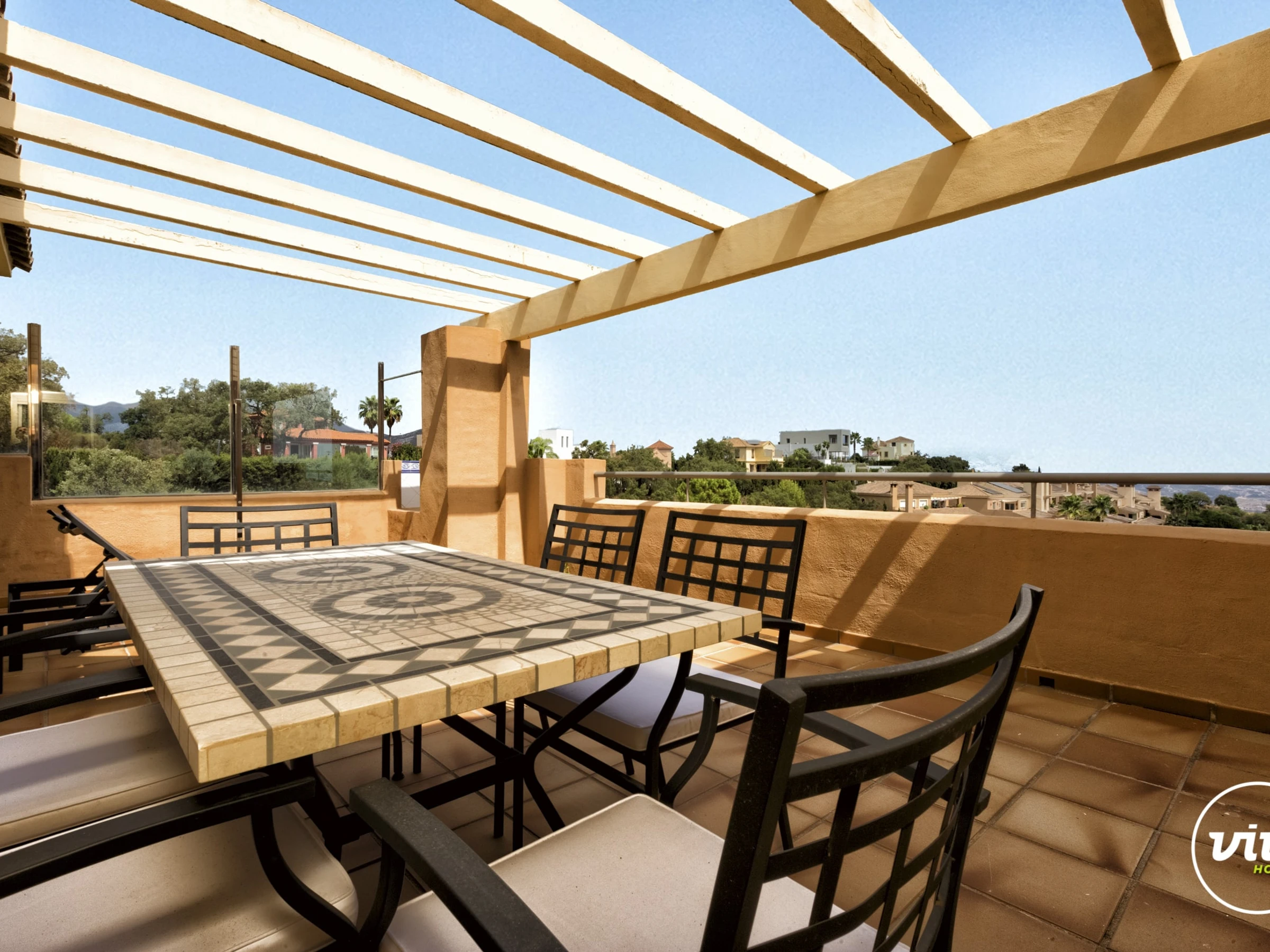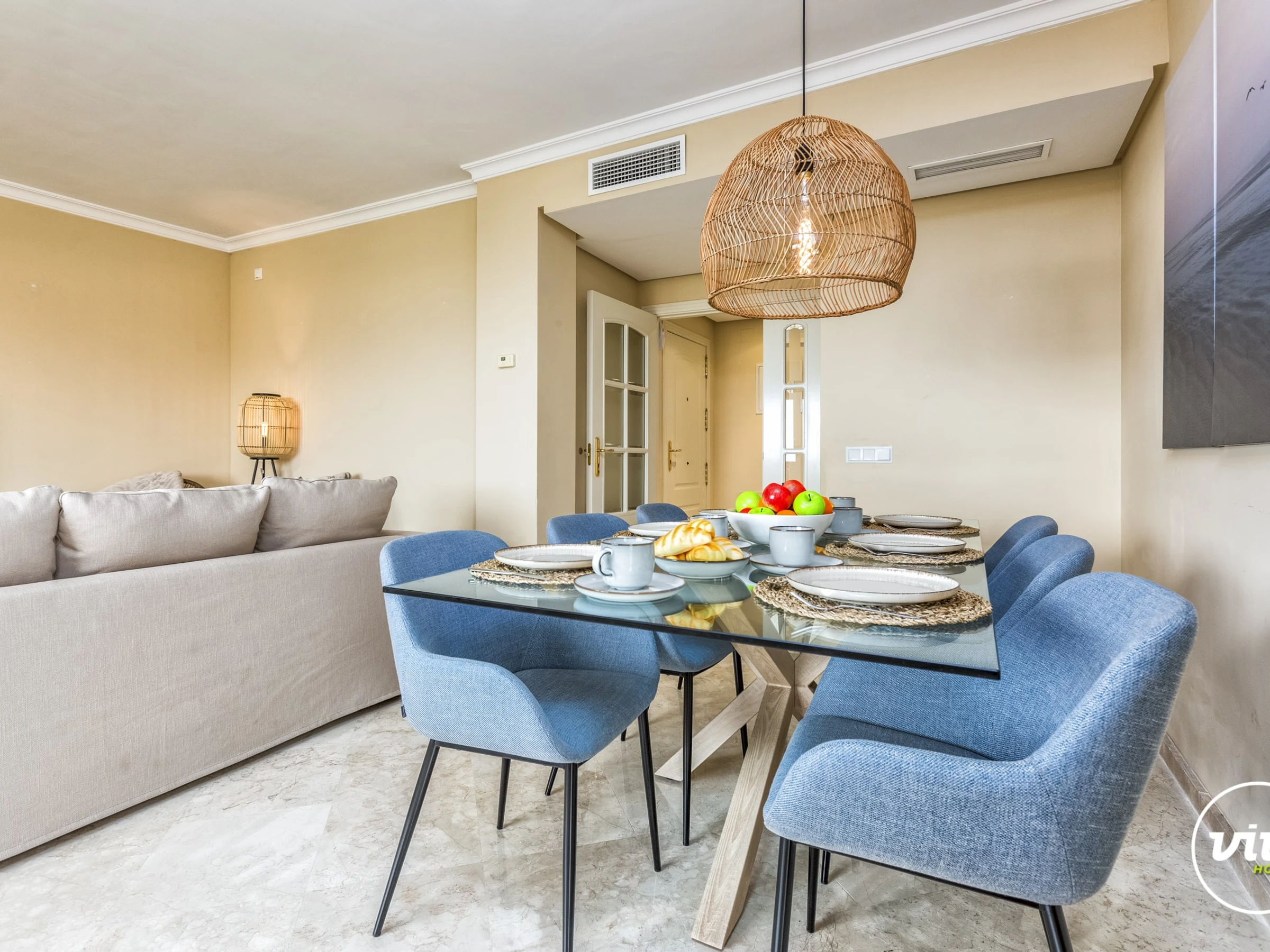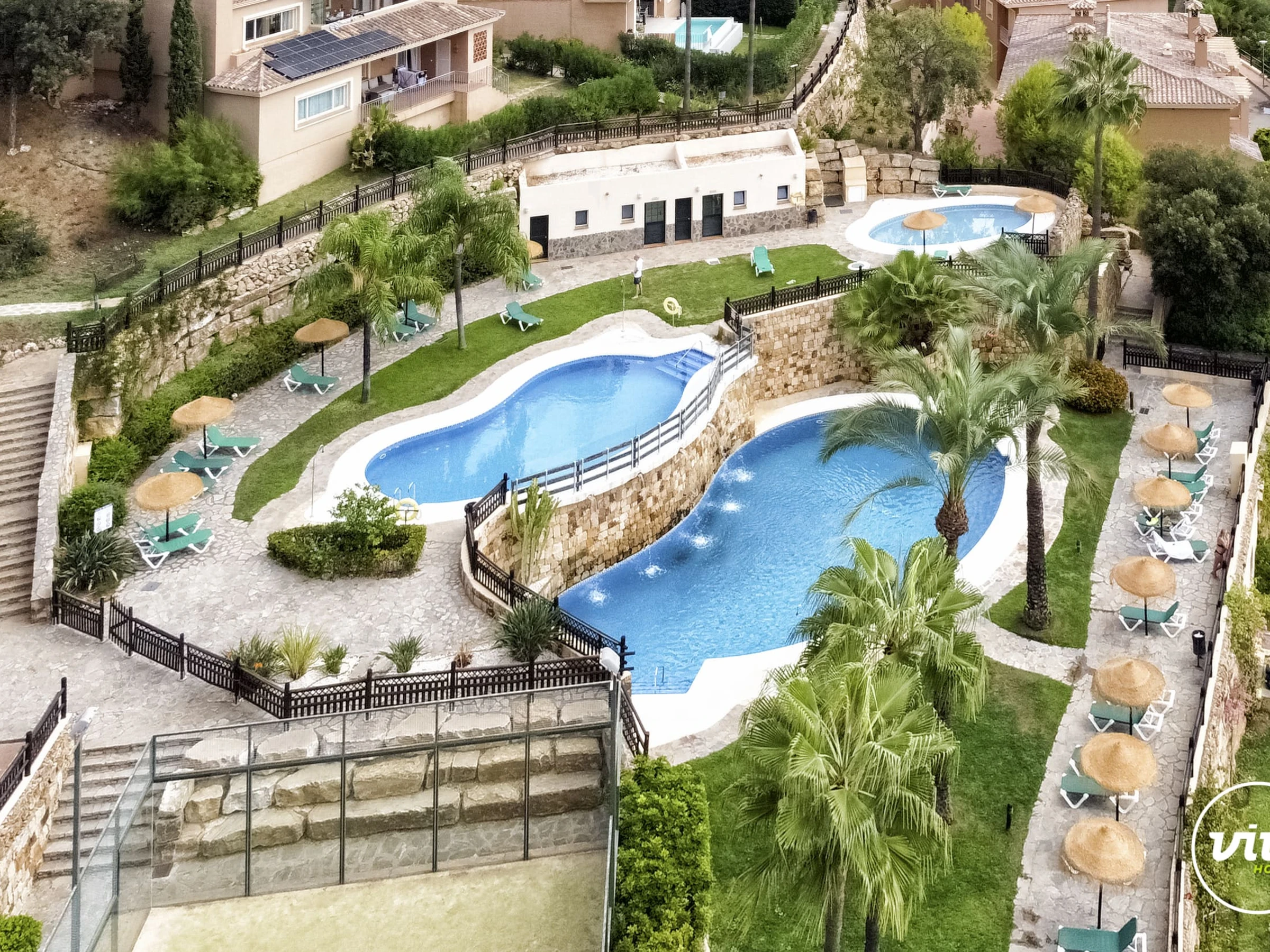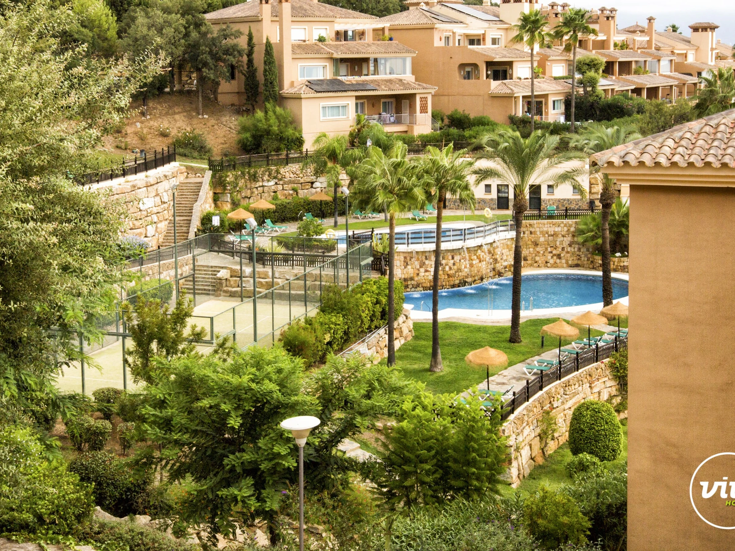 Now that the weather is starting to cool off, there is still plenty to do. Outside of the apartment, the complex where Valery is located is extremely beautiful. This stay also includes a padel court if you want to get active!