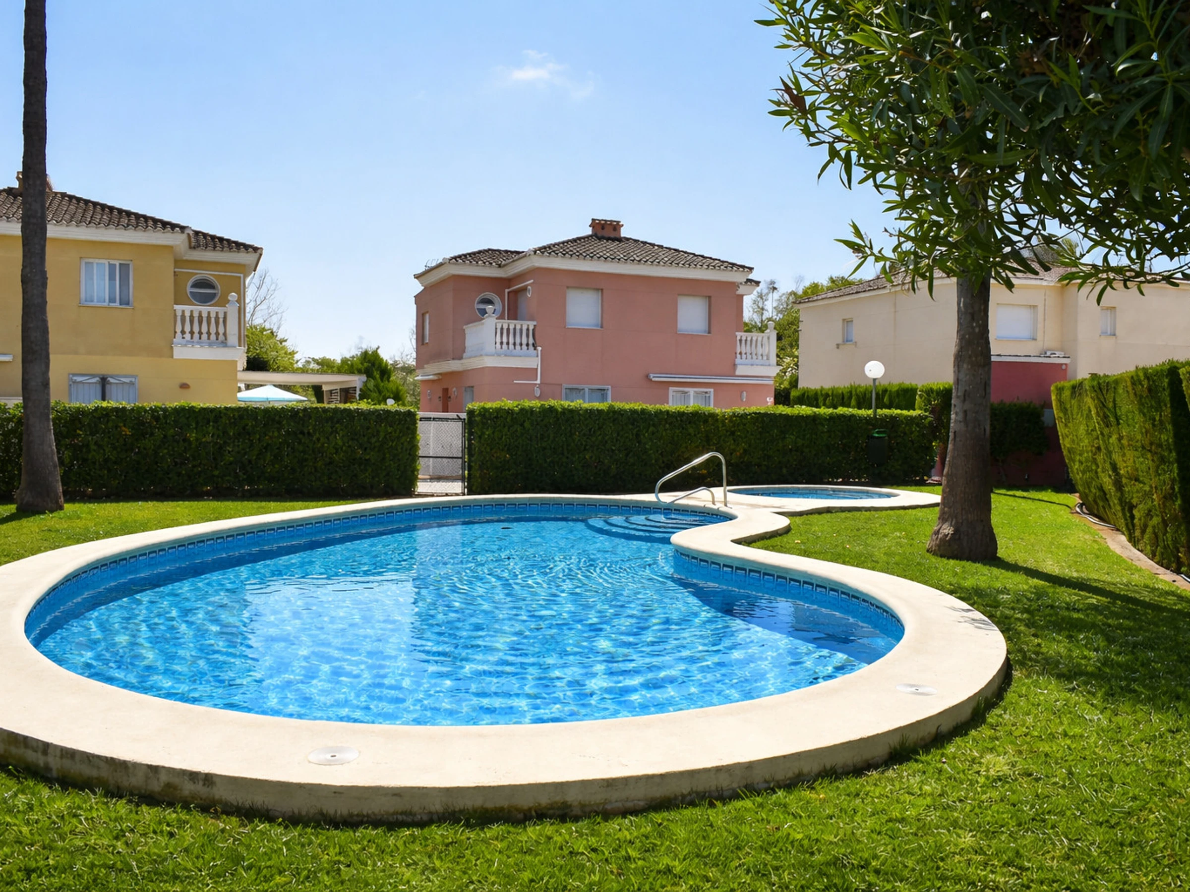 In addition to the private area, guests can enjoy a communal swimming pool, spacious and very well maintained, surrounded by natural grass and landscaped areas. This pool is shared exclusively with the residents of the urbanisation, which guarantees a relaxed, family-friendly and not at all overcrowded environment. It is a perfect space for children to play safely while adults relax.