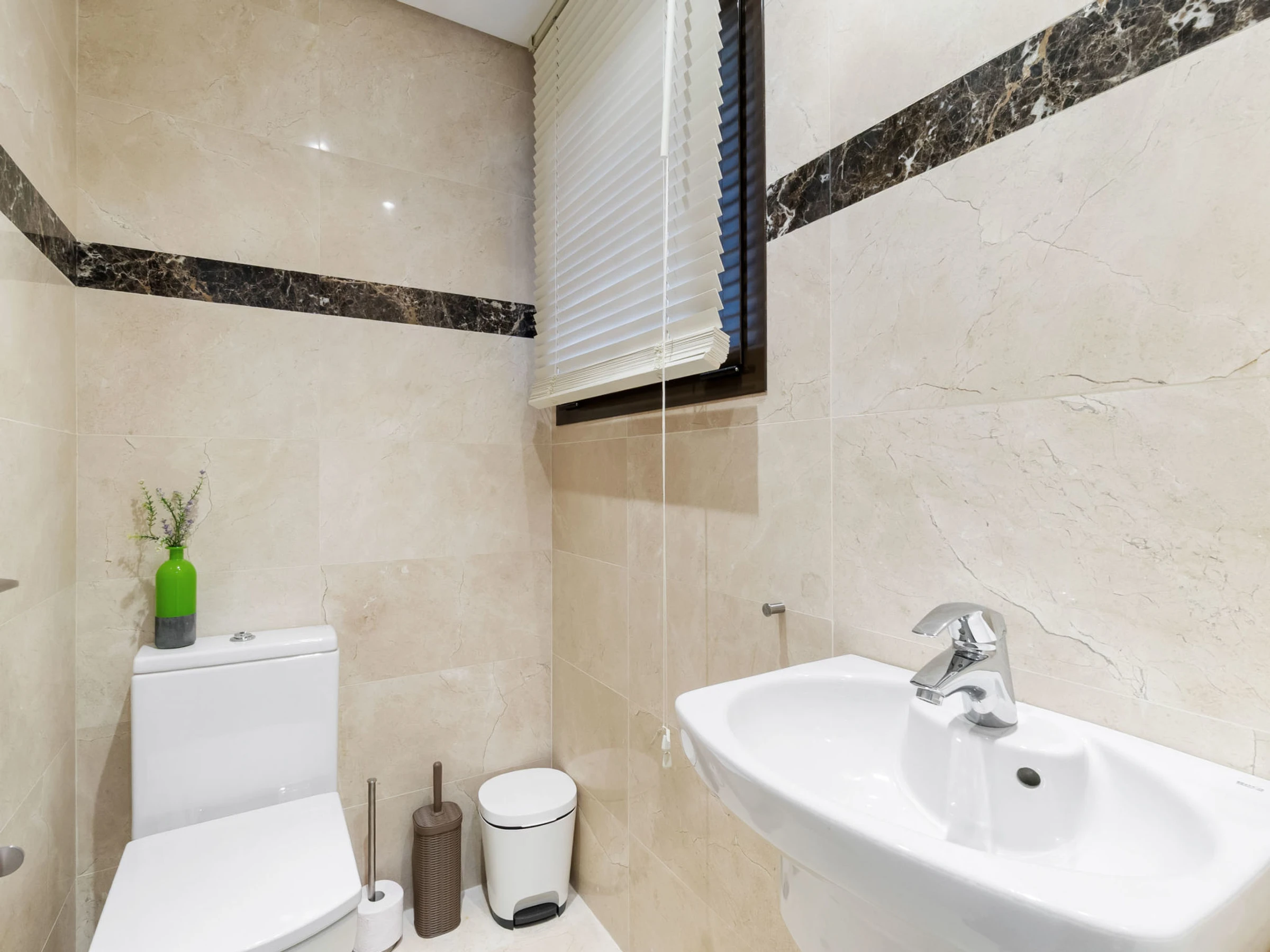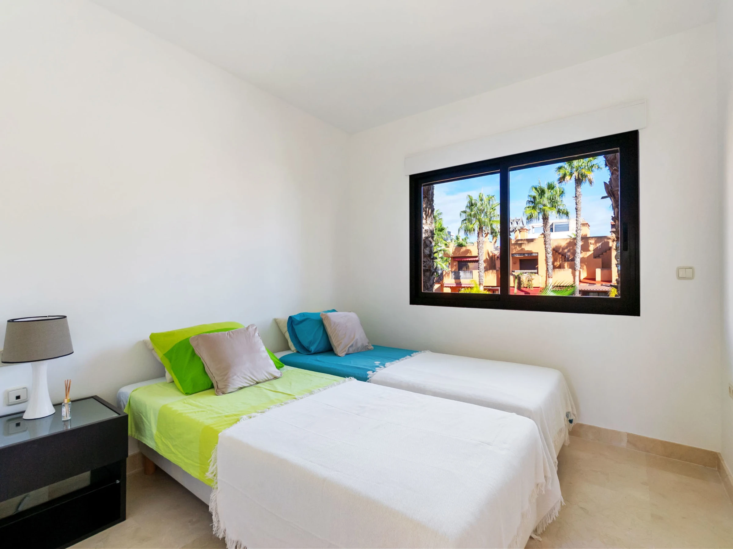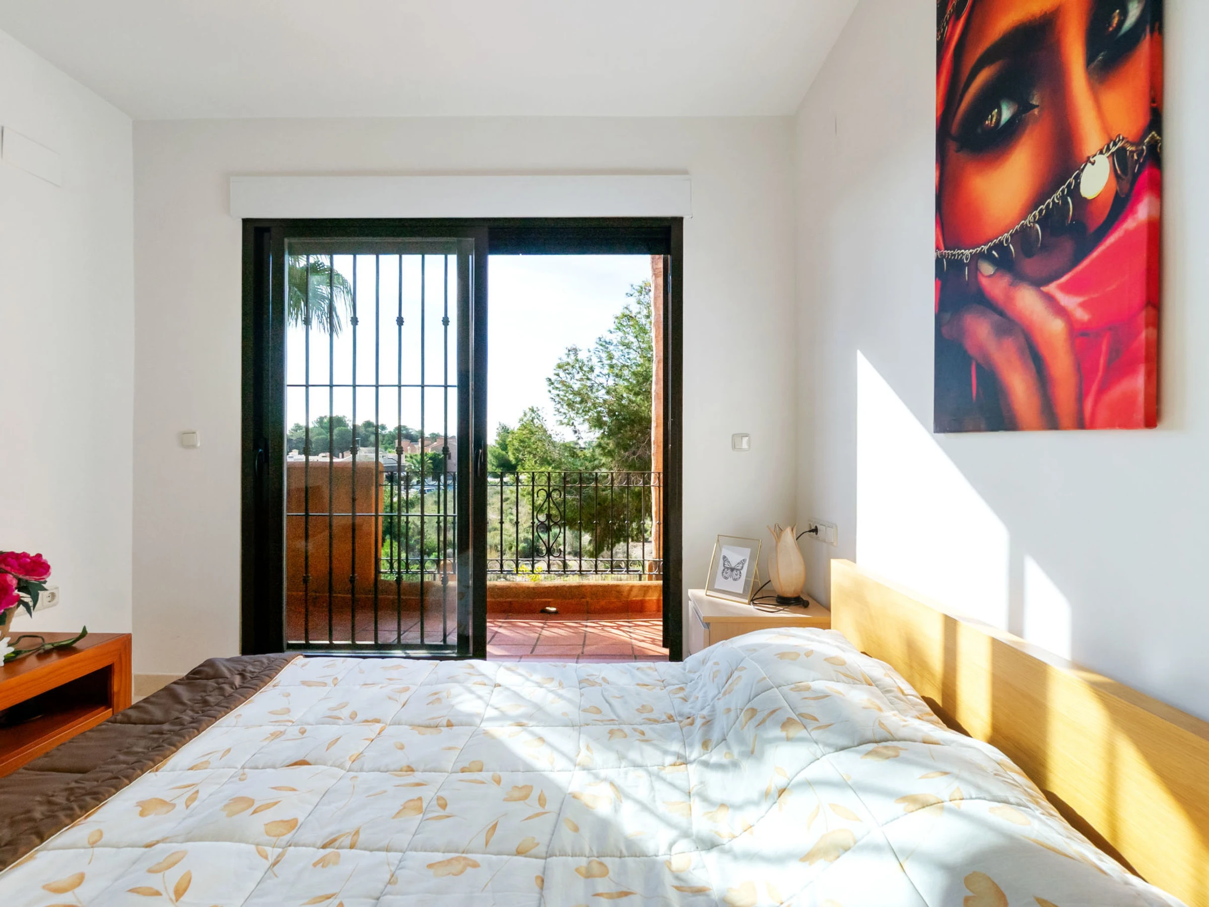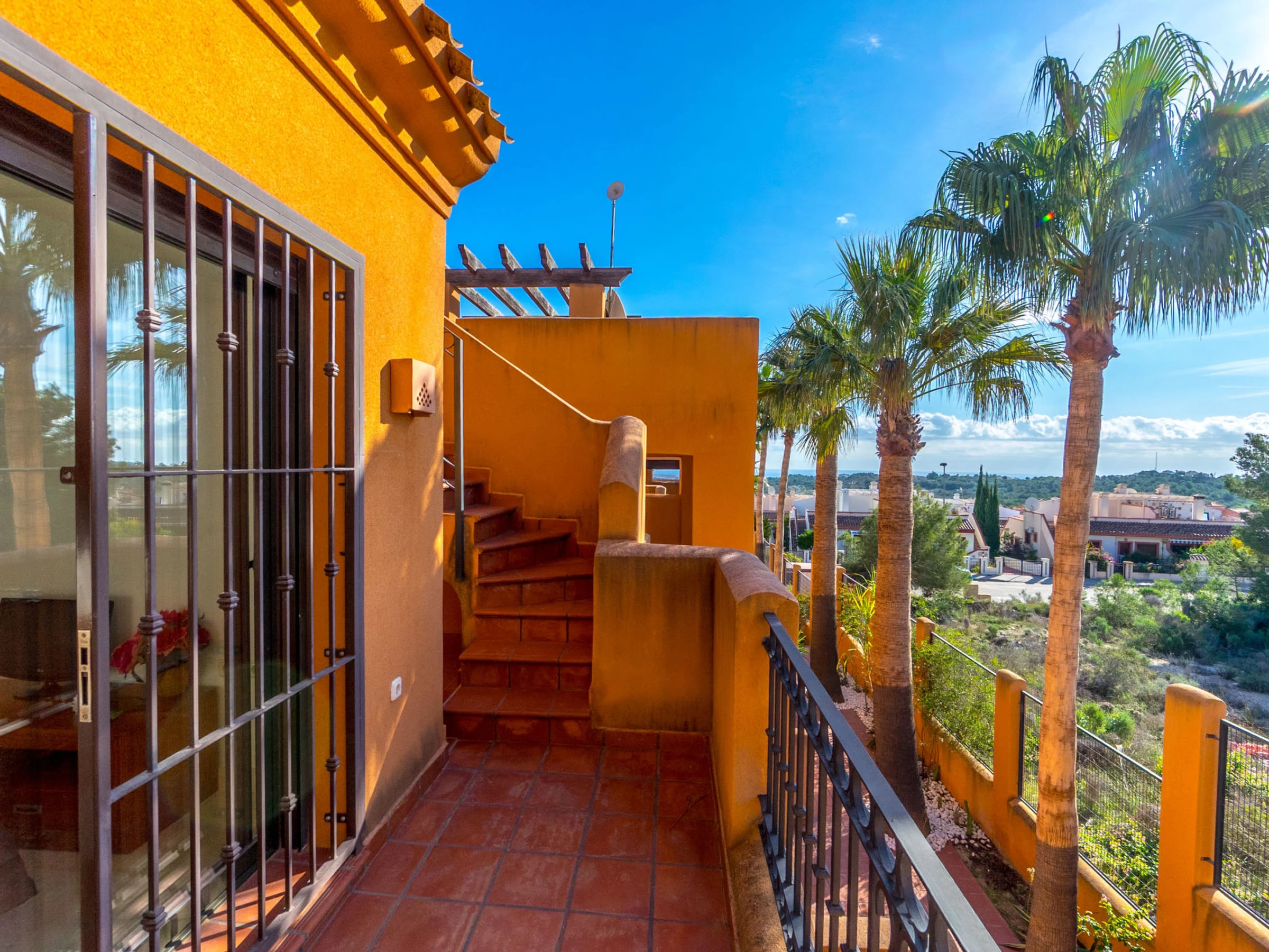 Beautiful terraced house "Cerro del Sol 6", 2 storeys. 3 km from the centre of San Miguel de Salinas, 11 km from the centre of La Zenia, 11 km from the centre of Orihuela Costa, in a quiet, sunny position residential area (villas), traffic calmed area, 11 km from the sea, 11 km from the beach. For shared use: property (fenced), lawn for sunbathing, beautiful garden to relax, swimming pool (17 x 7 m, seasonal availability: [hidden] - [hidden] Outdoor shower. In the house: roof terrace. Grocery 3 km, supermarket 3 km, restaurant, café 850 m, bus stop 3 km, sandy beach "Playa Flamenca" 11 km. Golf course (12 hole) 7 km. The owner does not accept any youth groups.