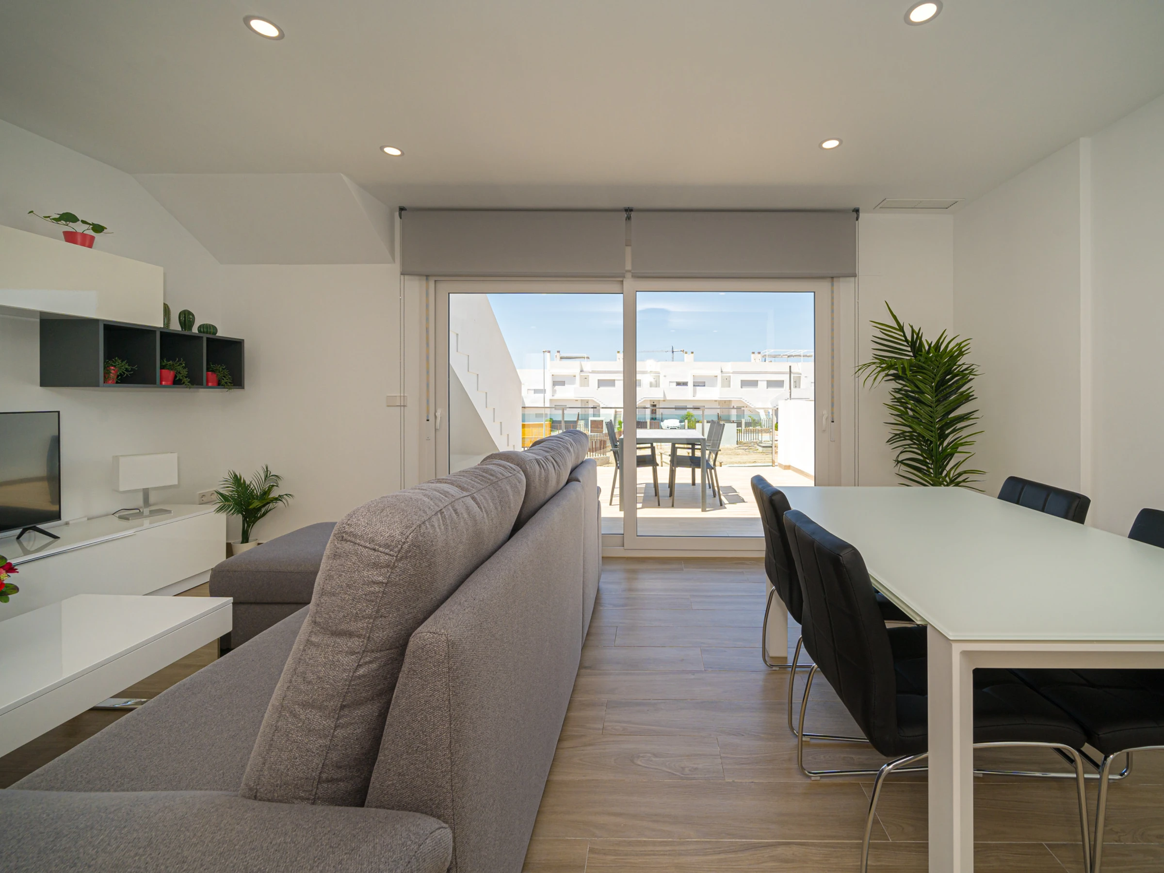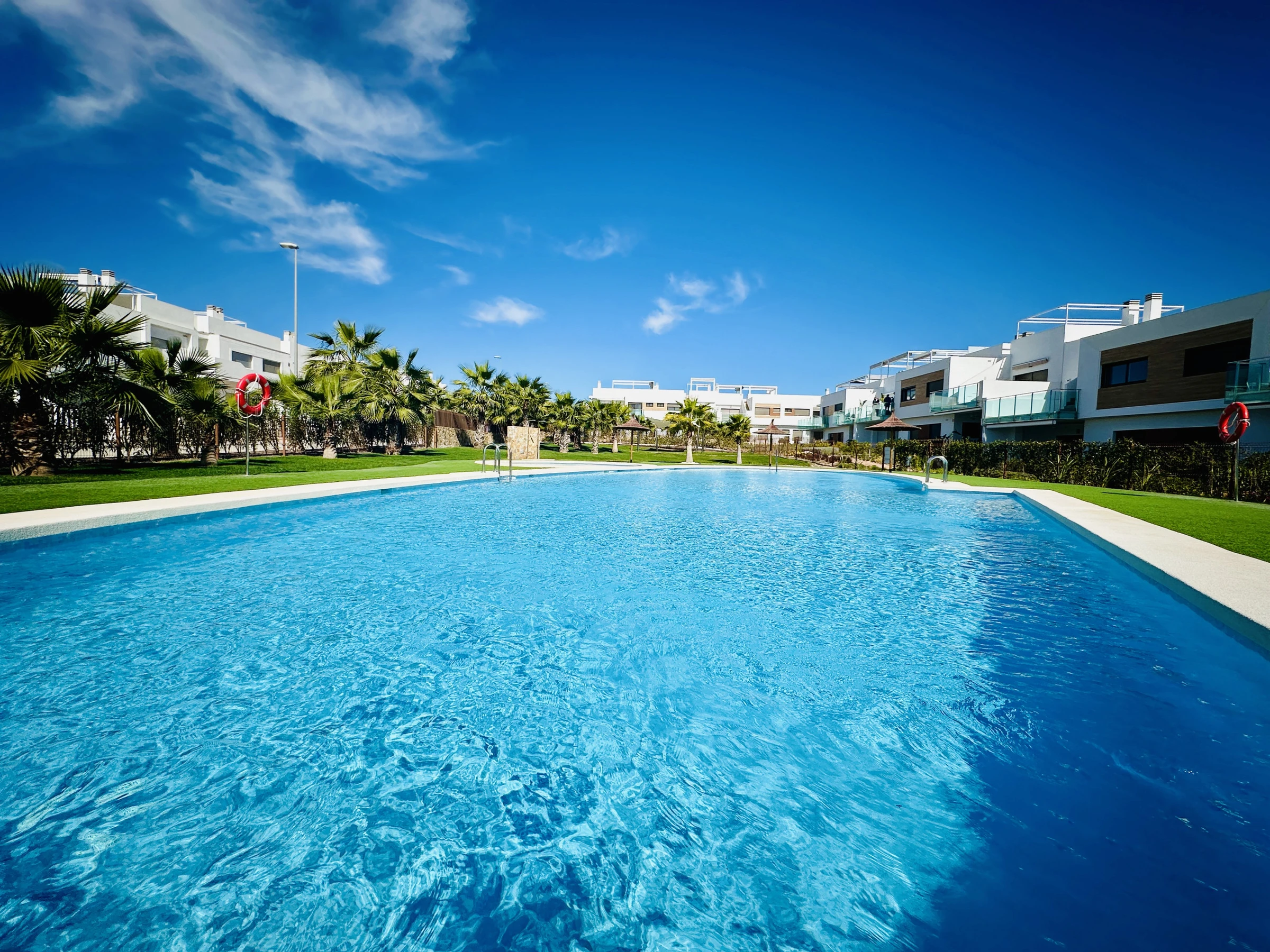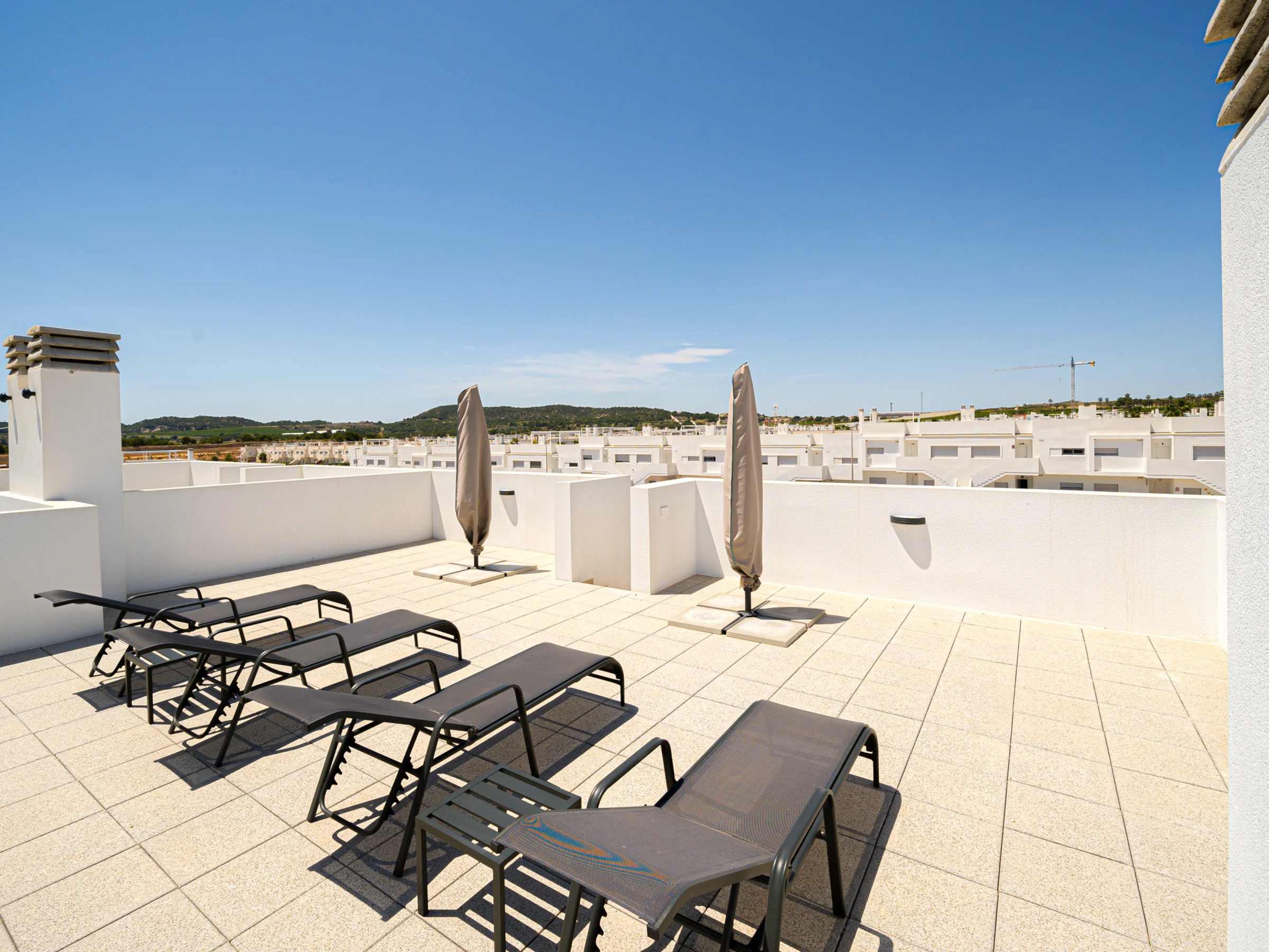 The accommodation is equipped with the following items: garden furniture, 80 m² terrace, washing machine, iron, internet (Wi-Fi), balcony, central heating, air conditioning throughout the house, communal swimming pool, open-air parking the same building, 1 TV, tv satellite (Languages: Spanish).