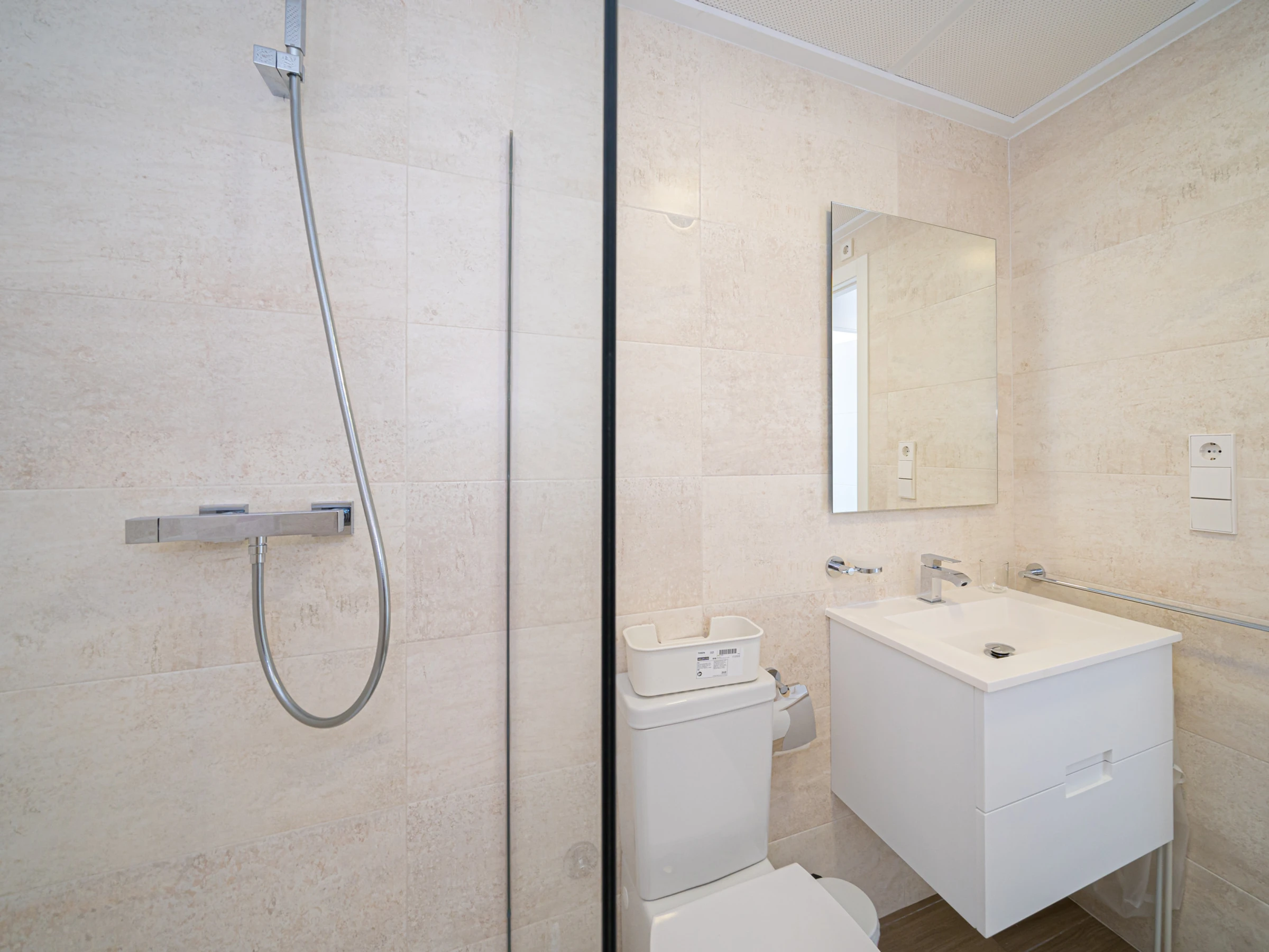 The apartment is tastefully-furnished, is a new build, and is 90 m².