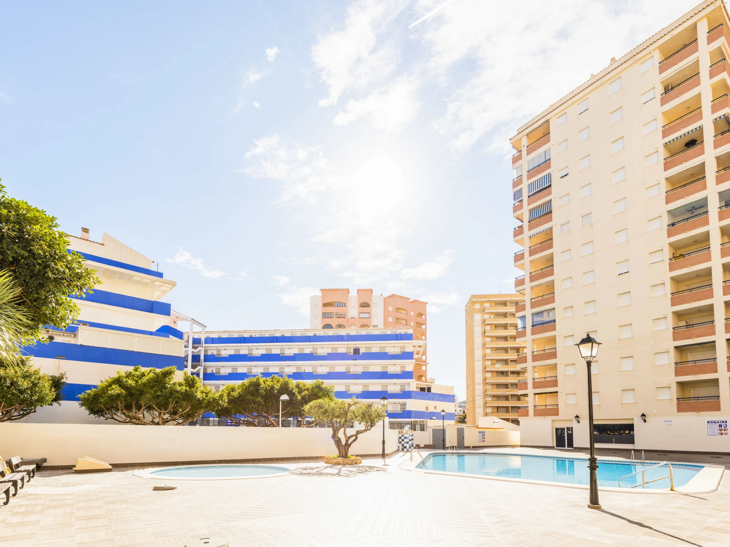 Apartment block "Bonaire IV - La Concha". In the resort 500 m from the centre of Oropesa del Mar, in a central, sunny position, 300 m from the sea, 300 m from the beach. For shared use: swimming pool (8 x 15 m, depth 70 - 240 cm, seasonal availability: [hidden] - [hidden] Children's pool, children's playground. In the house: lift. Grocery, restaurant, bar, café 100 m, bus stop 50 m, railway station 500 m, sandy beach "La Concha". Groups of teenagers on request only. Neighbourhood highly sensitive to noise. Quietness and good behaviour expected.