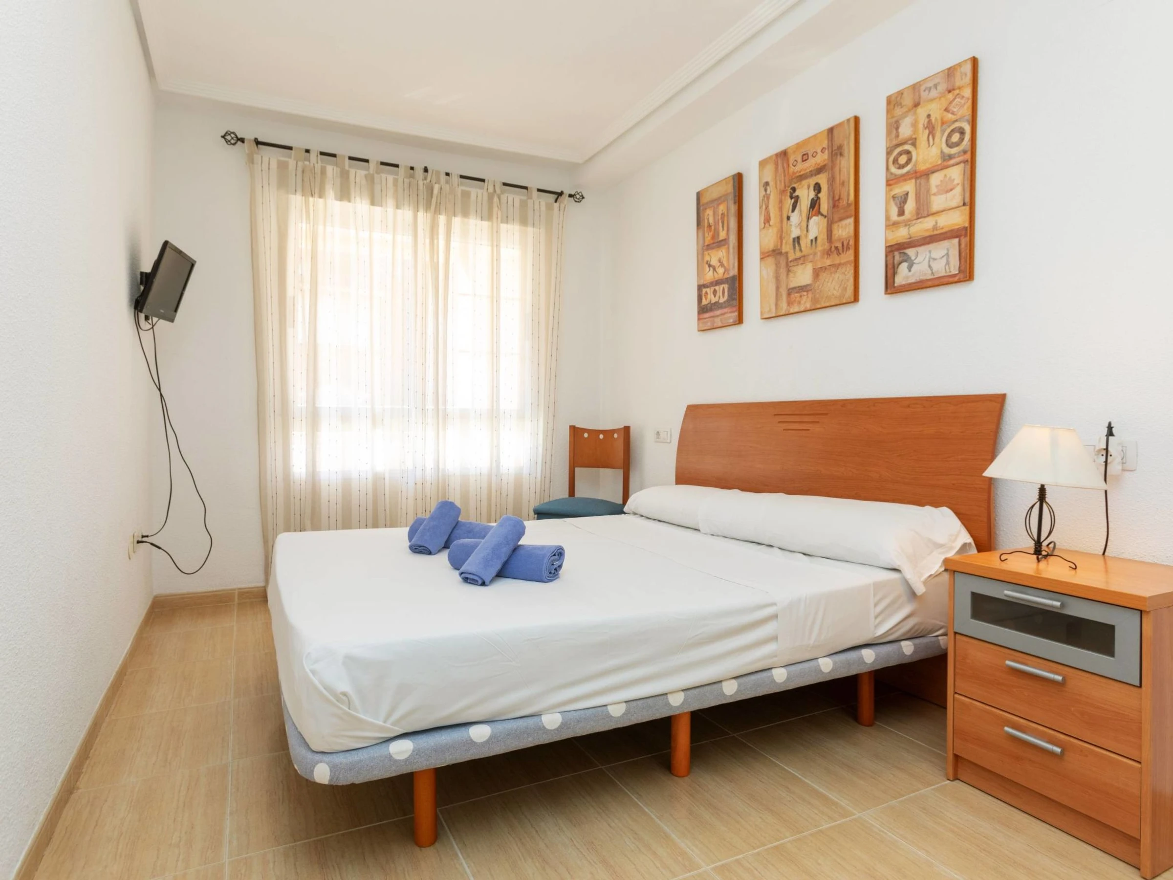 "Vila De Oropesa IV", 3-room apartment 64 m2 on 1st floor. Object suitable for 4 adults + 1 child. Practical and comfortable furnishings: living/dining room with 1 sofabed, dining table, digital TV and flat screen. Exit to the terrace. 1 room with 1 pull-out bed (2 x 90 cm, length 190 cm). 1 room with 1 french bed (150 cm, length 190 cm). Kitchen (oven, 4 ceramic glass hob hotplates, toaster, microwave, freezer, electric coffee machine). Shower/bidet/WC. Air-conditioning, forced-air heating. Natural stone floors. Large terrace. Terrace furniture, deck chairs (2). View of the resort. Facilities: washing machine, iron, hair dryer. Internet (WiFi, free). Parking space n 11 (roofed). Suitable for families. 1 small pet/ dog allowed. [hidden] // Reg. Nr.: ESFCTU00001202600025922900000000000000VUT-[hidden]-CS6