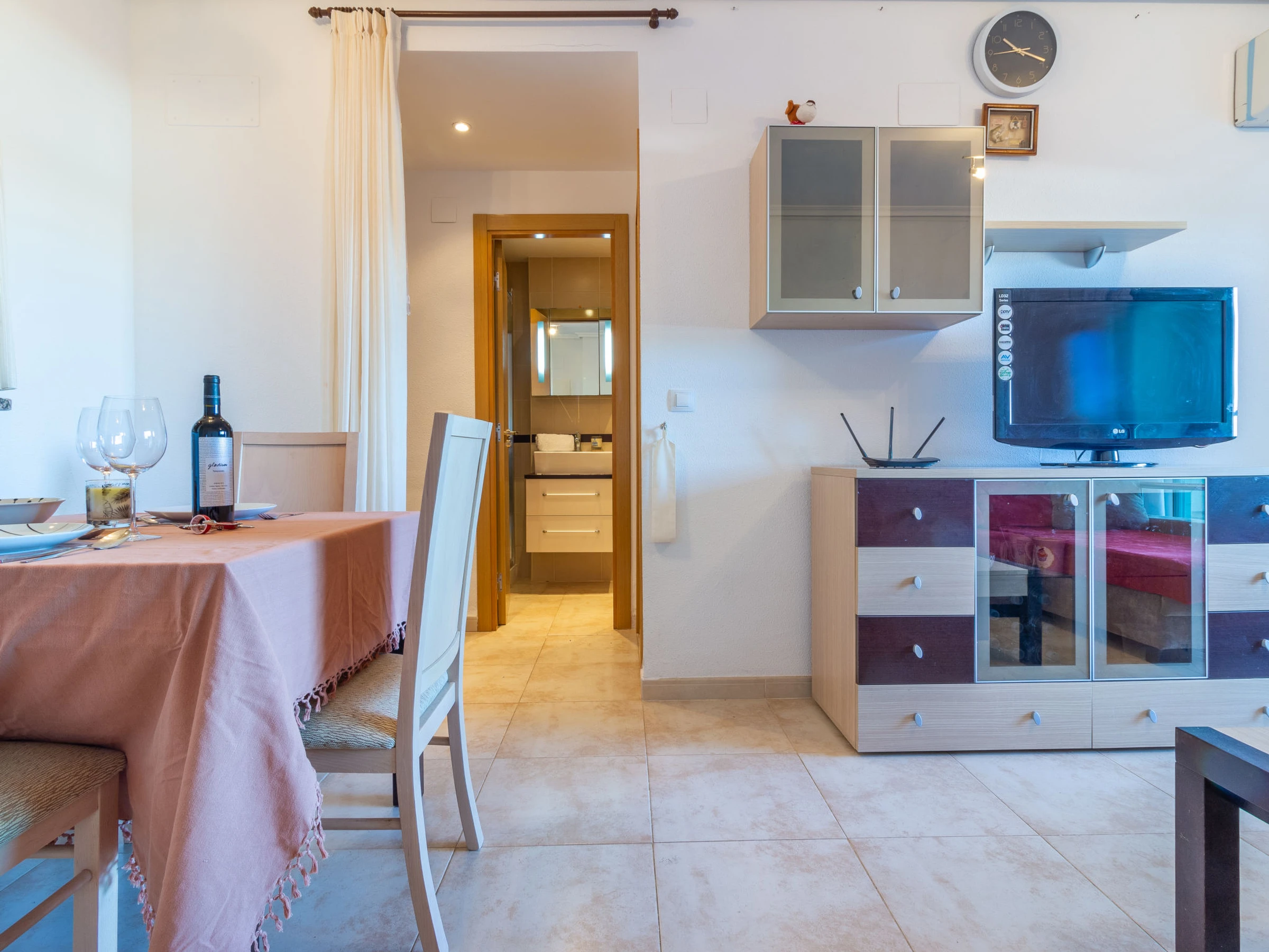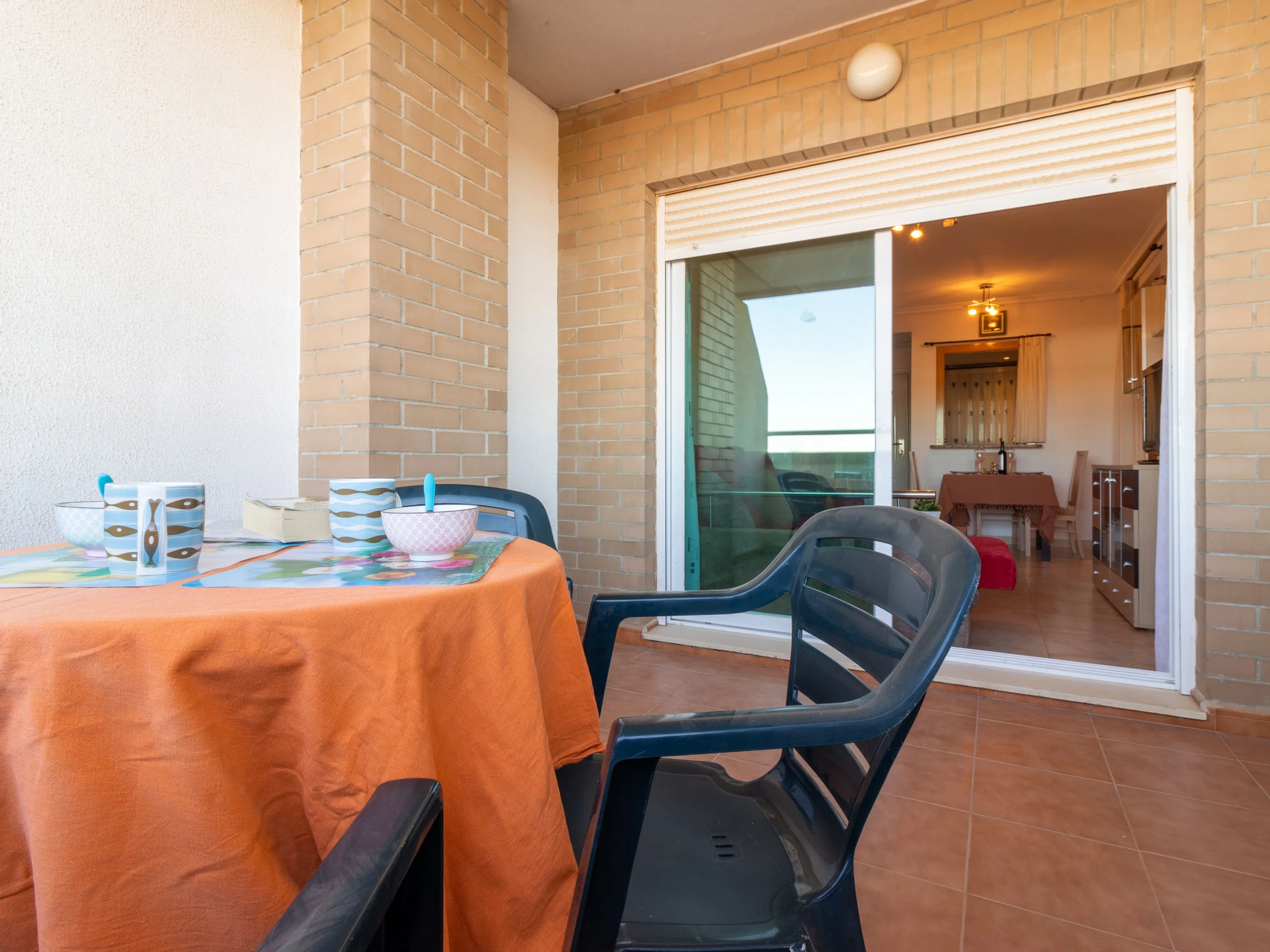"Jardines del Mar III - Marina d'Or", 3-room apartment 50 m2 on 1st floor. Practical furnishings: living/dining room with digital TV, flat screen, air conditioning and forced-air heating. Exit to the terrace. 1 room with 1 french bed (135 cm, length 190 cm). 1 room with 2 beds (90 cm, length 190 cm). Kitchen (oven, dishwasher, 4 ceramic glass hob hotplates, toaster, kettle, microwave, freezer). Shower/bidet/WC. Heating not available in all rooms. Terrace 12 m2. Terrace furniture. Side view of the sea. Facilities: washing machine, iron, children's high chair, baby cot for up to 2 year olds. Internet (WiFi, free). Parking space n 51 (roofed) at the house. Please note: suitable for families. Non-smokers only. Maximum 1 pet/ dog allowed. [hidden] // Reg. Nr.: ESFCTU00001202600067023900000000000000000[hidden]3