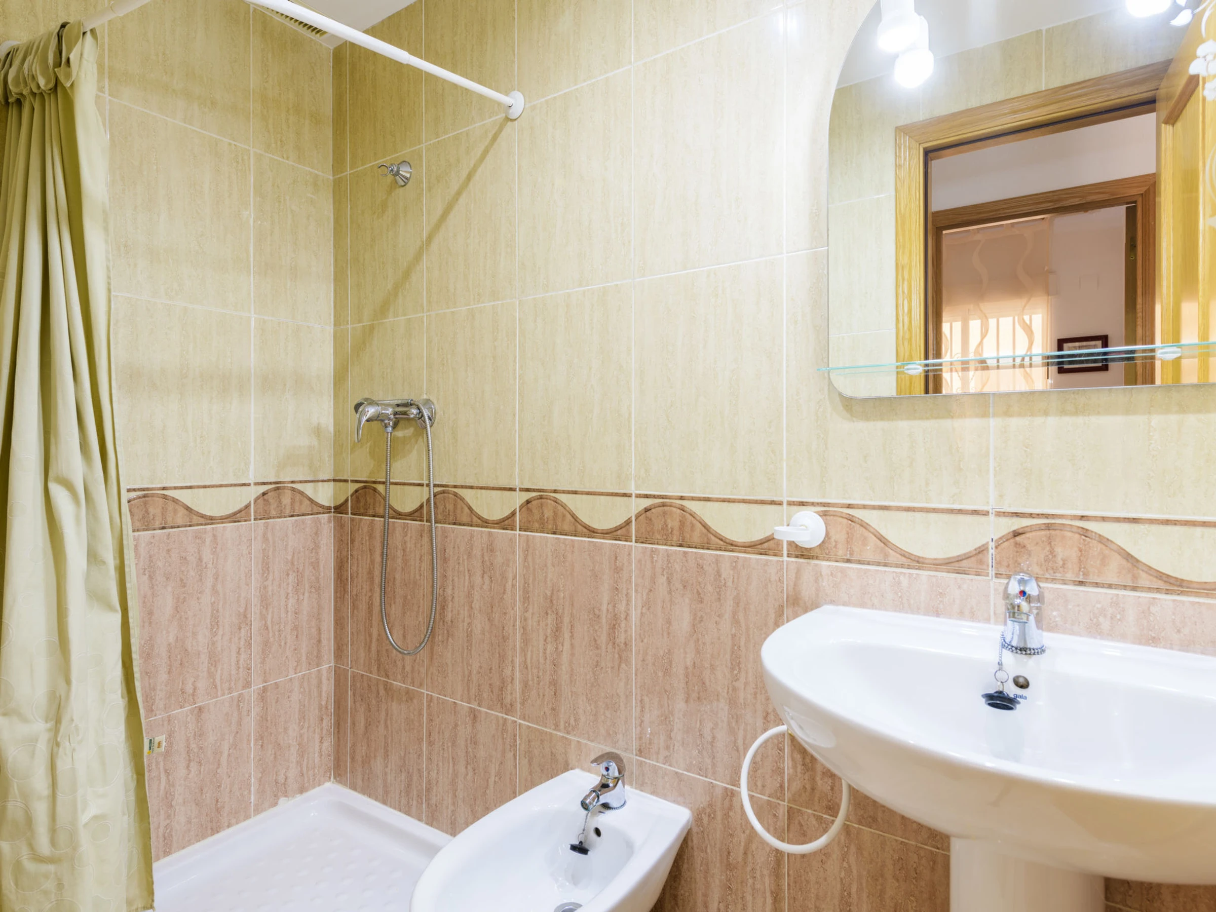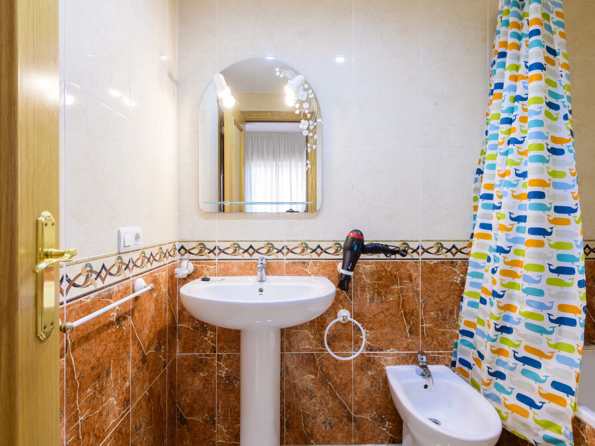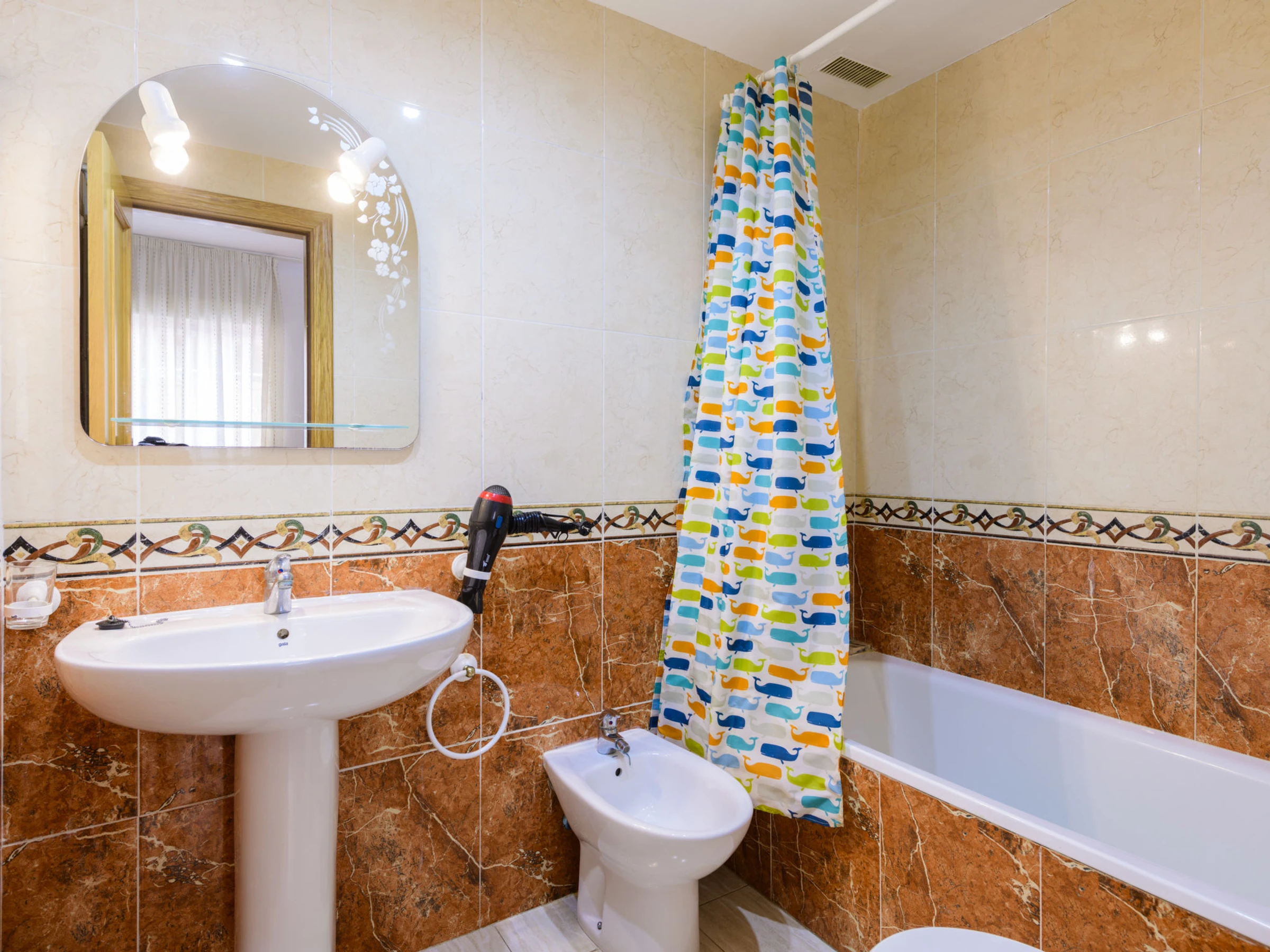 "Costa Marina II - Primera linea", 3-room apartment 60 m2 on 1st floor. Practical and comfortable furnishings: living/dining room with dining table, digital TV, flat screen, air conditioning and forced-air heating. Exit to the terrace. 1 room with 1 french bed (135 cm, length 190 cm). 1 room with 2 beds (90 cm, length 190 cm). Kitchen (3 hot plates, oven, toaster, microwave, freezer, electric coffee machine). Bath/bidet/WC, shower/bidet/WC. Electric heating. Heating not available in all rooms. Terrace. Terrace furniture. Facilities: washing machine, iron, hair dryer. Internet (WiFi, free). Parking space n 9 at the house. Please note: non-smokers only. [hidden] // Reg. Nr.: ESFCTU00001202600038909400000000000000000[hidden]8