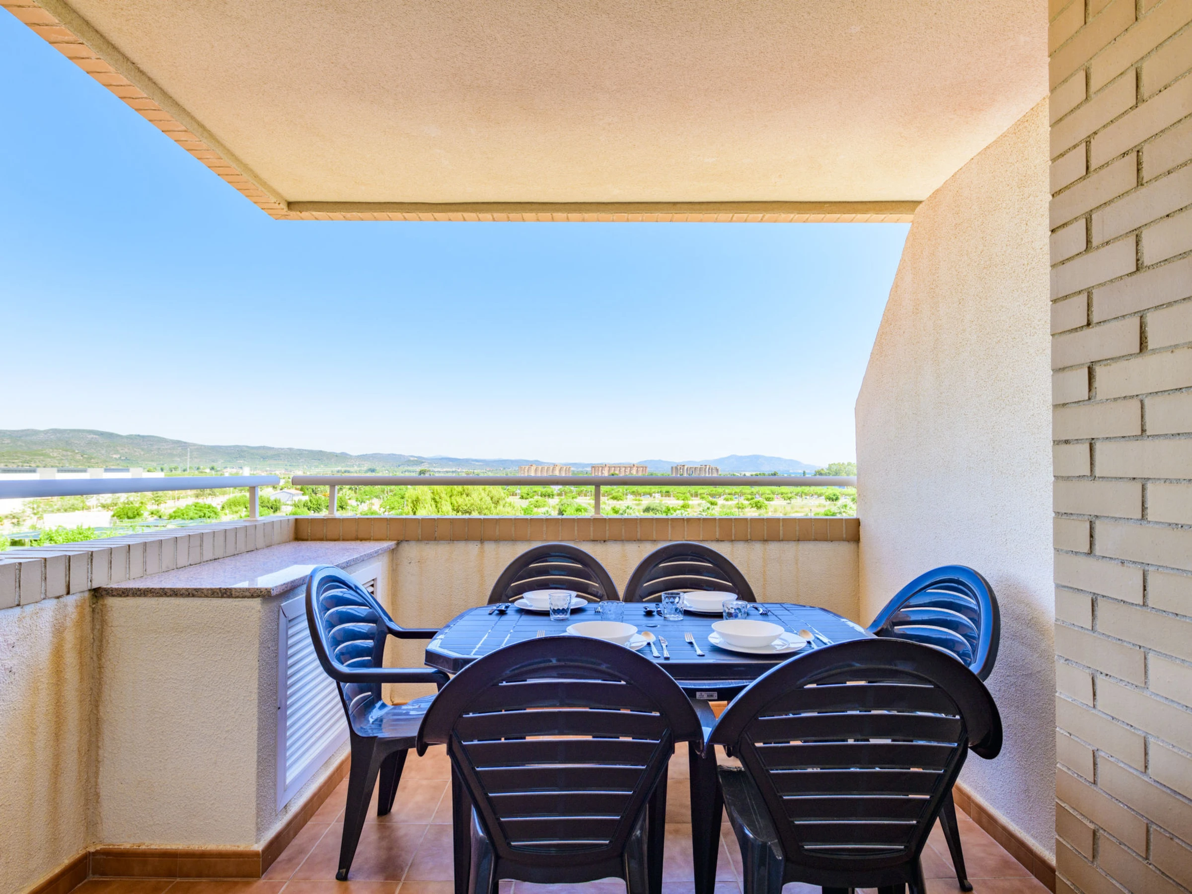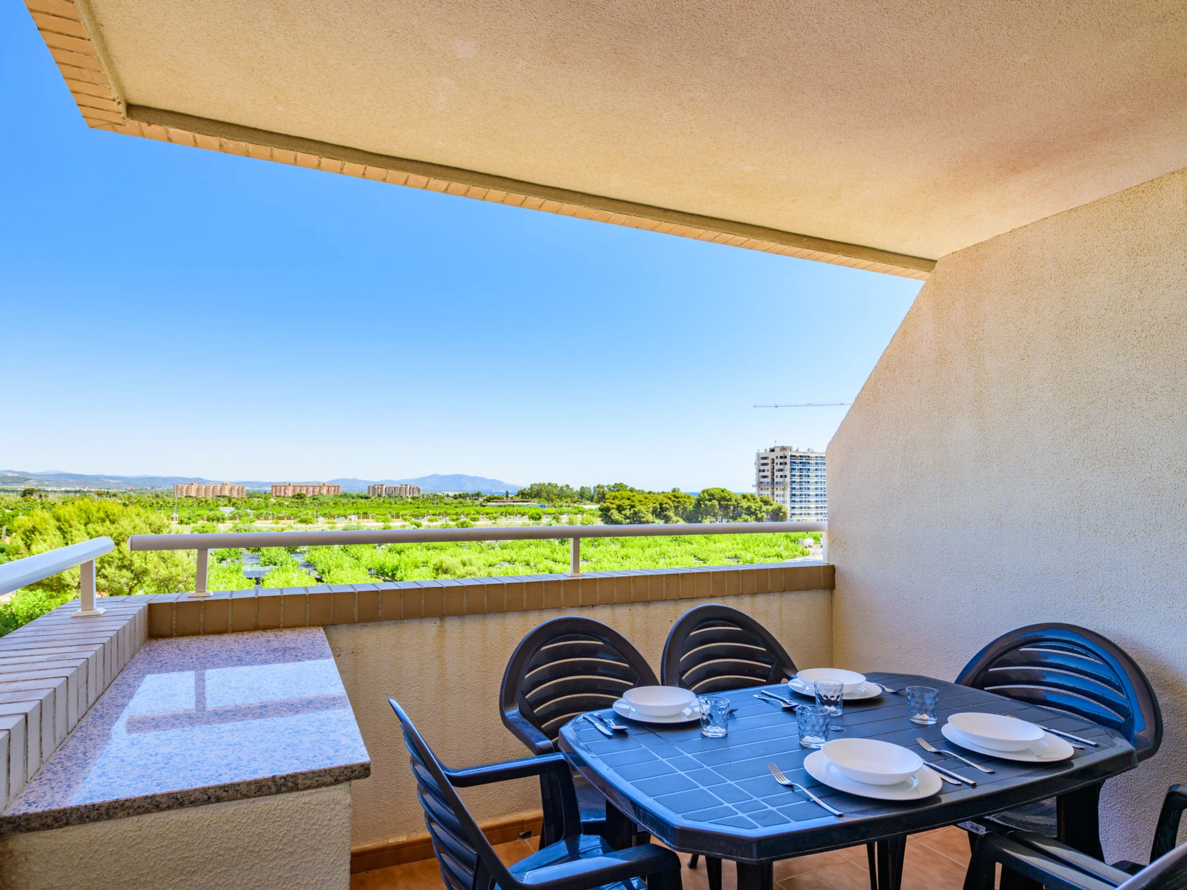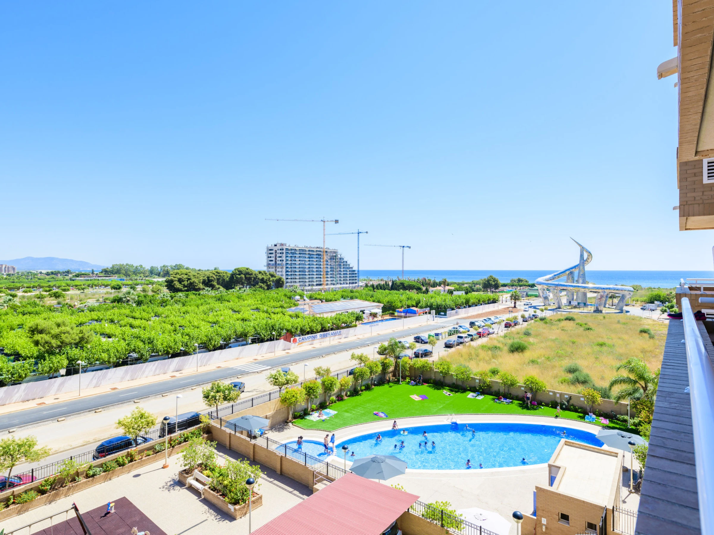 "Jardines del Mar III - Marina d'Or", 3-room apartment 50 m2 on 4th floor. Practical and comfortable furnishings: living/dining room with dining table, digital TV, flat screen, air conditioning and forced-air heating. Exit to the terrace. 1 room with 1 french bed (135 cm, length 190 cm). 1 room with 2 beds (90 cm, length 190 cm). Kitchen (oven, 4 ceramic glass hob hotplates, toaster, kettle, microwave, freezer). Shower/bidet/WC. Heating not available in all rooms. Terrace 12 m2. Terrace furniture. Side view of the sea. Facilities: washing machine, iron, baby cot for up to 2 year olds, hair dryer. Parking (roofed) at the house. Please note: non-smokers only. Maximum 1 pet/ dog allowed. Smart TV. [hidden] // Reg. Nr.: ESFCTU00001202600067120500000000000000000[hidden]6