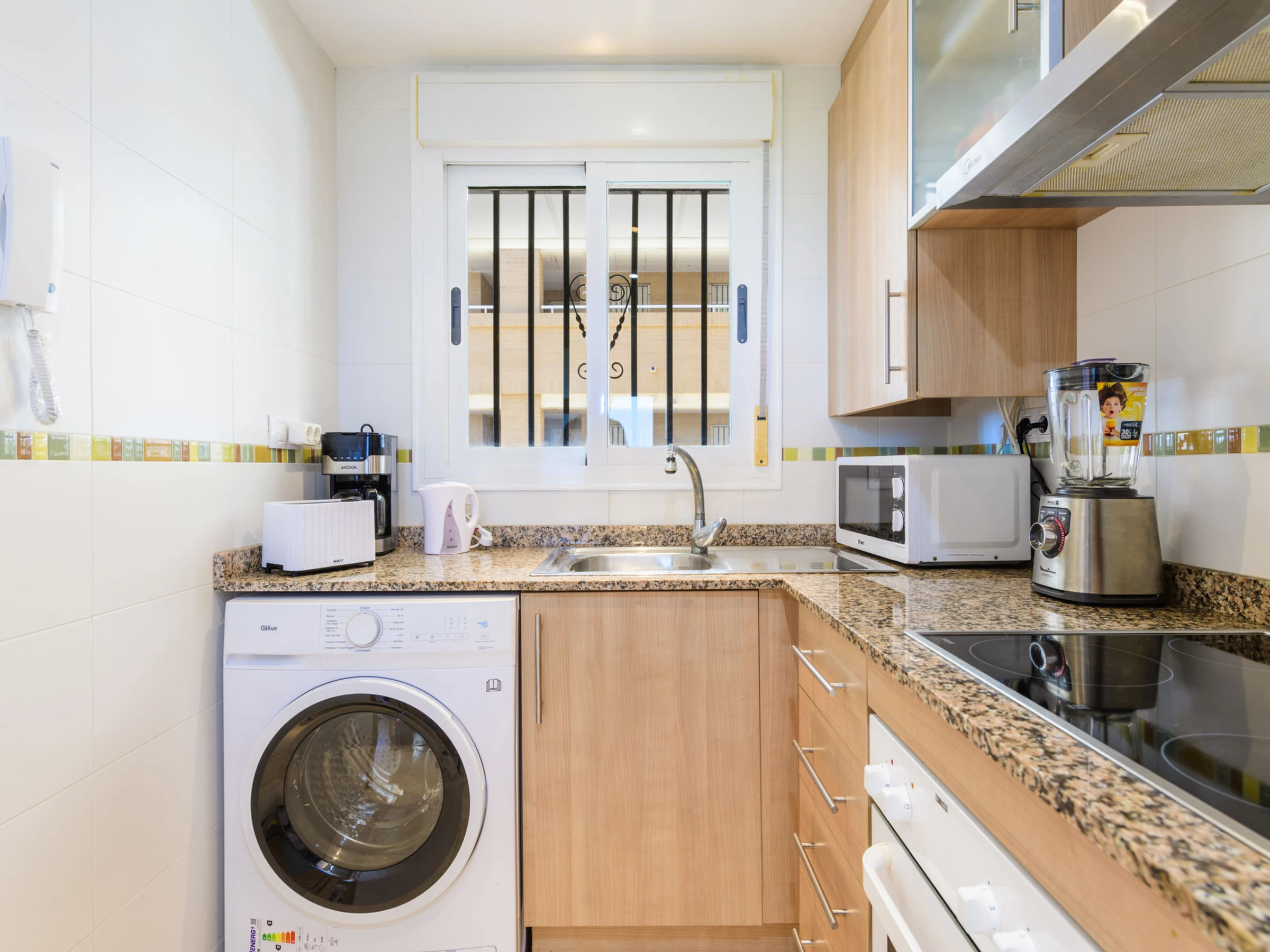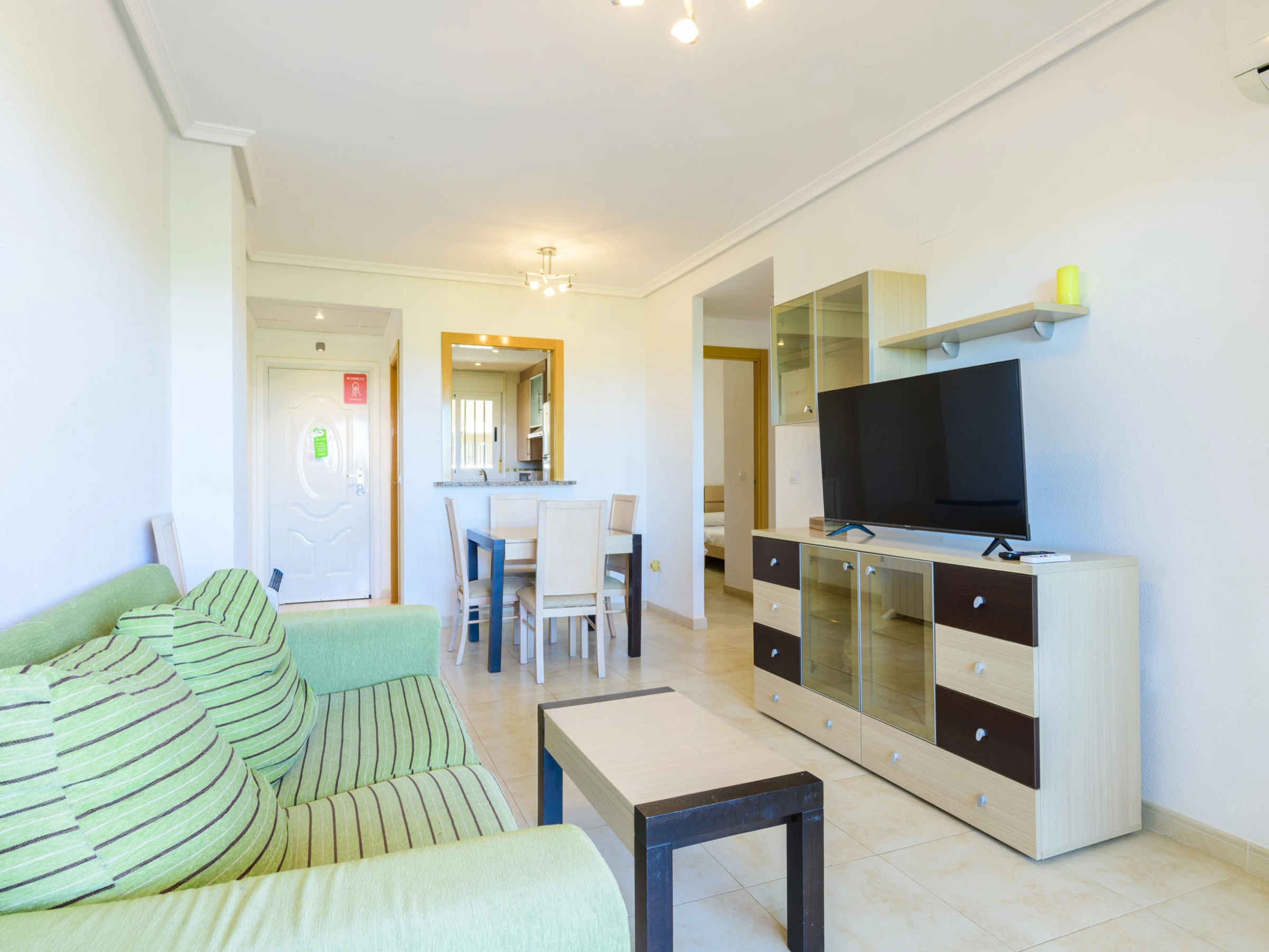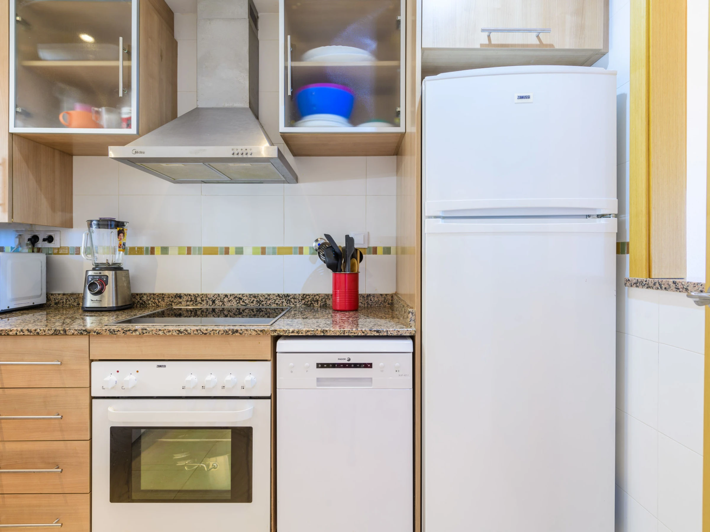 "Jardines del Mar III - Marina d'Or", 3-room apartment 50 m2 on 4th floor. Practical and comfortable furnishings: living/dining room with dining table, digital TV, flat screen, air conditioning and forced-air heating. Exit to the terrace. 1 room with 1 french bed (135 cm, length 190 cm). 1 room with 2 beds (90 cm, length 190 cm). Kitchen (oven, 4 ceramic glass hob hotplates, toaster, kettle, microwave, freezer). Shower/bidet/WC. Heating not available in all rooms. Terrace 12 m2. Terrace furniture. Side view of the sea. Facilities: washing machine, iron, baby cot for up to 2 year olds, hair dryer. Parking (roofed) at the house. Please note: non-smokers only. Maximum 1 pet/ dog allowed. Smart TV. [hidden] // Reg. Nr.: ESFCTU00001202600067120500000000000000000[hidden]6