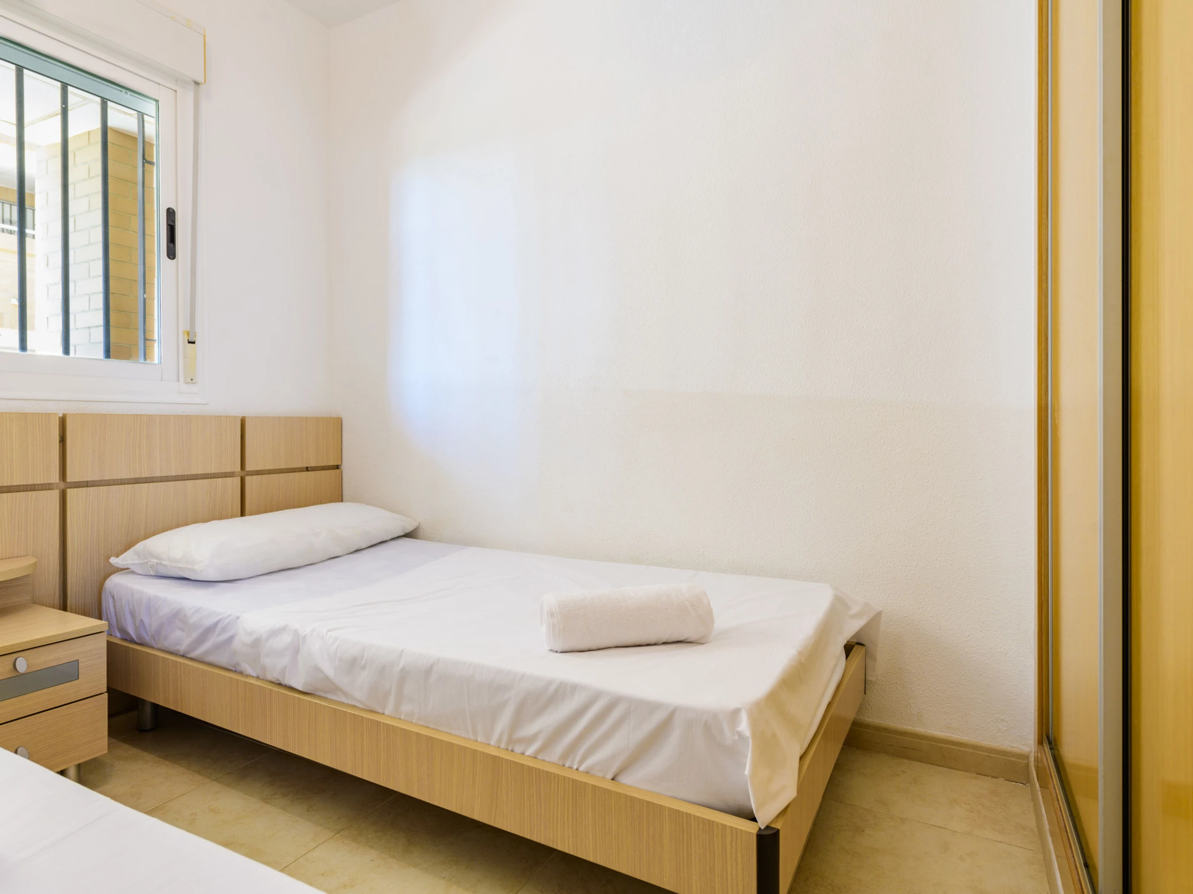Apartment block "Jardines del Mar III". On the outskirts, 3.5 km from the centre of Oropesa del Mar, in the district Marina D´or, in a busy, sunny position, 300 m from the sea, 300 m from the beach, on a main road. For shared use: swimming pool round (20 x 10 m, depth 70 - 270 cm, seasonal availability: [hidden] - [hidden] Children's pool, outdoor shower, children's playground. In the house: lift. Supermarket 200 m, shopping centre 400 m, restaurant, bar, café 200 m, bus stop 1.2 km, railway station "Oropesa de Mar" 3 km, sandy beach 300 m. Sports harbour 6 km, golf course 22 km. Nearby attractions: Parque Acuatico 1 km. The owner does not accept any youth groups. Please note: motorway 900 m from the property. Main road 300 m from the property. Railway line 300 m from the property. Nightclub/disco 300 m from the property. Neighbourhood highly sensitive to noise. Quietness and good behaviour expected.