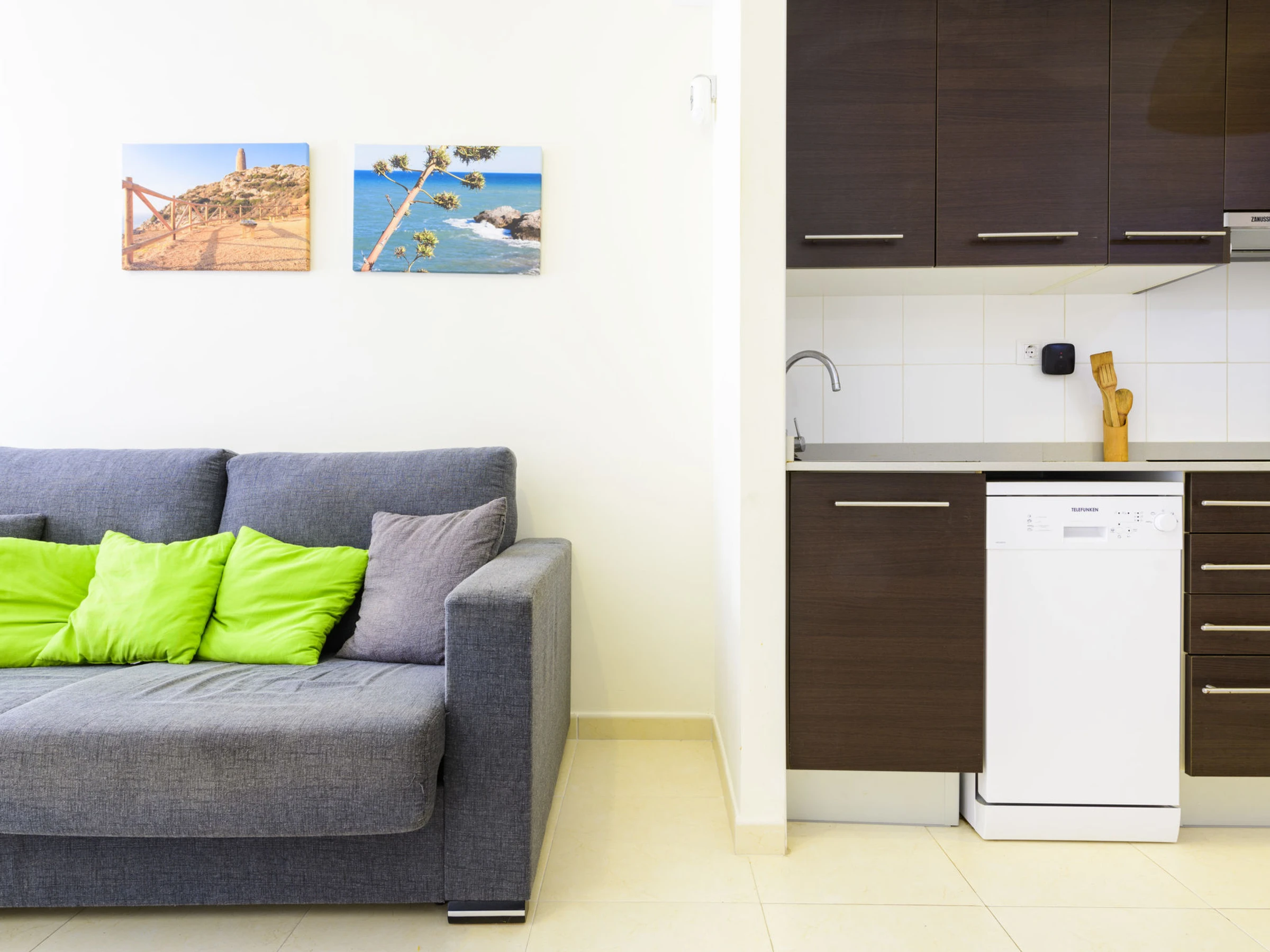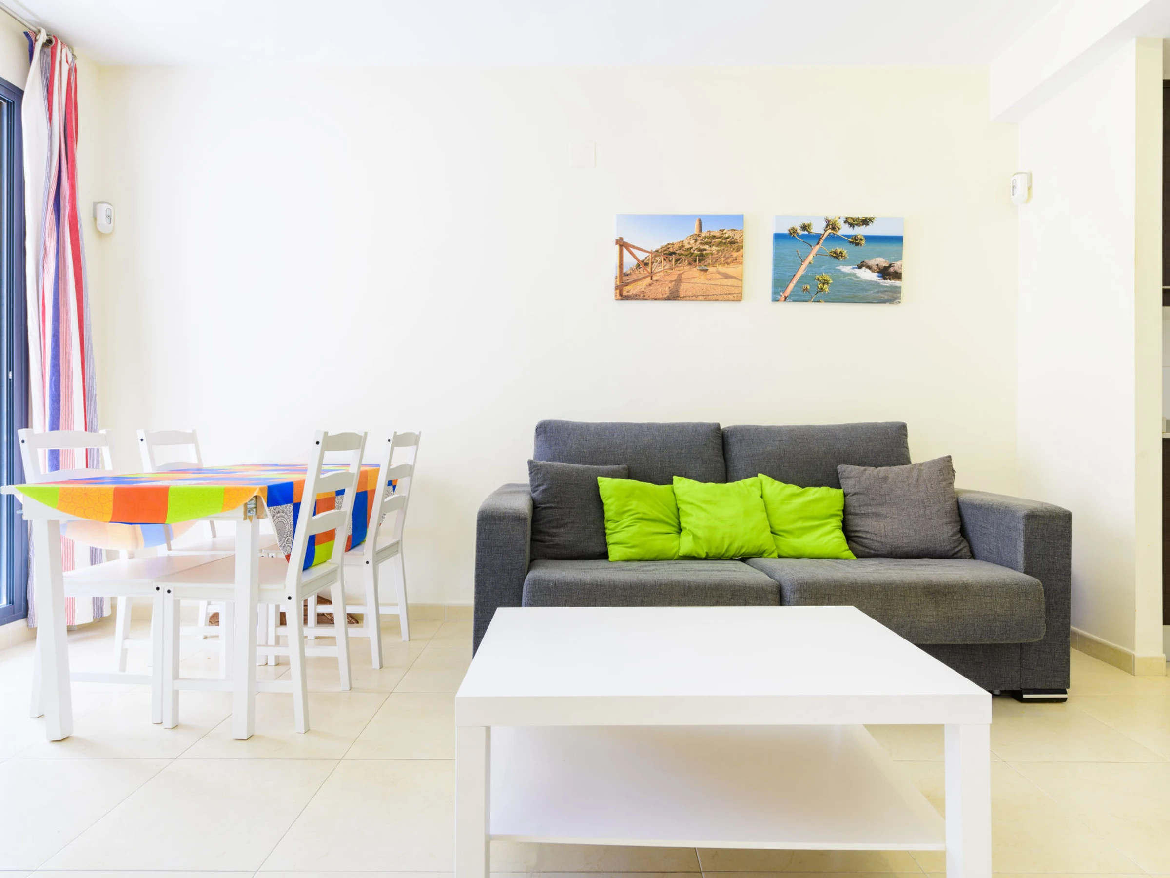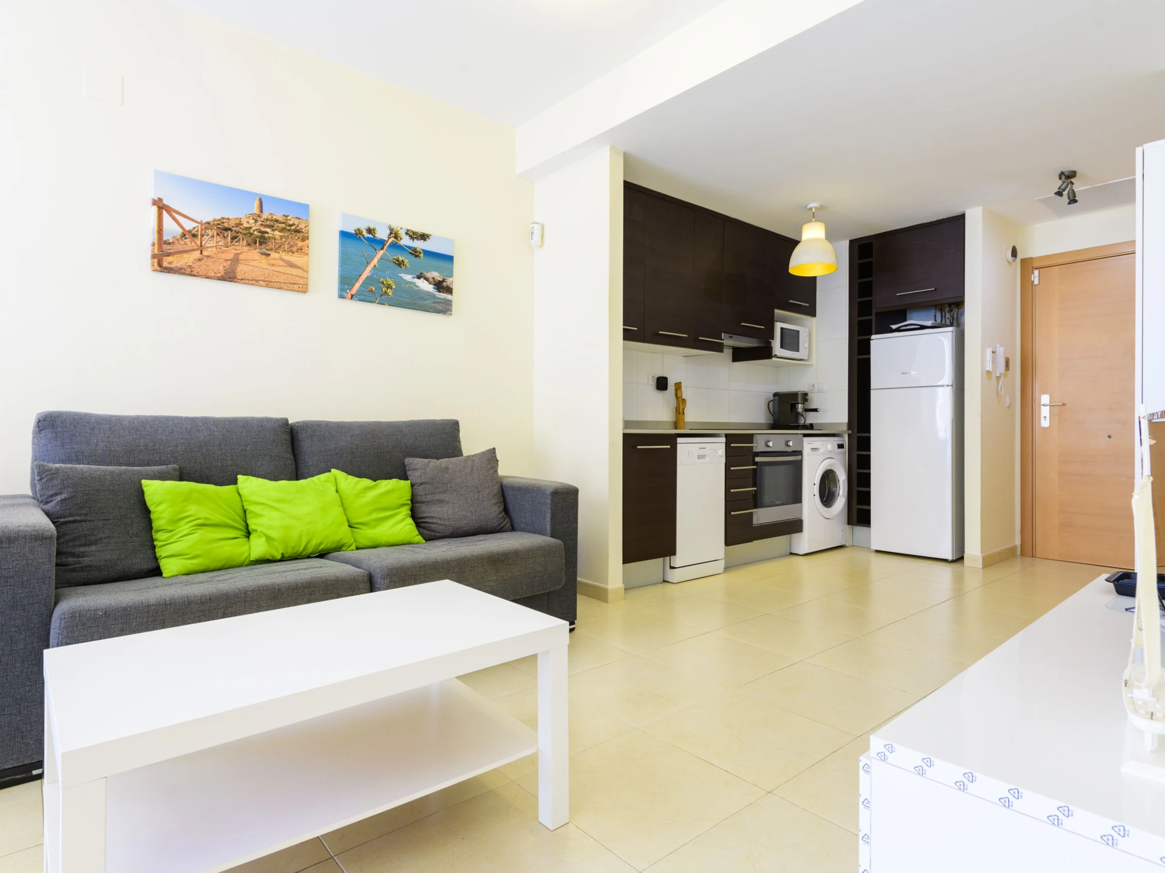 "El Balco", 2-room apartment 40 m2 on 2nd floor. Practical furnishings: living/dining room with 1 double sofabed. Exit to the balcony. 1 room with 1 french bed (135 cm, length 190 cm), shower/WC. Open kitchen (oven, dishwasher, 4 ceramic glass hob hotplates, toaster, kettle, microwave). Air-conditioning, forced-air heating, boiler (50 litres). Balcony. Balcony furniture. View of the mountains and the resort. Facilities: washing machine, iron, hair dryer. Internet (WiFi, free). [hidden] // Reg. Nr.: ESFCTU00001202600064135200000000000000000[hidden]6