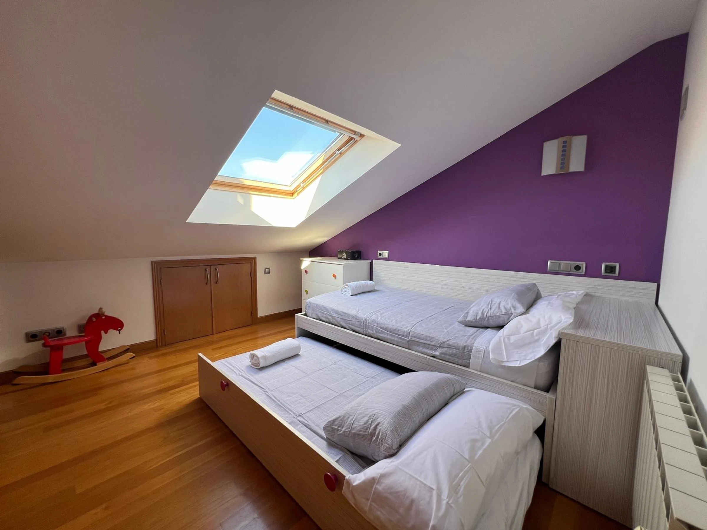 The apartment features 4 bedrooms designed to meet all your needs: a master bedroom with a 150 cm double bed and an en-suite bathroom with a whirlpool bathtub and a hairdryer; another bedroom with a 135 cm double bed; a third bedroom with a practical trundle bed; and a fourth with a single bed. Additionally, there are 2 extra bathrooms, both with showers.