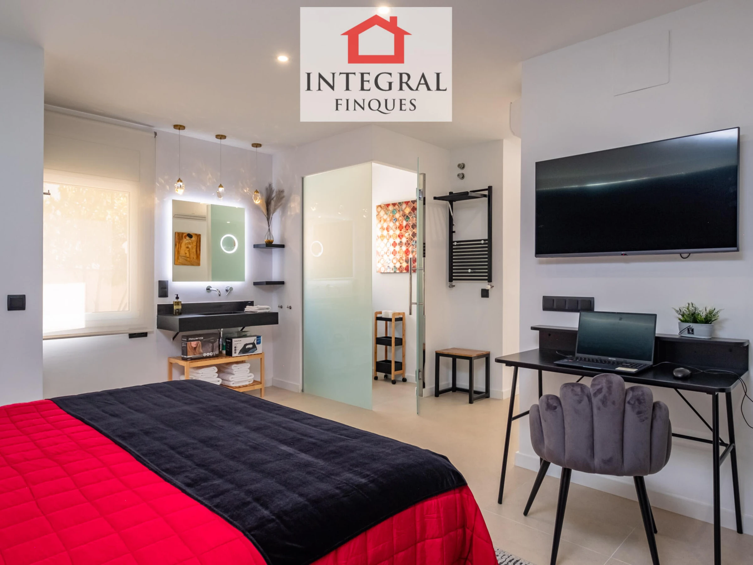 HUTG (049908). This elegant and stylish house is located just three minutes from Platja Gran de Palamós. It is an accommodation intended for the rest and well-being of the couple, it has an outdoor area with a private pool to enjoy some magical moments. The house is all on one floor, only access is the living room and dining room, together with the American kitchen; a very well decorated space and the wall fireplace that will make you feel at home. Next, we head to the en-suite double bedroom, it has a very practical open dressing room, a desk together with the TV, and finally a very modern open shower. From the living room you will have access to the private terrace, where you will find the private pool and a magnificent chill-out area. Finally, the apartment has hot-cold air conditioning, wifi and parking in a very nearby building.