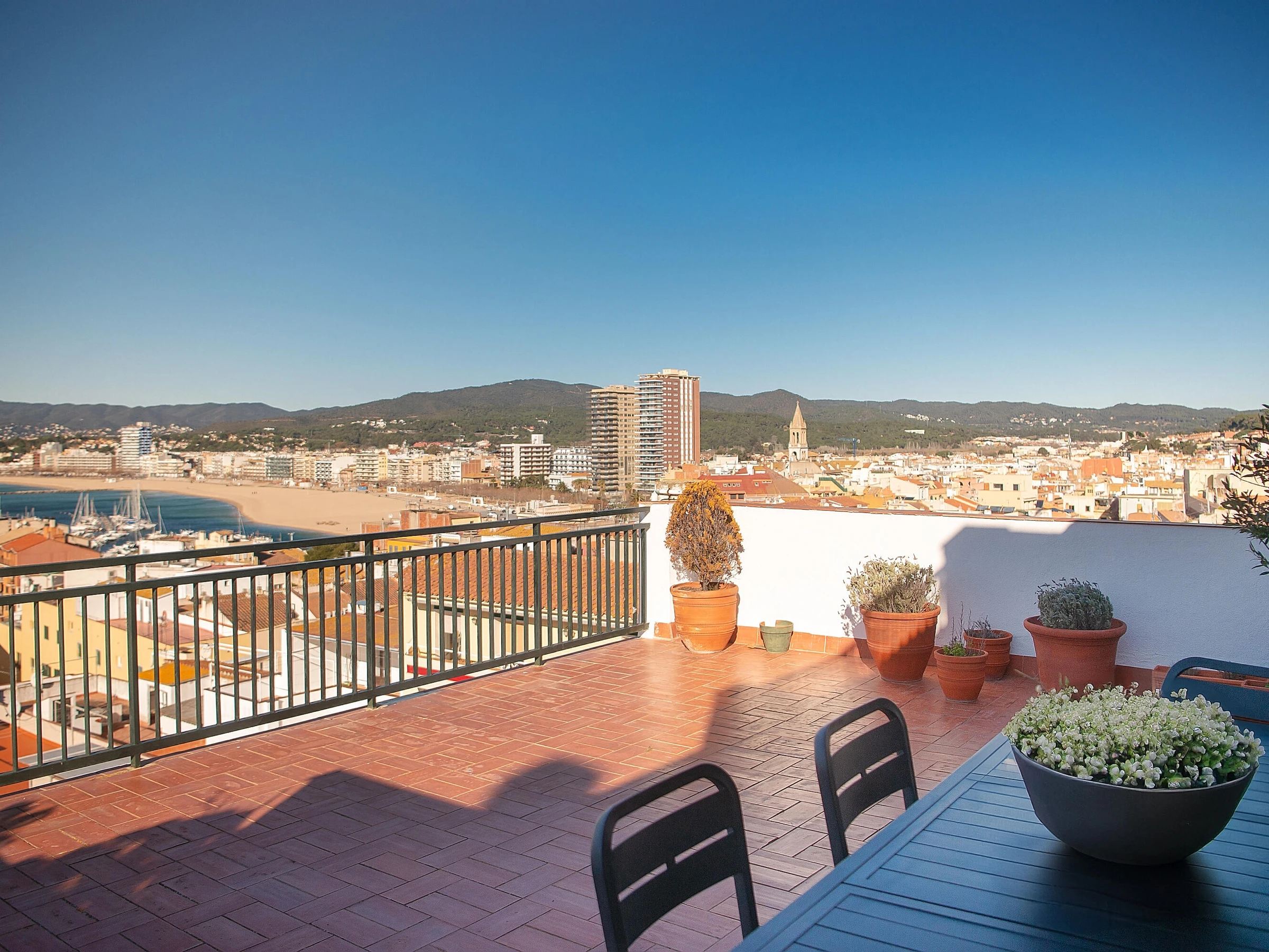 Enjoy an unforgettable vacation in this wonderful penthouse in Palamós, perfectly located just500 meters from the beach and 400 meters from the town center, offering the perfect combination of comfort, style, and a privileged location. The highlight of this apartment is itsspacious private terrace with stunning sea views, equipped with three loungers, making it the ideal spot to relax, sunbathe, enjoy an outdoor breakfast, or watch the magical sunsets over the Costa Brava. The apartment is designed for maximum comfort and features: * 3 very spacious double bedrooms, two with a double bed and one with two single beds, accommodating6 people. * Parking just 200 meters from the property, included in the rental, so you don’t have to worry about your car during your stay. * Wifi throughout the property, so you can stay connected at all times. * Air conditioning in the master bedroom and fans in the other bedrooms, ensuring a comfortable stay throughout the year. * A fully equipped kitchen, including a Nespresso coffee machine, toaster, kettle, dishwasher, refrigerator, pots, pans, cooking utensils, and much more. Additionally, the apartment includes awasher, iron, and hairdryer for your convenience. This penthouse, with elevator access, is perfect for families or groups looking to enjoy modern, cozy accommodation close to all the key points in Palamós. From here, you’ll have easy access to the beach, the historic center, restaurants, shops, and everything this charming town has to offer. Book now and make your stay in Palamós a unique and unforgettable experience, enjoying sea views that will stay with you forever. Property Rules * Check-in: from 4:00 PM to 9:30 PM. * Check-out: from 10:00 AM to 11:00 AM. * Not rented to groups under 25 years old. In case of an exception, a double deposit will be charged. * Parties are not allowed on the property. * Mandatory check-out cleaning. 80 euros * Security deposit. 300 euros * Optional bed linen and towels: 12 euros/person. * Pets: No. * 4o mini