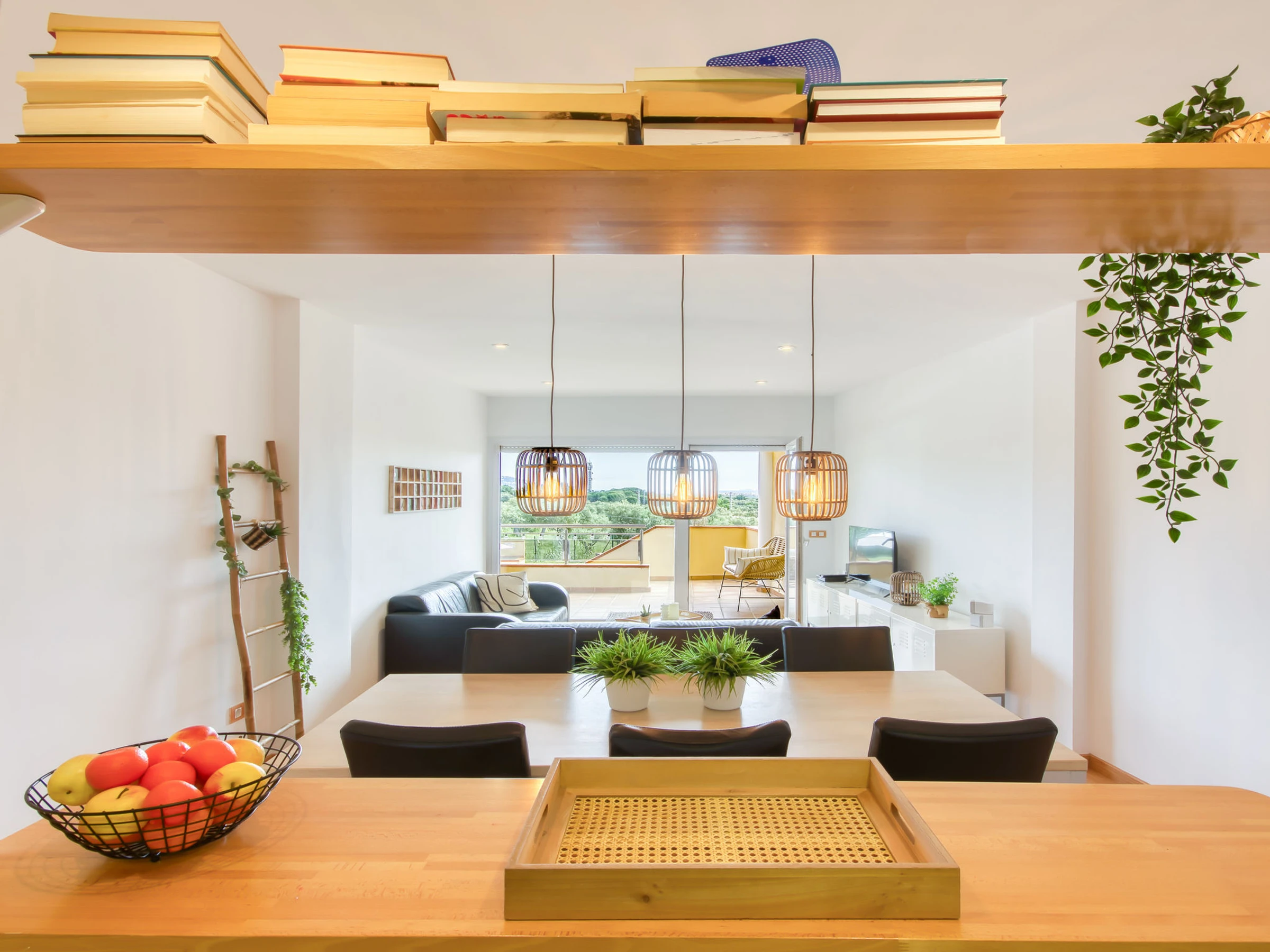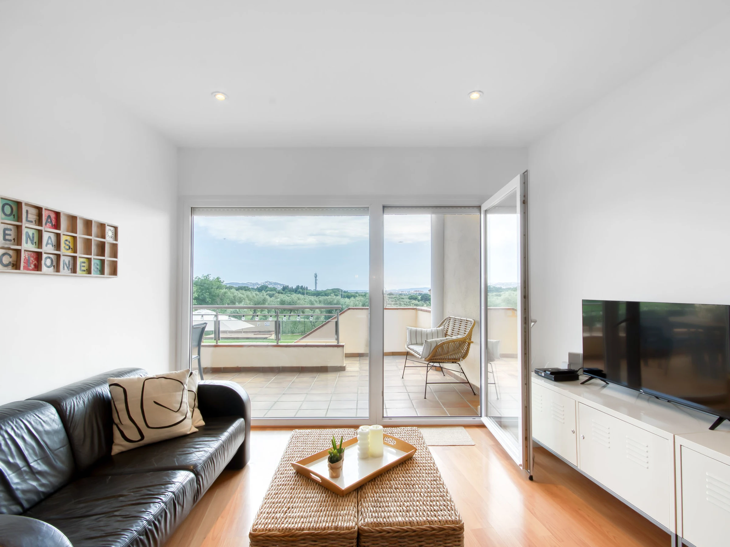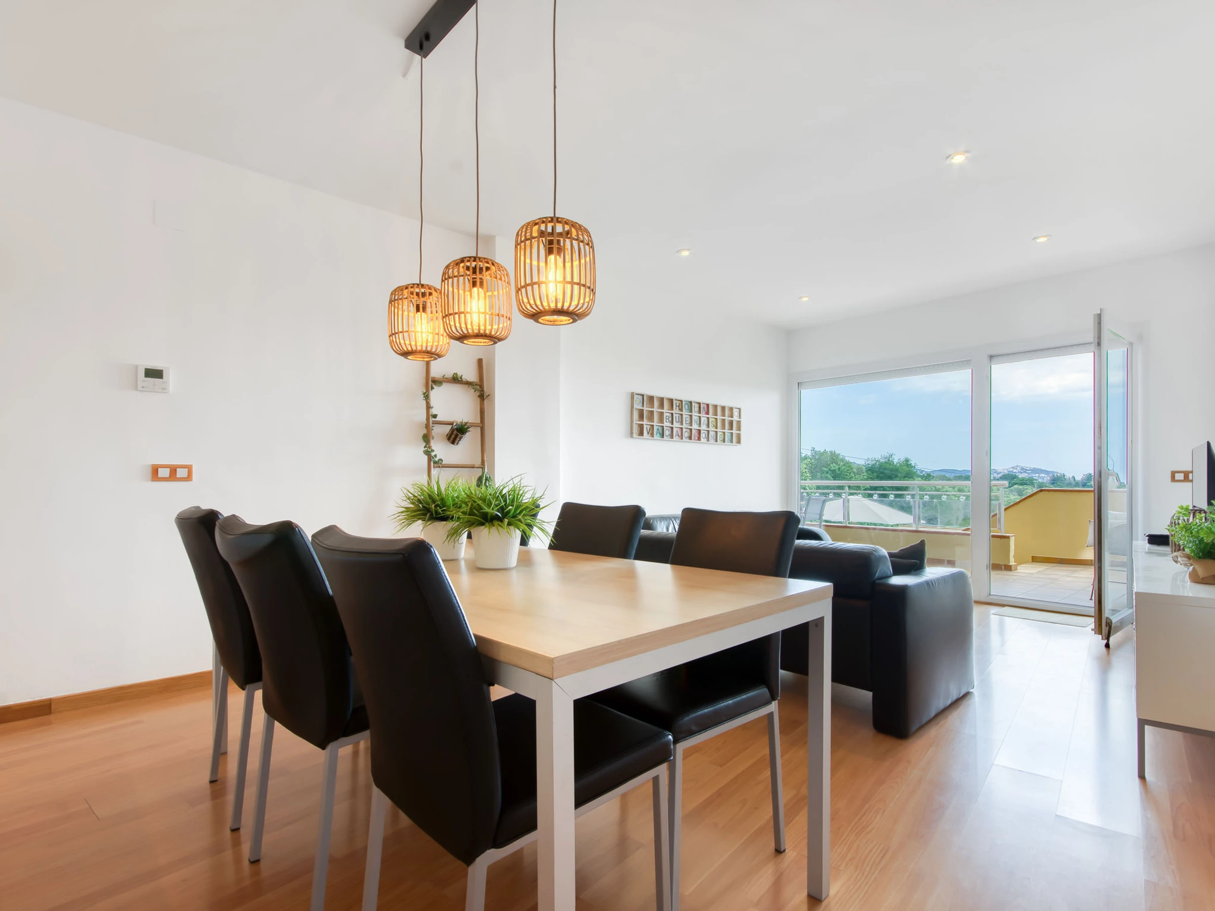 4-room apartment 100 m2, on the ground floor. Spacious and bright, comfortable and modern furnishings: living/dining room with panoramic window with dining table, digital TV and flat screen. Exit to the terrace. 2 rooms, each room with 1 french bed. 1 room with 1 french bed and bath/bidet/WC. Exit to the terrace. Open kitchen (4 hot plates, oven, dishwasher, microwave, freezer) with hatch. Bath/bidet/WC. Air-conditioning, forced-air heating. Large terrace 30 m2, terrace 15 m2. Terrace furniture. Marvellous view of the swimming pool and the countryside. Facilities: washing machine. Internet (WiFi, free). Please note: TV only ES. [hidden] // Reg. Nr.: ESFCTU000017008000818083000000000000000000[hidden]6