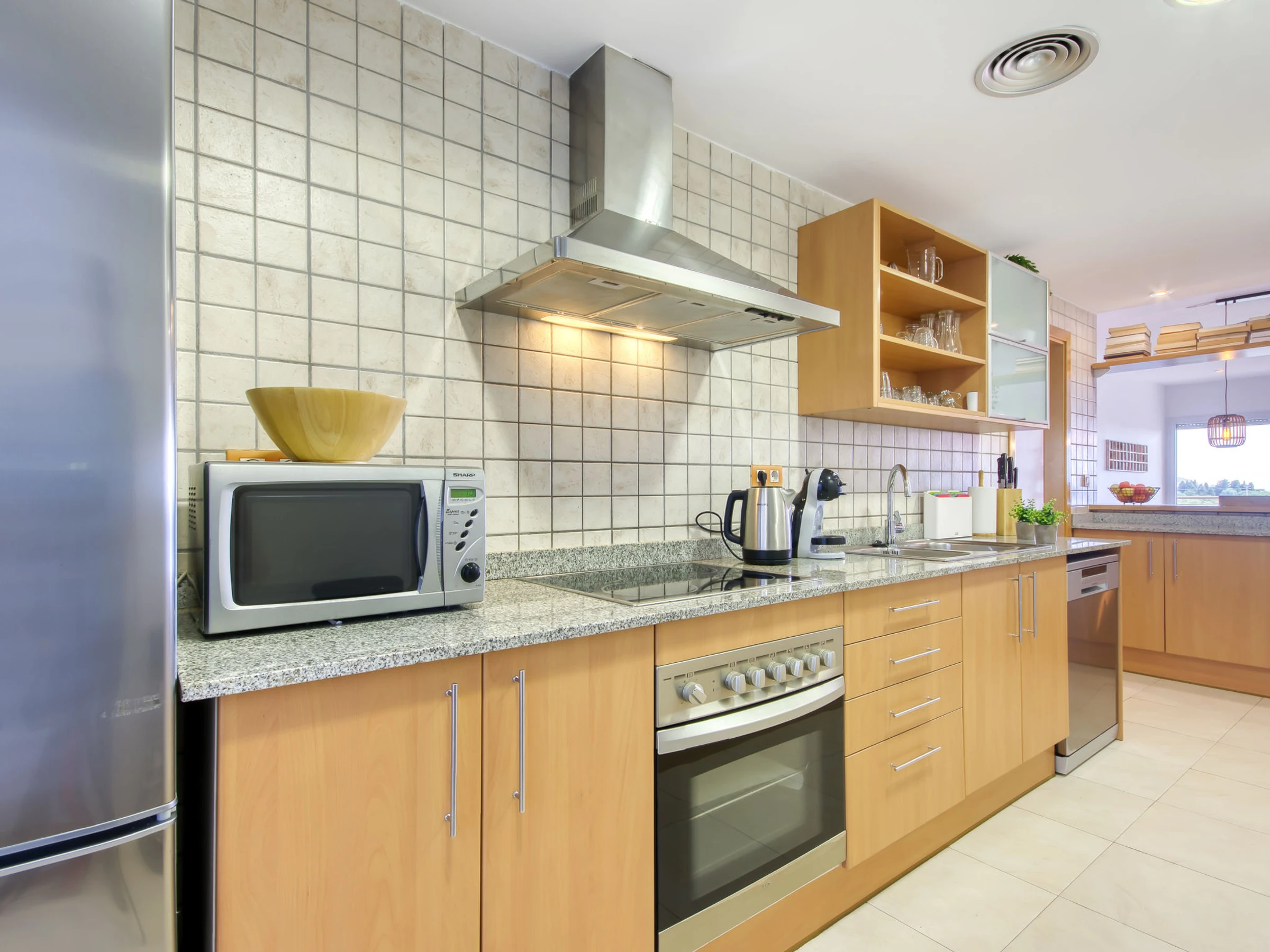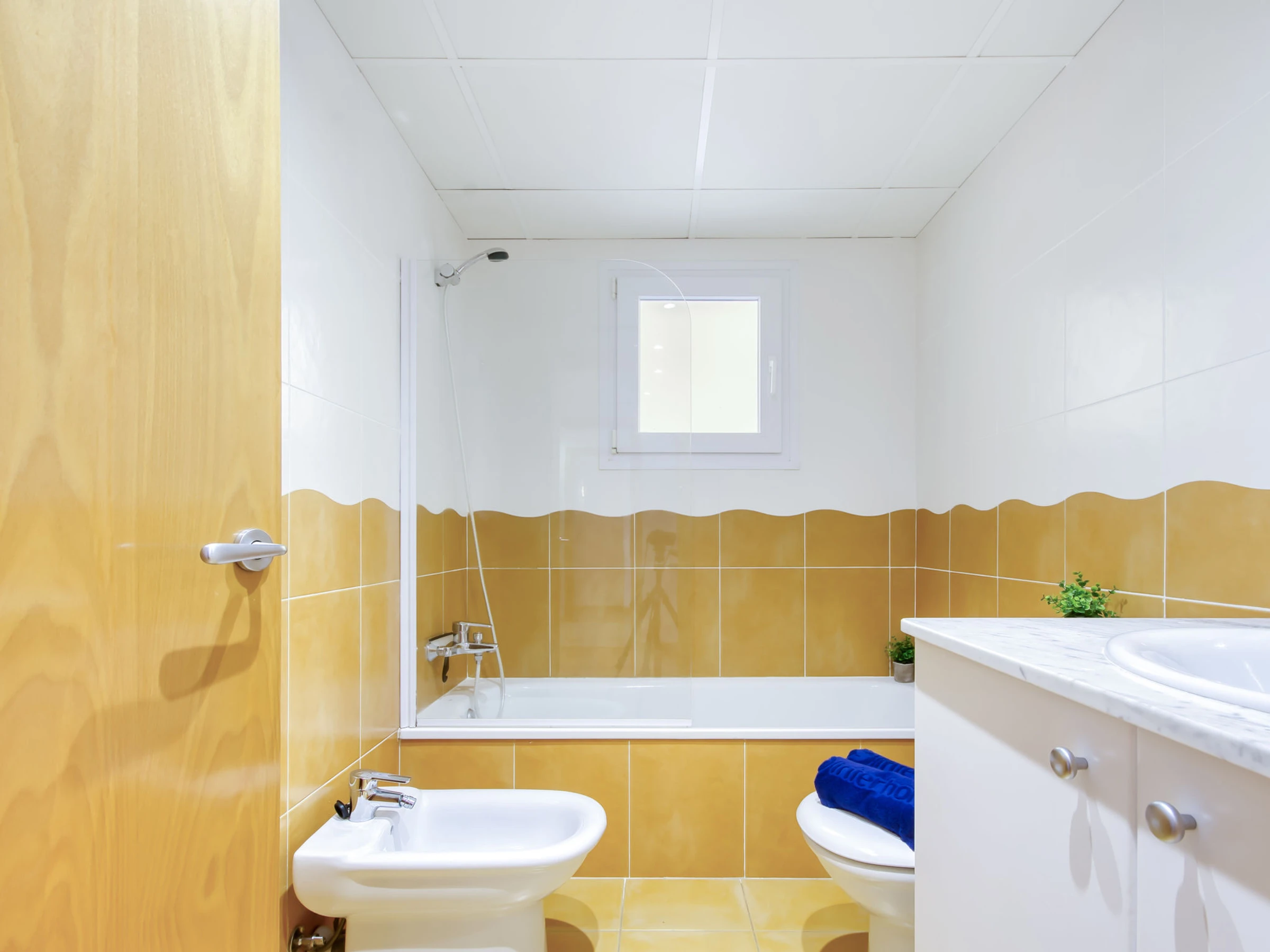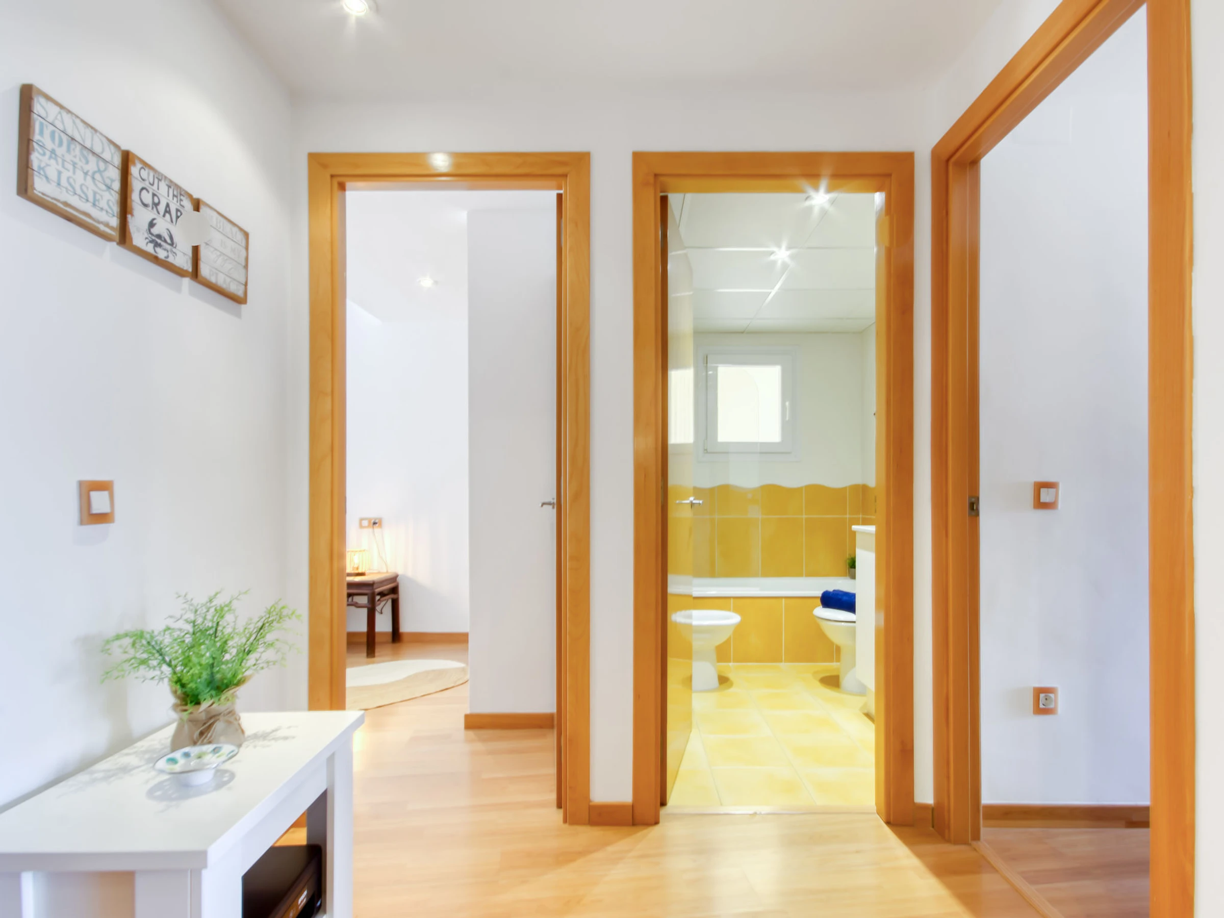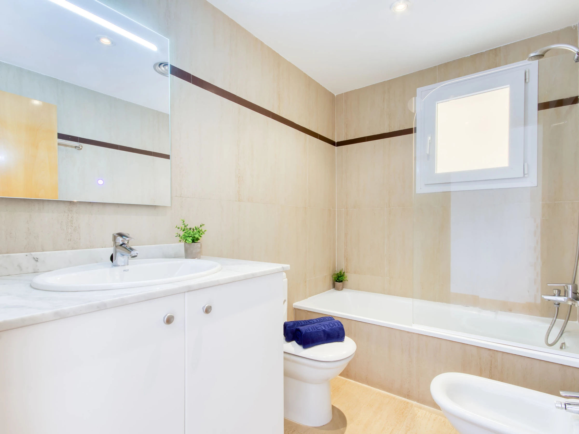 4-room apartment 100 m2, on the ground floor. Spacious and bright, comfortable and modern furnishings: living/dining room with panoramic window with dining table, digital TV and flat screen. Exit to the terrace. 2 rooms, each room with 1 french bed. 1 room with 1 french bed and bath/bidet/WC. Exit to the terrace. Open kitchen (4 hot plates, oven, dishwasher, microwave, freezer) with hatch. Bath/bidet/WC. Air-conditioning, forced-air heating. Large terrace 30 m2, terrace 15 m2. Terrace furniture. Marvellous view of the swimming pool and the countryside. Facilities: washing machine. Internet (WiFi, free). Please note: TV only ES. [hidden] // Reg. Nr.: ESFCTU000017008000818083000000000000000000[hidden]6