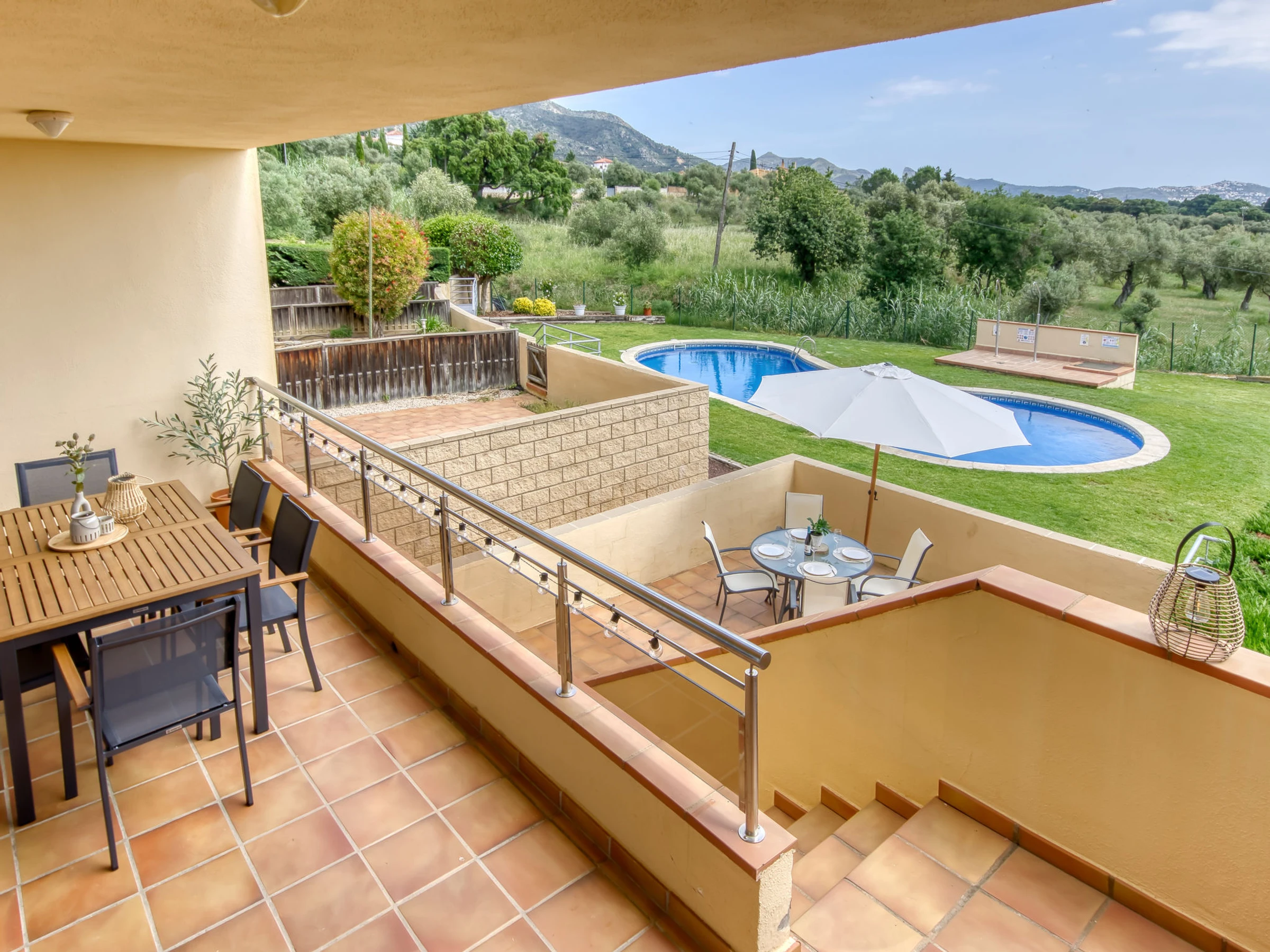 Mas Isaac: Beautiful, cosy residence "Sun Village I", 3 storeys, built in 2003. In the resort Palau Savardera, 6 km from the centre of Roses, in a quiet, sunny position on top of a hill, residential area (villas), traffic calmed area, 7 km from the sea, 7 km from the beach, south facing position. For shared use: large, beautiful, well-kept garden with lawn and plants. Stepped path (15 steps) to the house. Grocery 1 km, supermarket 5 km, restaurant, cafĂ© 200 m, bus stop "Moventis estaciĂł bus Roses" 7.7 km, railway station "Figueres Renfe Adif" 18 km, sandy beach "Roses" 6 km. Sports harbour 6 km, golf course (18 hole) 14 km, surf school 8 km, sailing school 8 km, tennis 3 km, riding stable 5 km. Nearby attractions: Zona de padel con bar y restaurante 300m, Parque AcuĂĄtico Roses Aquabrava 3 km, TĂșnel del viento y Skydive Empuriabrava 12 km, CadaquĂ©s 17 km, Museo DalĂ Figueres 22 km, Castillo y festival de Perelada 15 km. Please note: car recommended. The keysâ handover takes place by the agency in Empuriabrava.