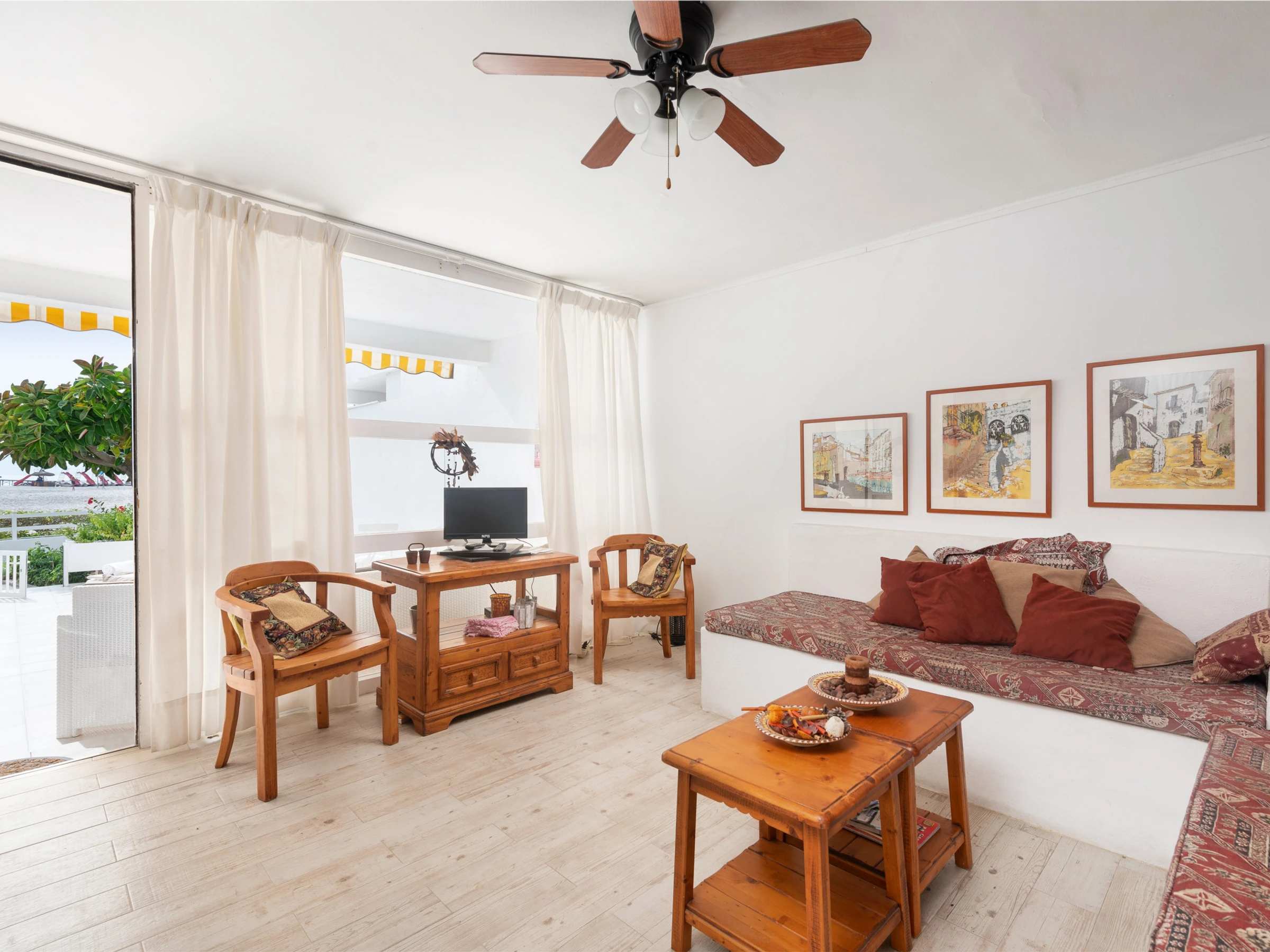 Come and enjoy the sun and the sea on one of the best beaches on the island thanks to this apartment. You can access the beach in a few steps. The large terrace offers wonderful views of the beach and has everything you may need to enjoy the good weather on the island: two loungers for sunbathing, a comfortable table with chairs where you can enjoy your best dishes as well as a comfortable sofa, outside from where to enjoy a drink at sunset.